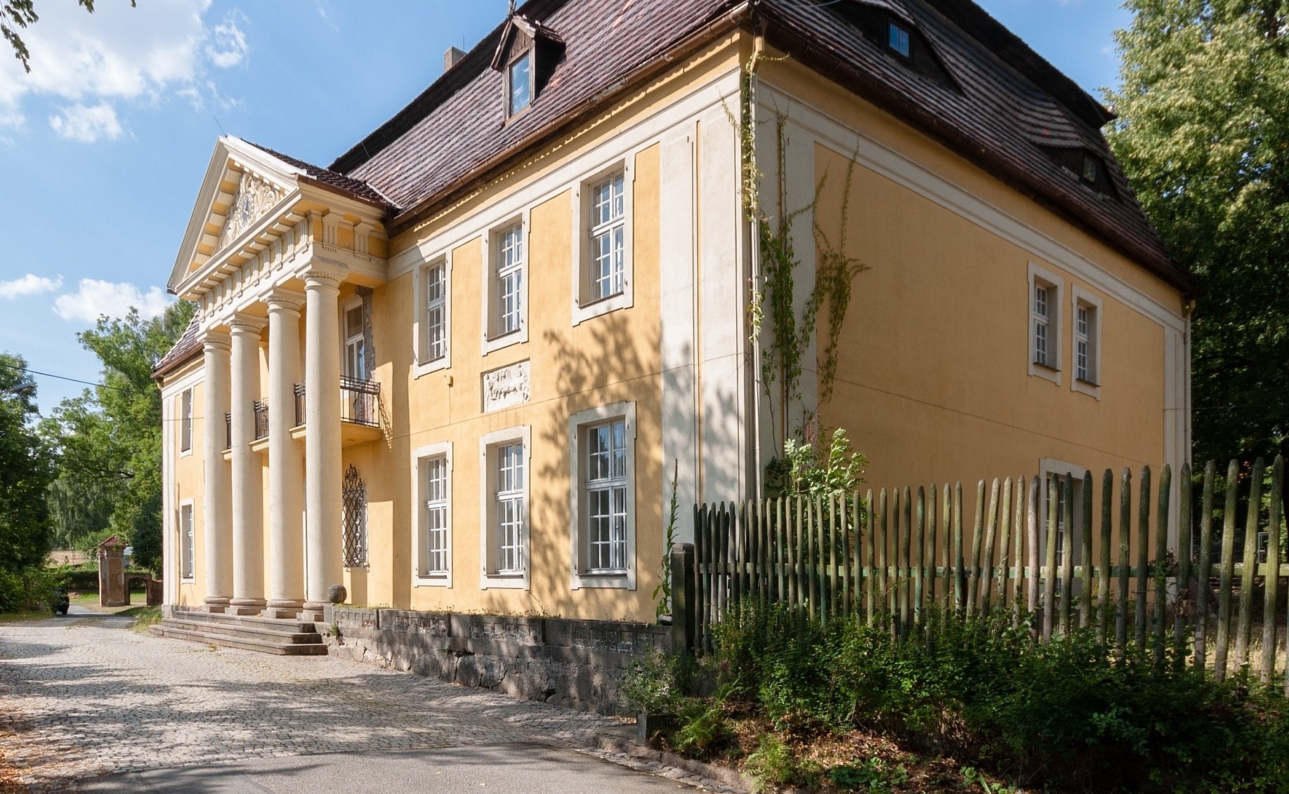 Kaštieľ sa nachádza na okraji Herrnhutu, v hornolužických vrchoch, neďaleko Žitavských hôr. Herrnhut bol založený v roku 1722 moravskými a českými náboženskými utečencami a je medzinárodne známy ako sídlo Moravskej cirkvi; slávna Herrnhutská hviezda sa tu dodnes vyrába. V súčasnosti prebiehajú snahy o zápis moravskej komunity do zoznamu svetového dedičstva UNESCO.