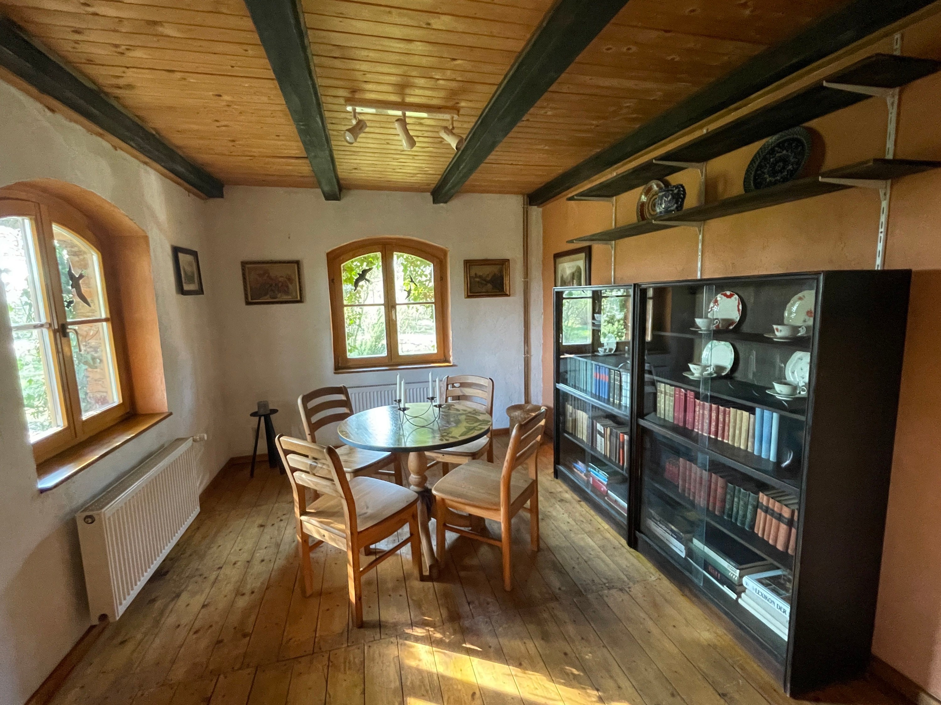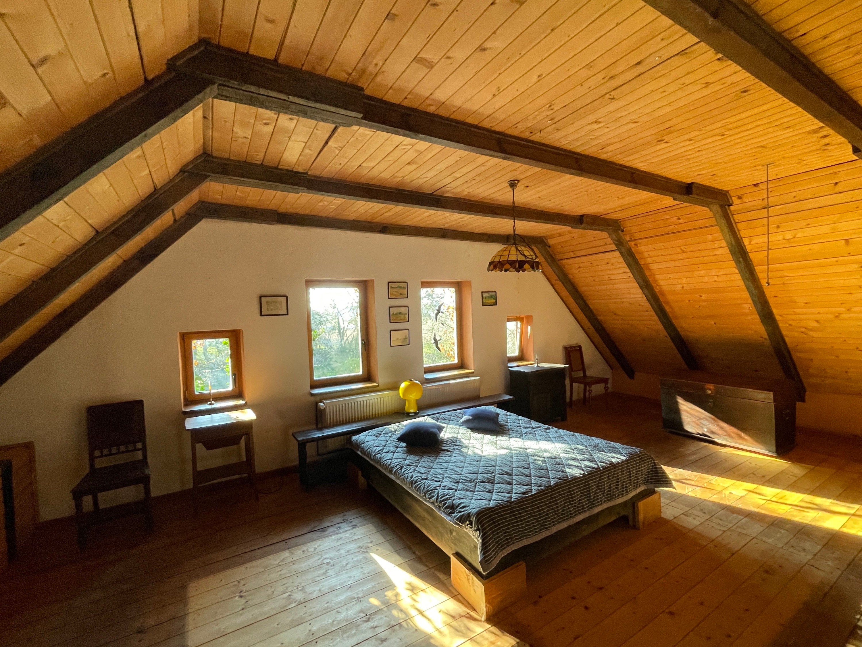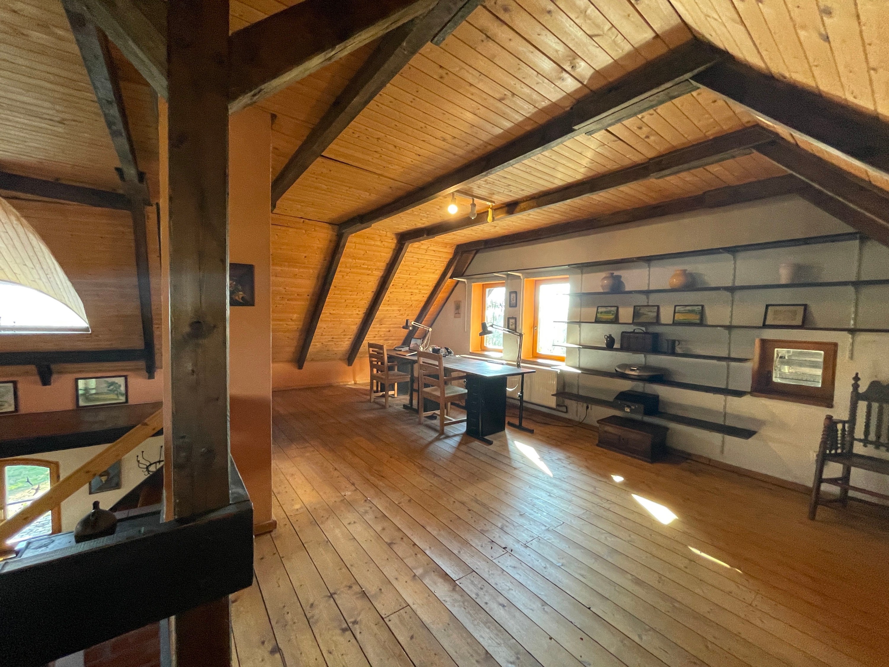 Na veľkom pozemku sa nachádza pevný prístrešok na skladovanie dreva a tradičná zemná pivnica. Lúka s divoko rastúcou ovocnou záhradou a vzrastlými stromami dopĺňa nehnuteľnosť.
