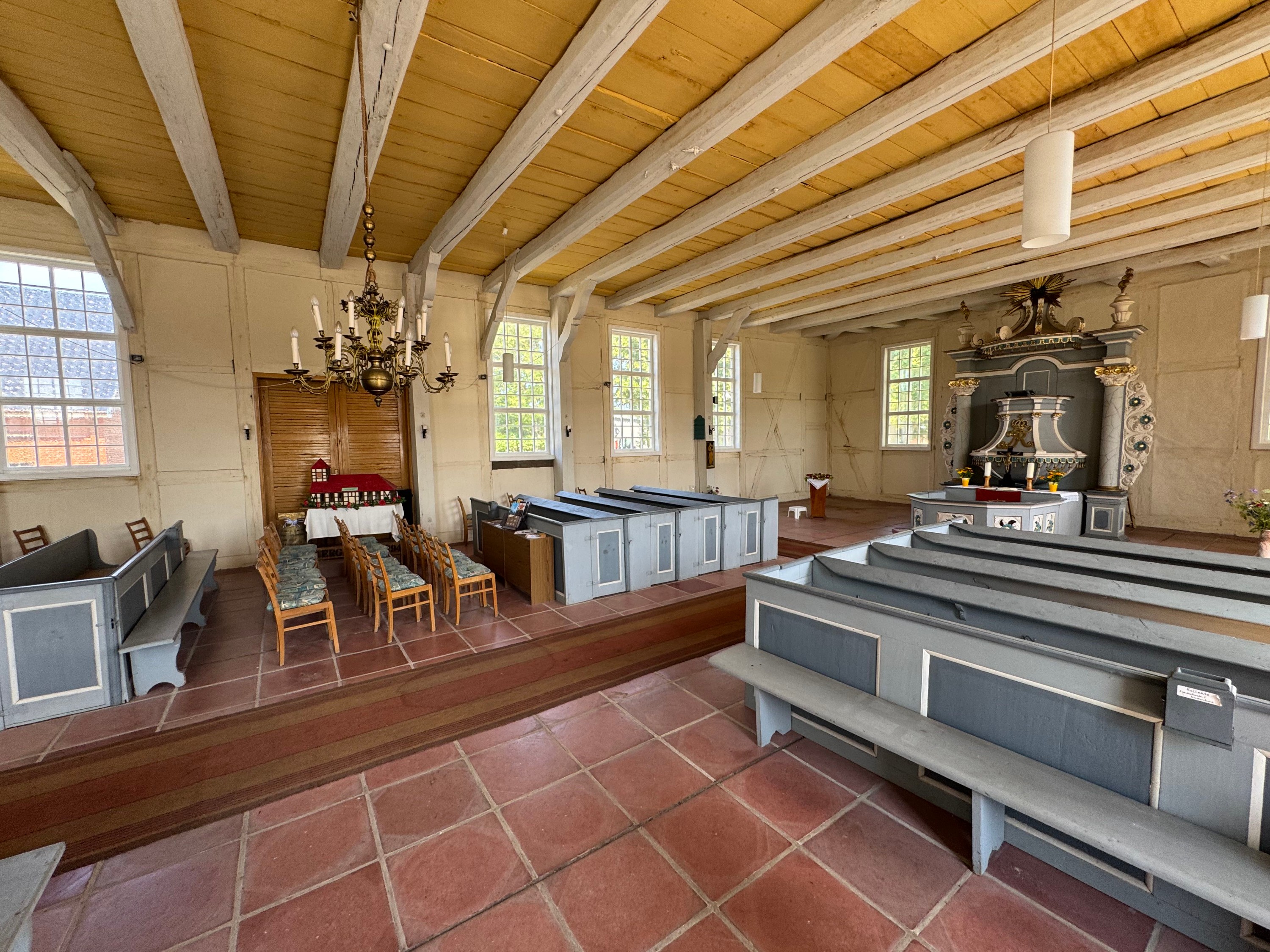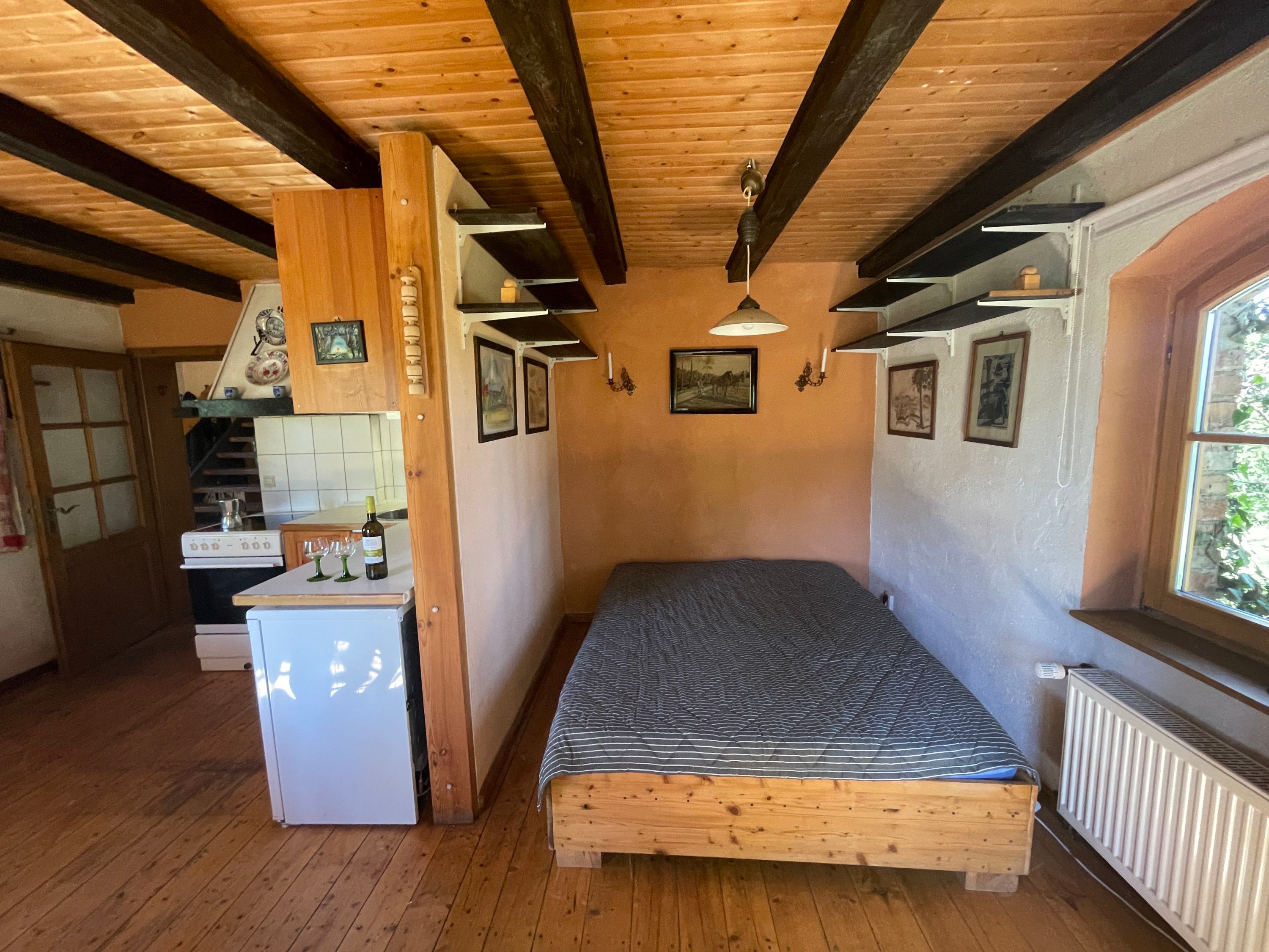 Len 10 minút od Štetínskeho zálivu a približne hodinu od kúpeľného mestečka Ahlbeck na ostrove Usedom sa táto typická západopomořská usadlosť s tradičnou doškovej strechou nachádza v tichej izolovanej lokalite. Na sever, cez lúky pri zálive, je to približne 3 km k vode. Rekreačná oblasť Mönkebude s jemnou piesočnatou plážou a malou jachtovou prístavbou je dostupná na bicykli za približne 15 minút. Mesto Anklam je autom dostupné za 20 minút po ceste B109.