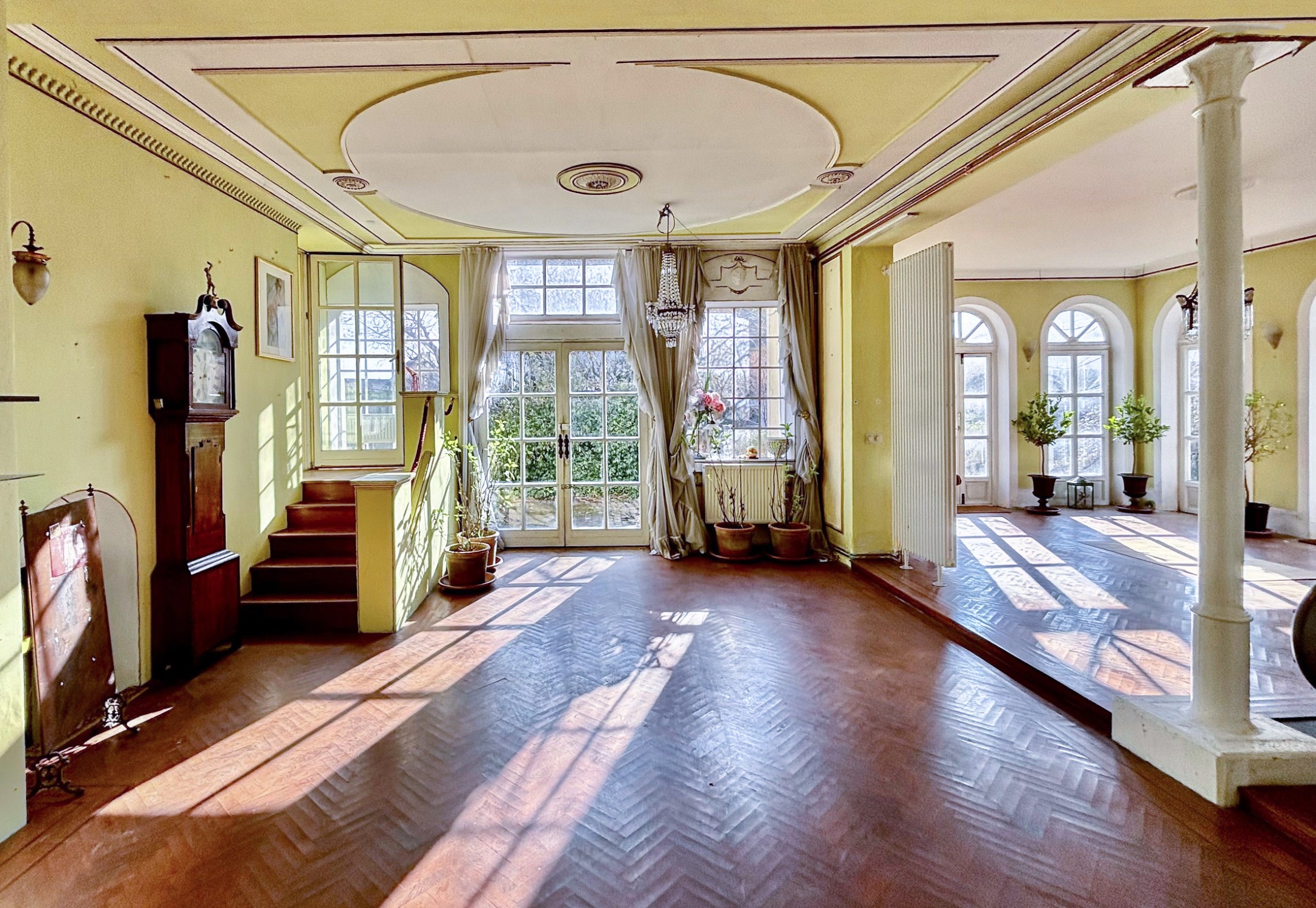Dnes dom ponúka približne 225 m² obytného priestoru, s ďalším potenciálom približne 60 m² pri renovácii. Priestranné miestnosti, dekoratívne štukové lišty a charakteristické dobové detaily definujú interiér. Impozantný otvorený krb a niekoľko starožitných pecí, ktoré dopĺňajú plynové kúrenie, vytvárajú teplo, ktoré presahuje samotnú teplotu.