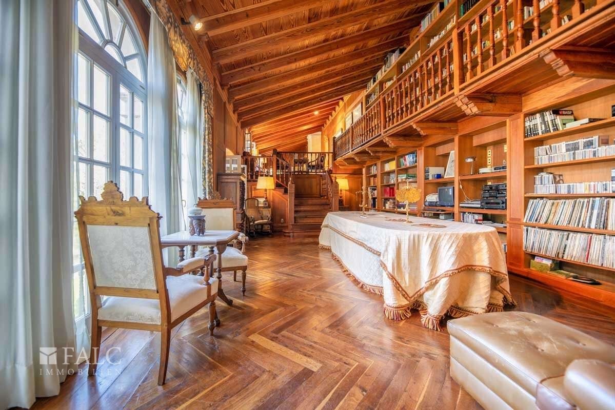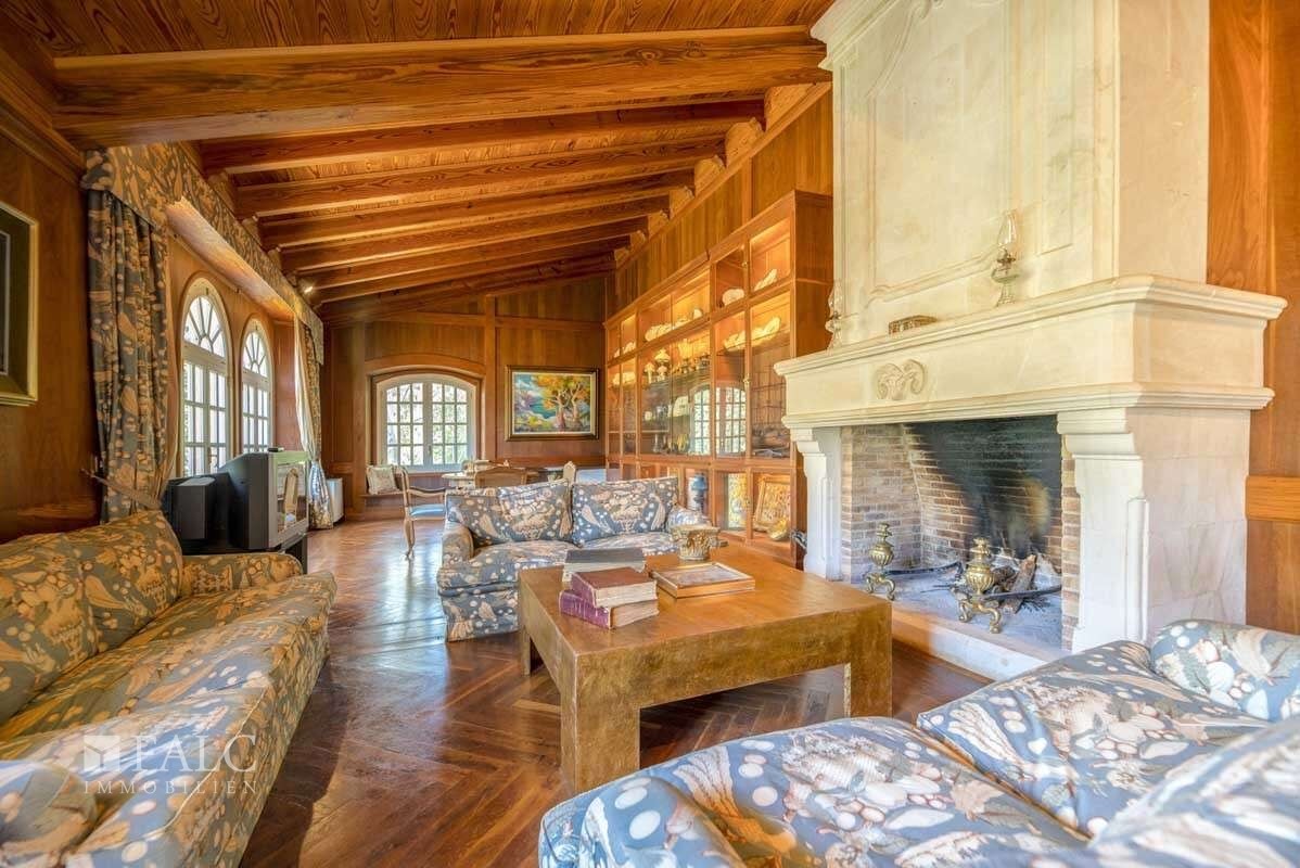 Nehnuteľnosť zahŕňa hlavnú budovu, dva samostatné domy pre hostí a ďalšie príslušné stavby, vrátane skleníka a garáží. Celková zastavaná plocha je približne 1 522 m².