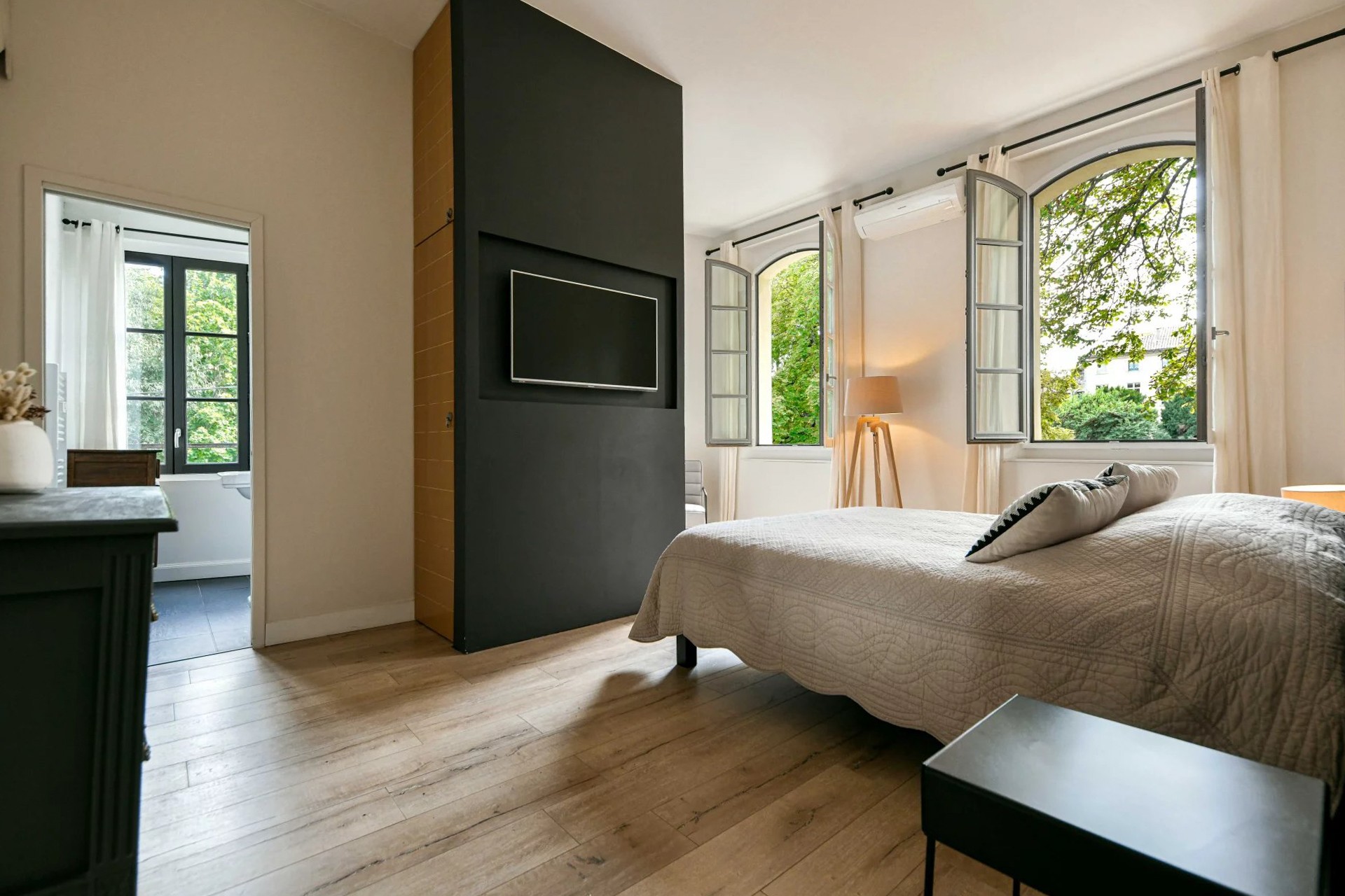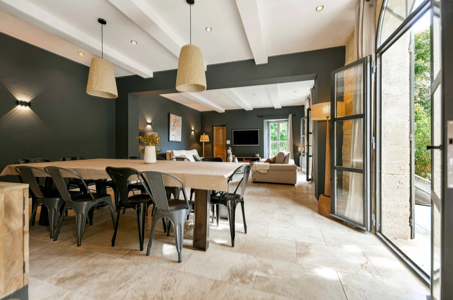 Záhrada je zelenou oázou s veľkou terasou, zatienenou impozantným gaštanovníkom, a jazierkom. Dom je kompletne klimatizovaný a je ideálny pre veľkú rodinu alebo penzión, ponúka flexibilitu a výnimočné životné prostredie.