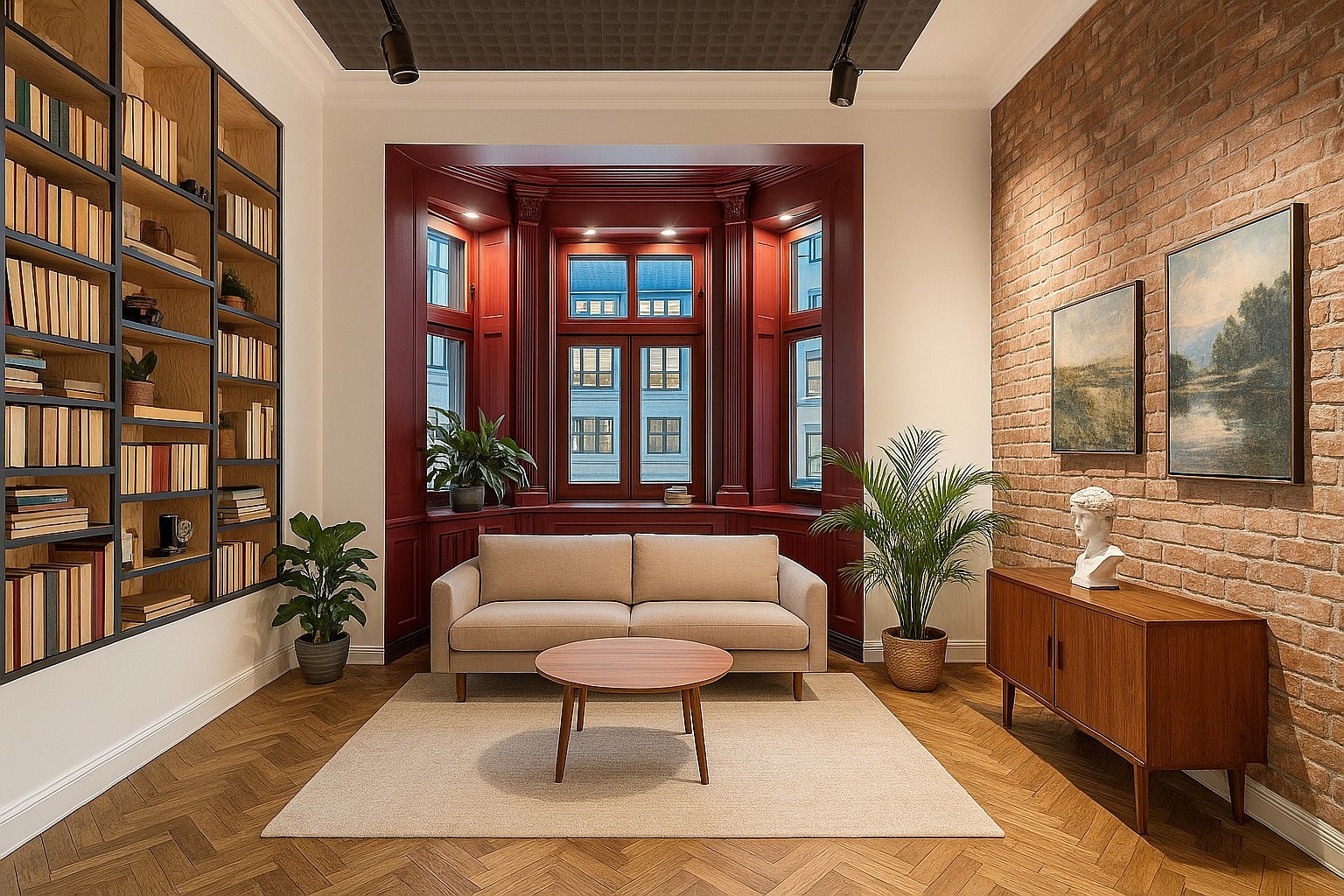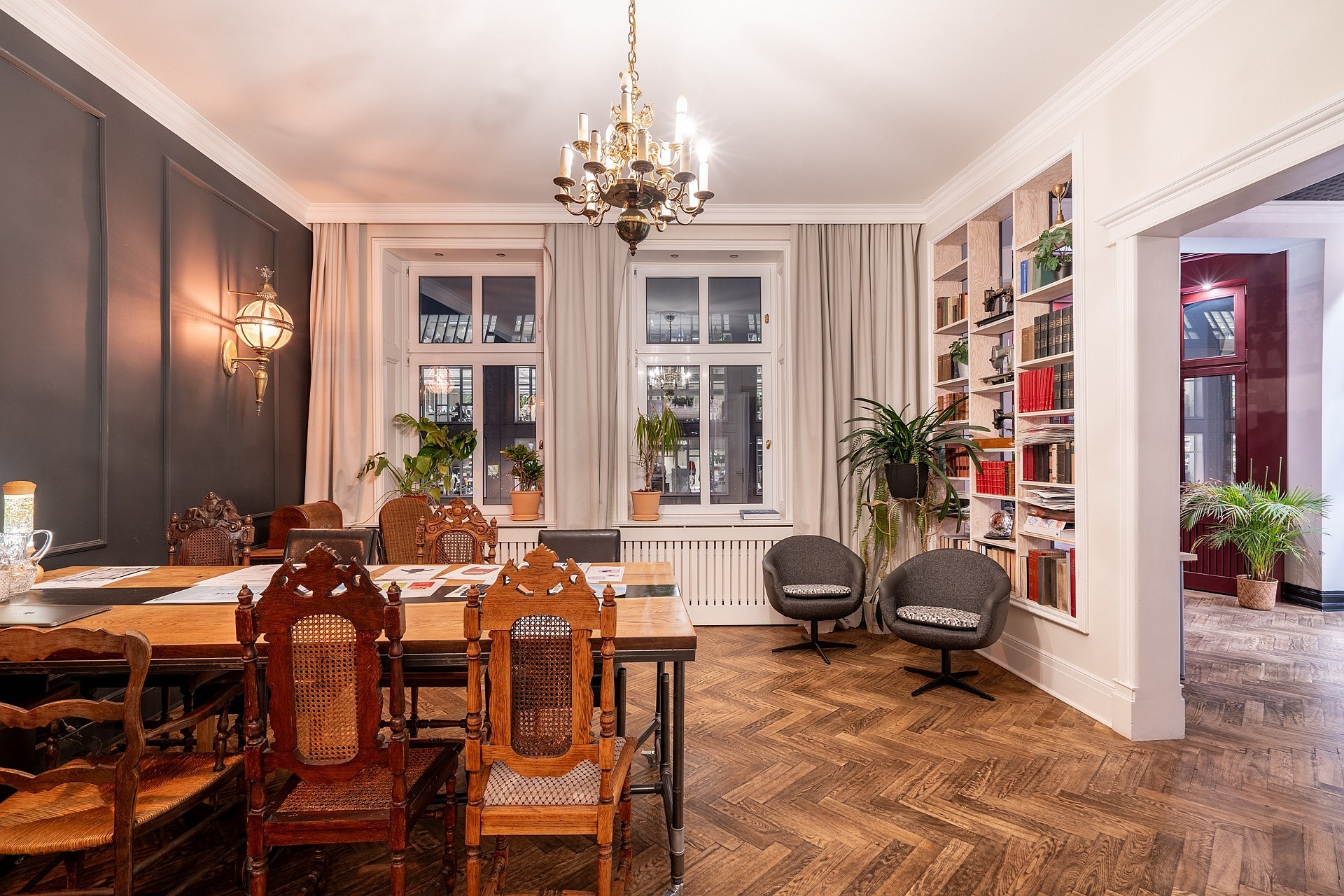 Byt pozostáva zo štyroch izieb, samostatnej kuchyne, kúpeľne so sprchou a WC, vstupnej haly a balkóna. Dve izby sú orientované na ulicu Łąkowa a sú veľmi svetlé; kuchyňa a balkón sú na opačnej strane. Priestory majú rôzne architektonické detaily: výklenkové okná, kuchyňa v štýle loft a originálne vypínače. Momentálne sa byt používa ako showroom, po prevzatí ho možno prispôsobiť a zariadiť podľa predstáv nového majiteľa.
