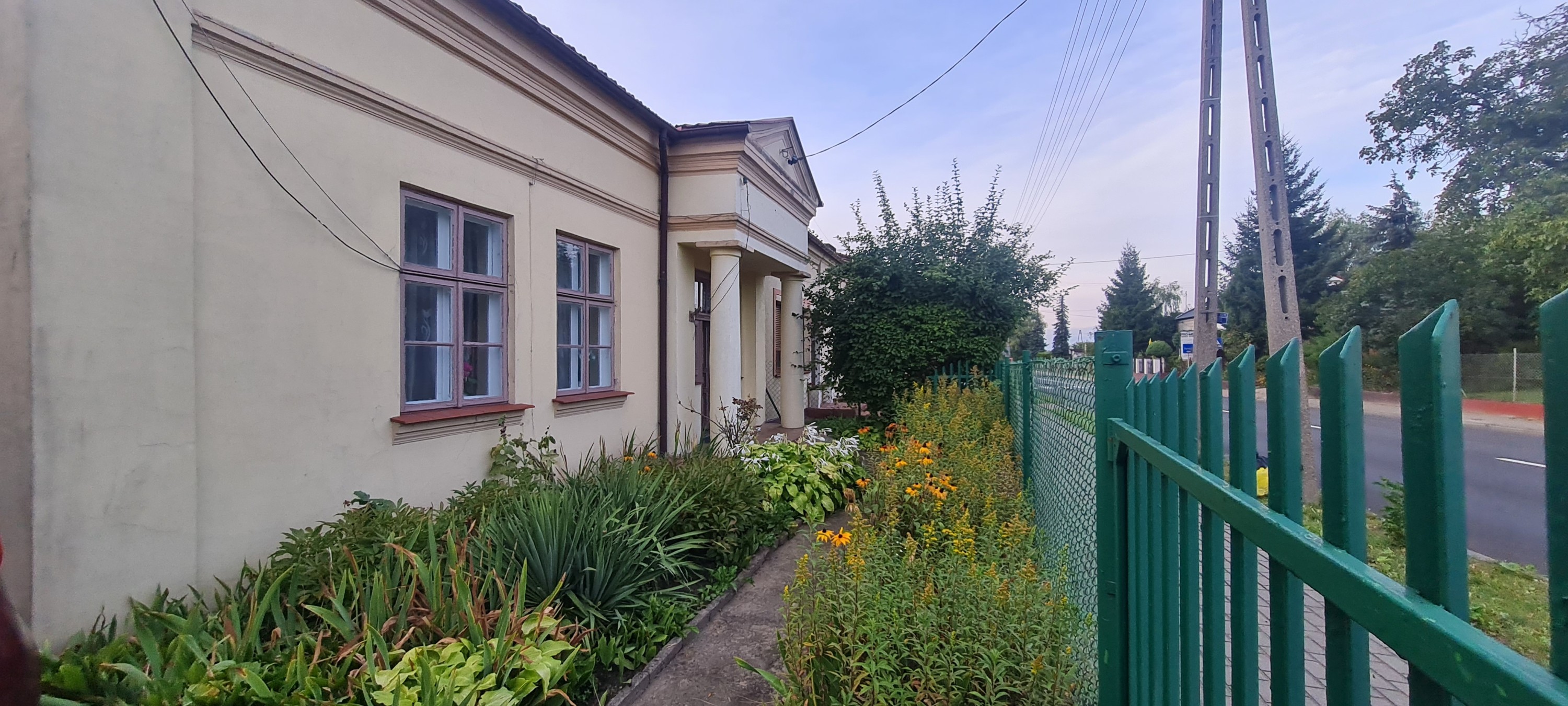 Nehnuteľnosť sa nachádza v pokojnej časti mesta Izbica Kujawska, približne 200 m od centra. Na pozemku stojí aj vedľajšia budova o výmere 18 m², ktorá môže slúžiť ako dielňa, sklad alebo malé ateliérové štúdio. Pozemok má rozlohu 540 m² a je kompletne oplotený.