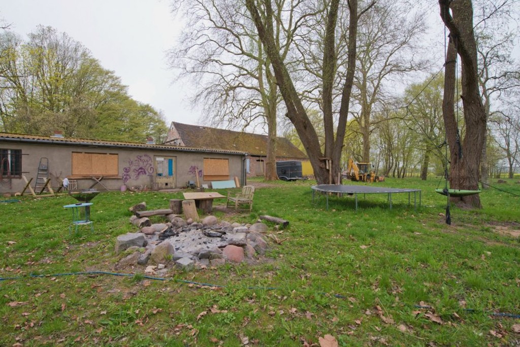 Pozemok zahŕňa okrem časti historického zámeckého parku s tromi impozantnými starými platanami aj lúky a nevyužívané plochy. Lúky sú momentálne využívané stádom oviec. Asi 300 metrov východne od obytného domu sa nachádzajú dve veľké otvorené haly (75 x 25 m), ktorých strechy sú pokryté fotovoltaickými panelmi. Ak nie je plánované poľnohospodárske využitie, môžu byť haly využité napríklad ako zimný sklad pre lode – prístavy v Greifswalde sú v blízkosti.