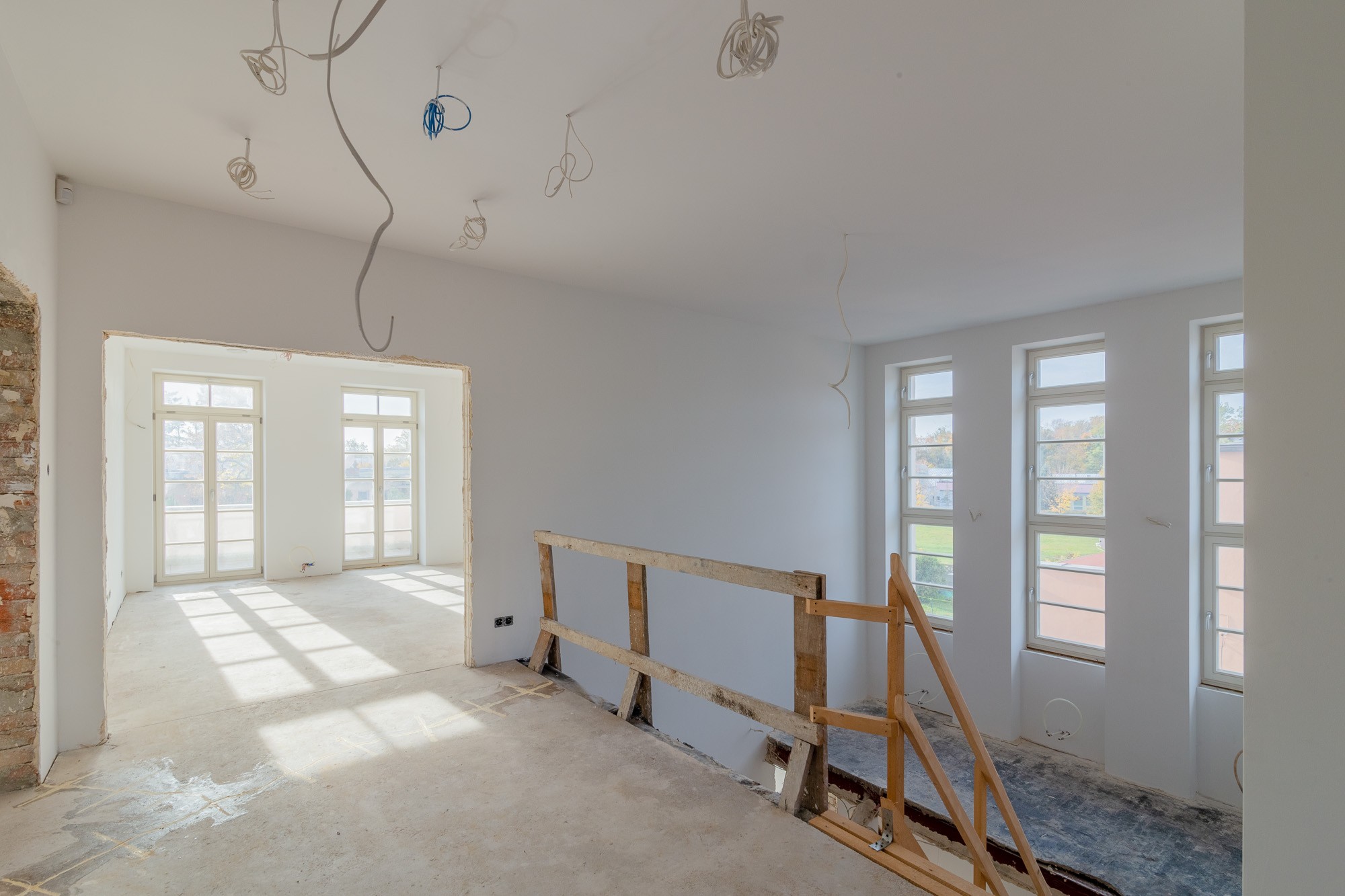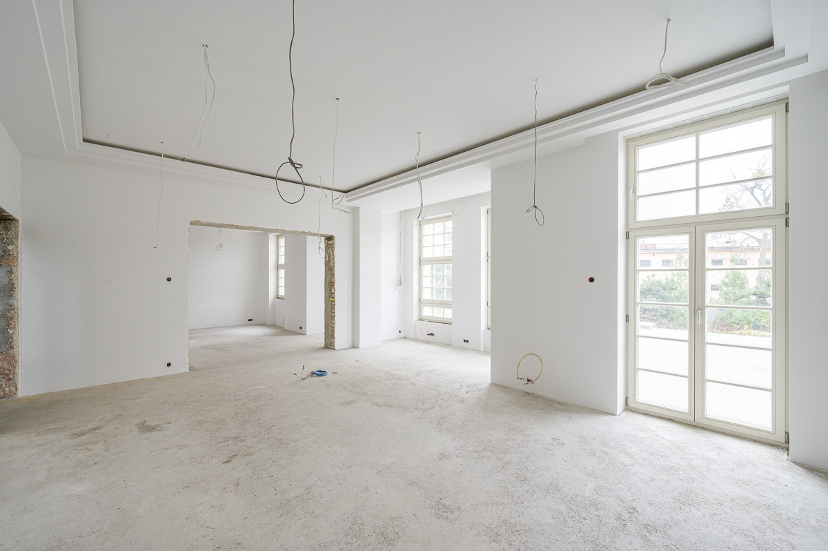 Wnętrza (mimo iż aktualnie pozostają w stanie deweloperskim) zachwycają swoją przestronnością i piękną grą światła utworzoną dzięki rozmyślnemu ustawieniu okien. Na 537 m² powierzchni użytkowej znają się min. 4 sypialnie, 2 gabinety, 2 garderoby, kilkuset metrowa część dzienna w układzie amfiladowym, domowa siłownia z sauną oraz reprezentacyjny hol z miejscem na masywne wachlarzowe schody.