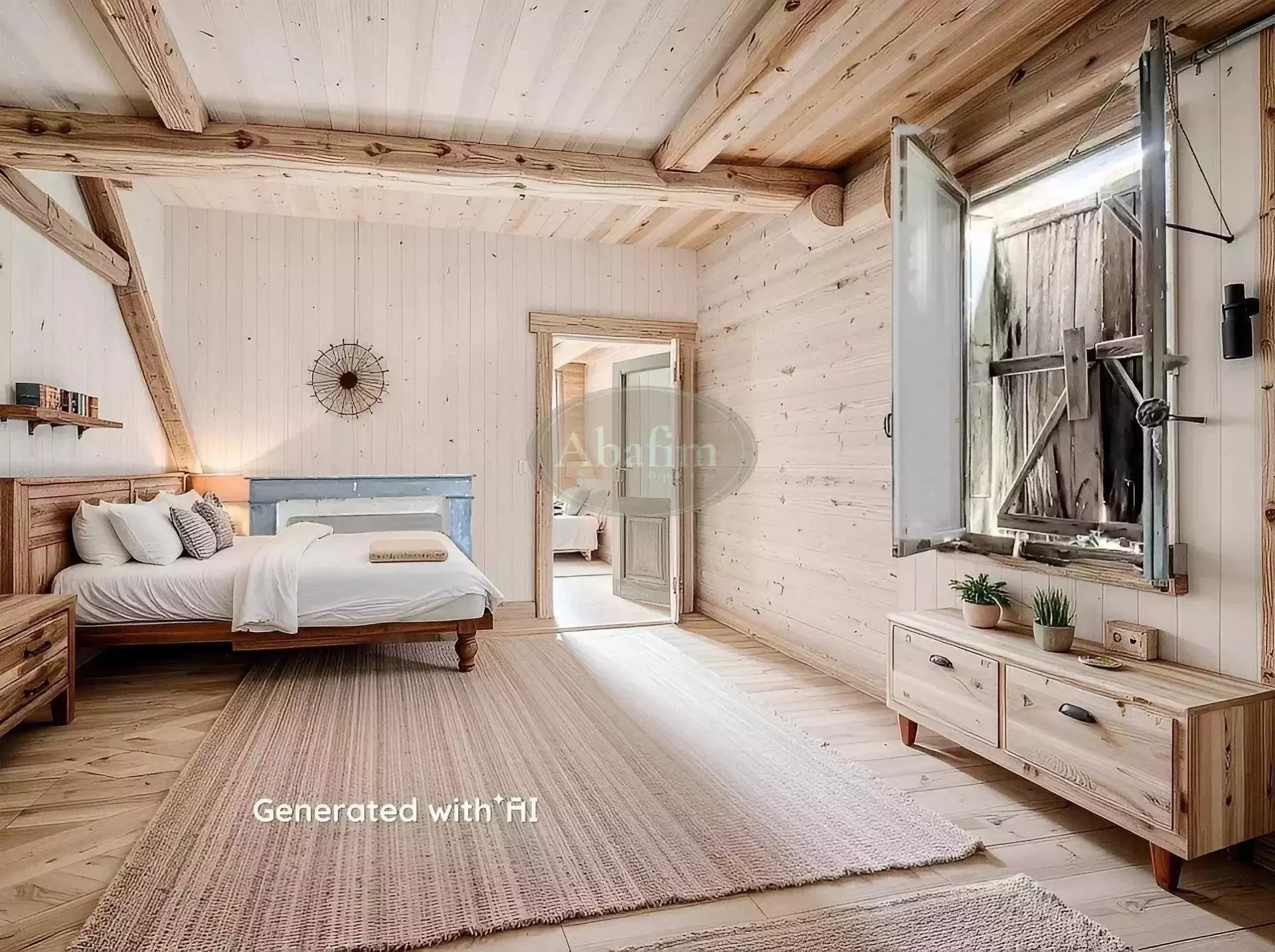 Cez tradičnú vstupnú halu sa vstupuje do priestorov na prízemí: miestnosť 35 m² s kuchynskou funkciou, jedáleň 21 m² s výhľadom na dvor a dve ďalšie miestnosti 43 m² a 13 m². Betónové schodisko vedie na prvé poschodie, kde je miestnosť 45 m² s prístupom na terasu (15 m²) a výhľadom na Pyreneje, a ďalej miestnosti 26 m² a 15 m².