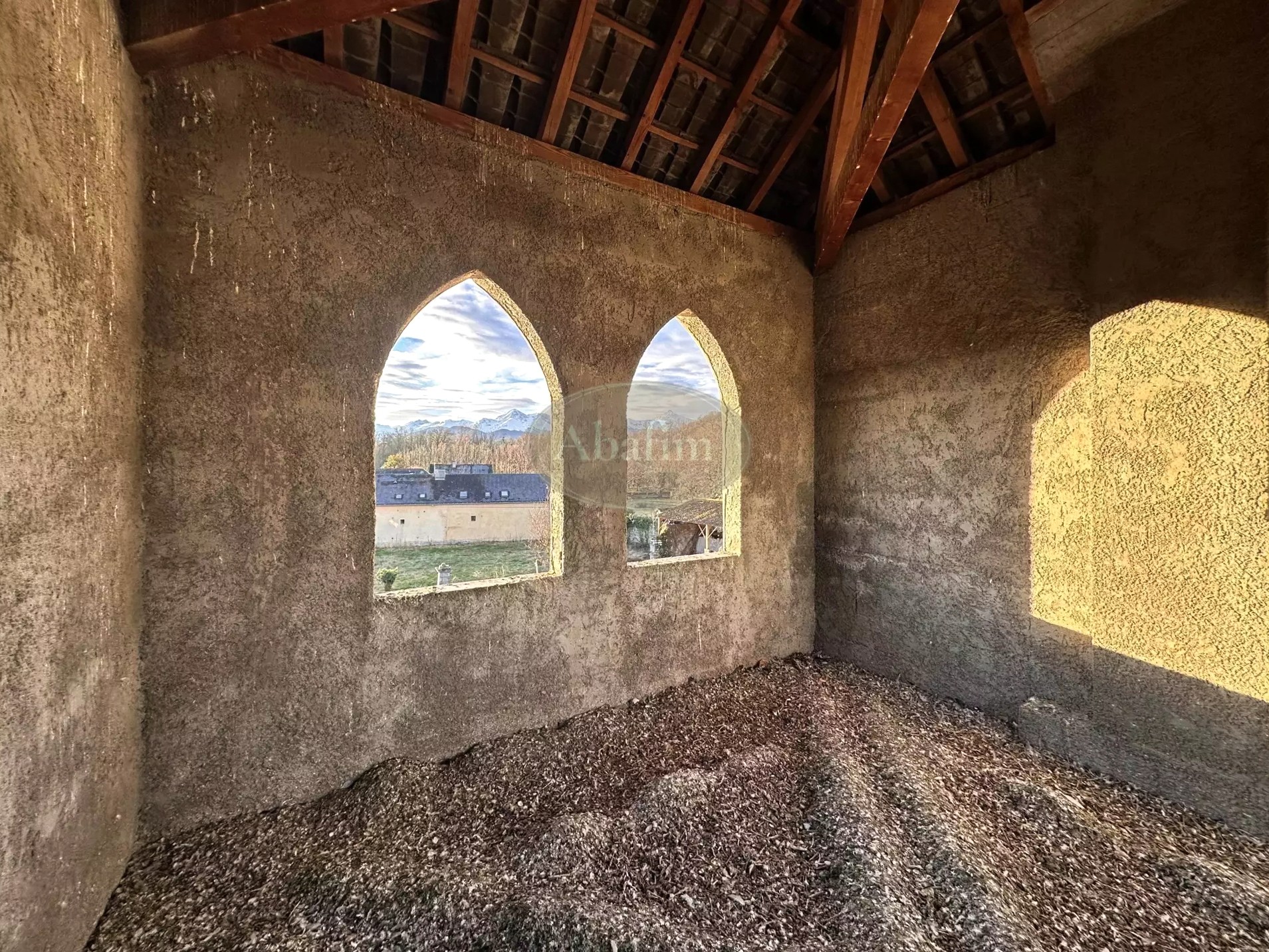 Druhé poschodie pod strechou obsahuje dve miestnosti 35 m² a 27 m², obe s výhľadom na Pyreneje, a prístup k veži (16 m²).