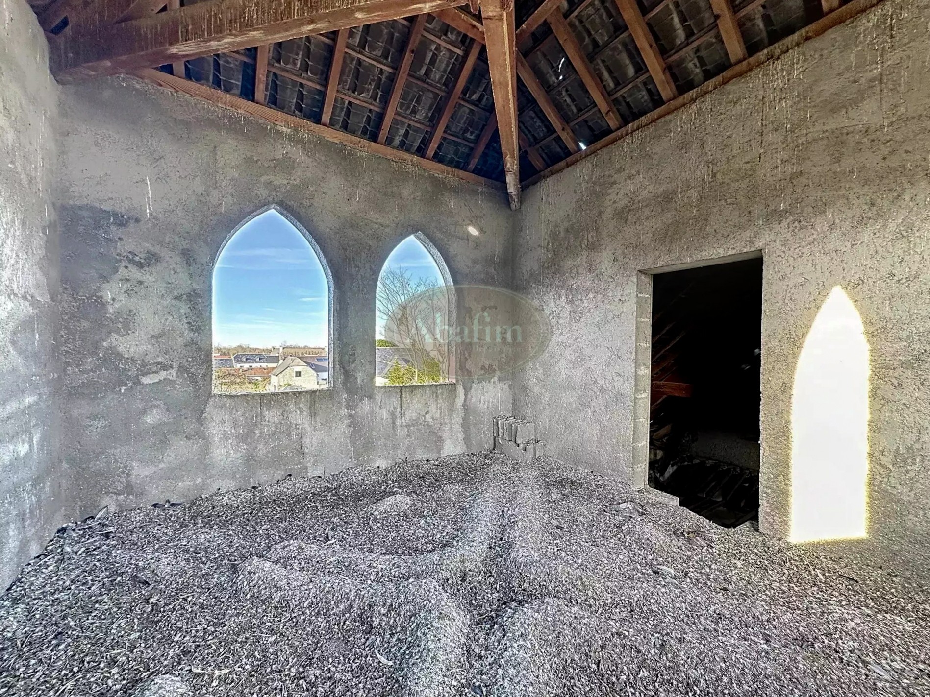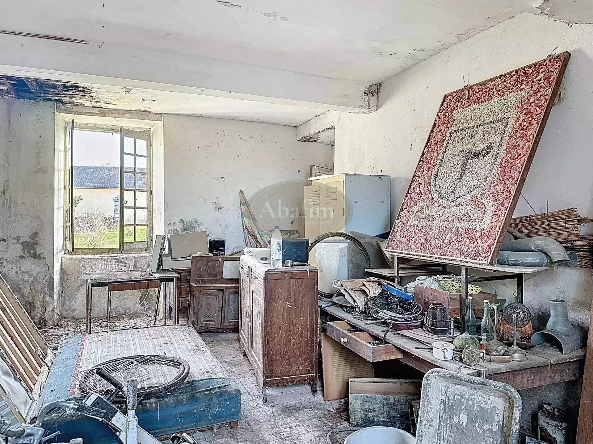 Strecha na západnom konci potrebuje opravu. Okna a dvere chýbajú alebo je potrebné ich vymeniť. Elektrina a pitná voda sú pripojené; odpadové vody je potrebné napojiť na kanalizáciu.