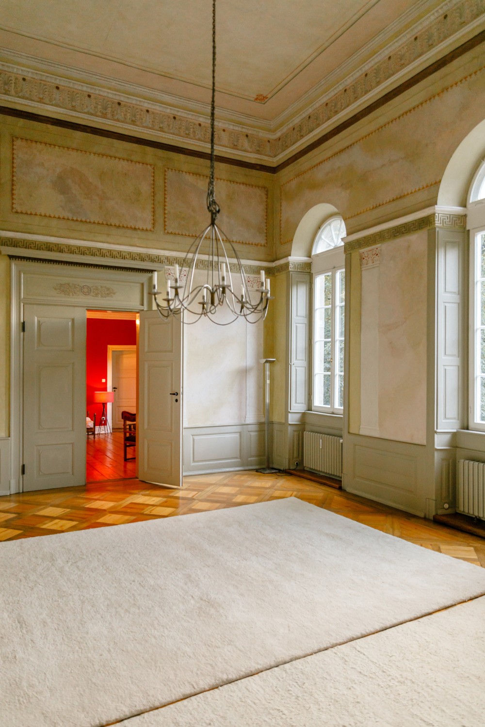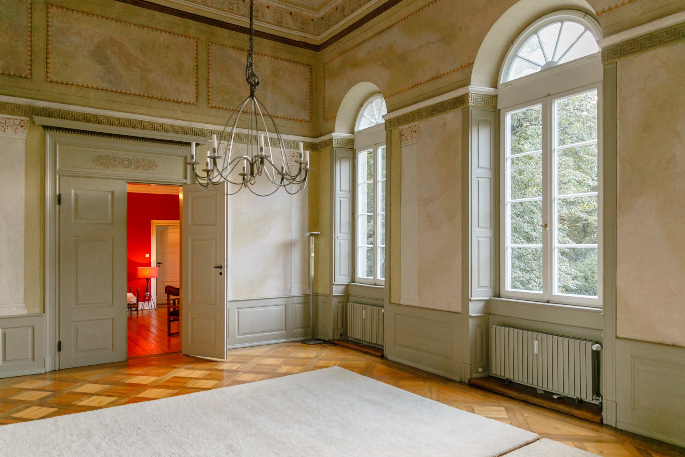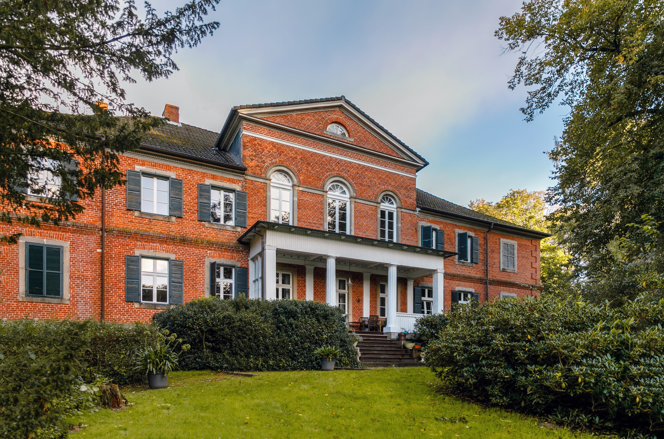 Úžitková plocha má približne 500 m² a rozkladá sa na jedenásť spální, niektoré s výhľadom do parku. K dispozícii je päť kúpeľní a dve hosťovské toalety. Dve priestranné kuchyne vytvárajú príjemné prostredie. Spoločenská sieň s ôsmimi metrovými stropmi ponúka pôsobivý priestor. Ďalej je k dispozícii krbová miestnosť alebo knižnica a záhradná miestnosť s prístupom na krytú verandu. Kúrenie na drevené polená je možné rozšíriť o prívod peliet alebo výrobu elektriny. Pripojenie na optický internet zabezpečuje rýchly dátový prenos. Dve samostatné bytové jednotky s vlastnou kuchyňou a kúpeľňou poskytujú flexibilitu pre rodinu či hostí.
