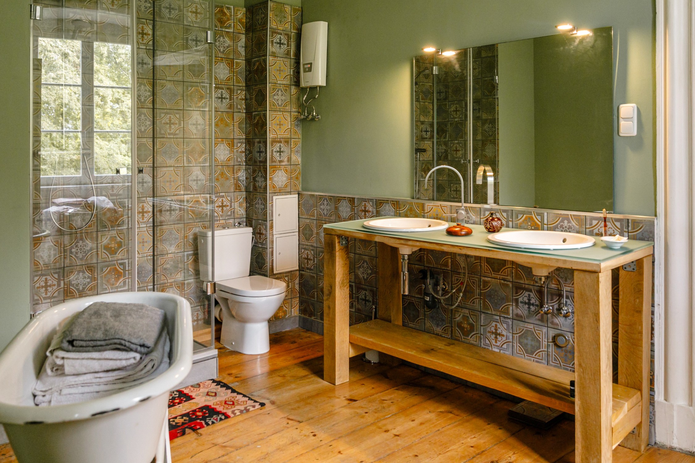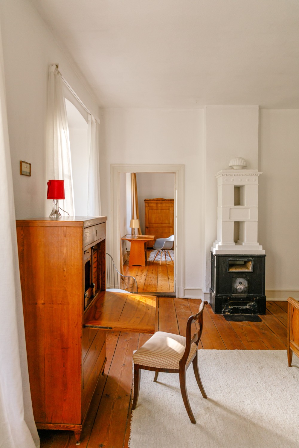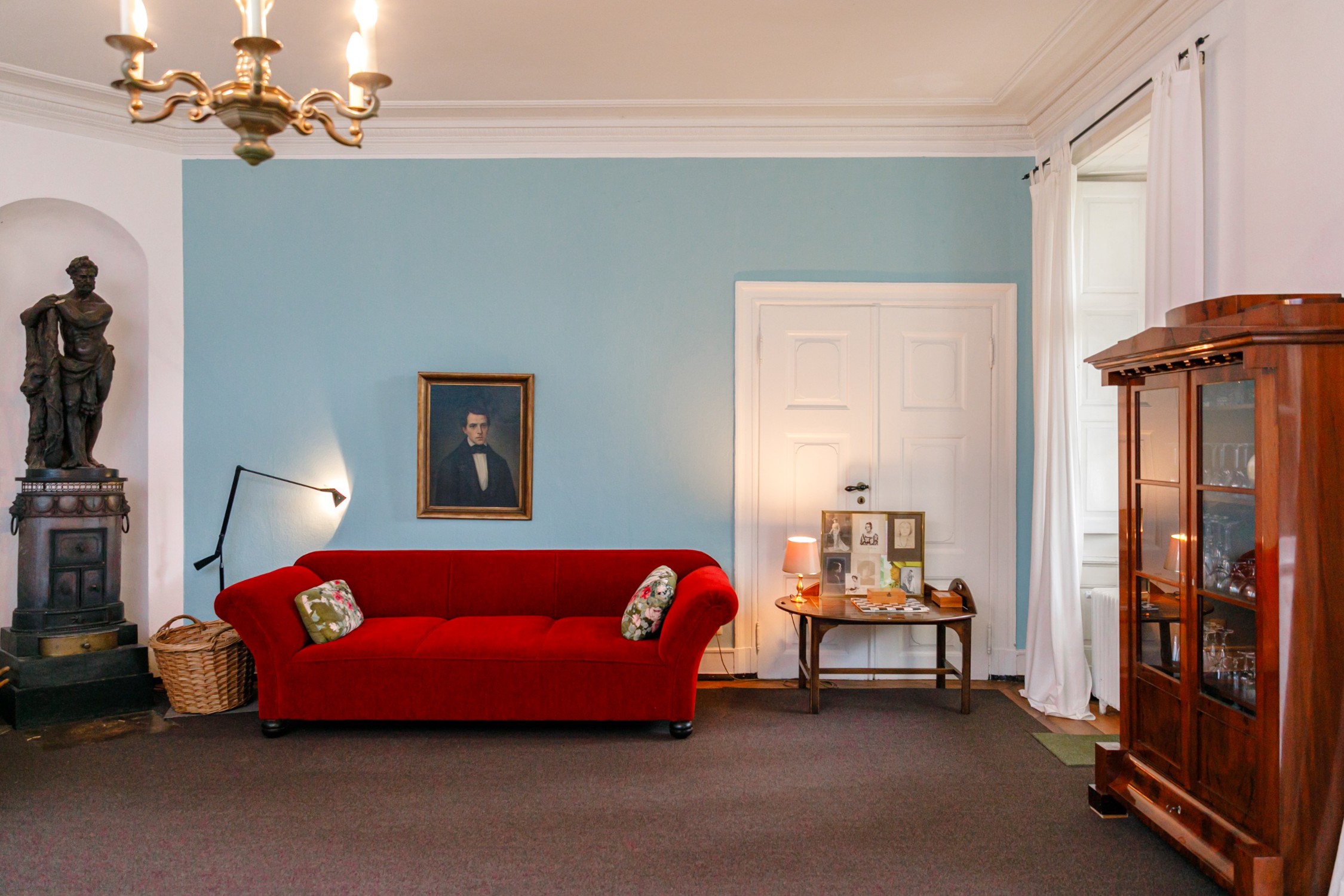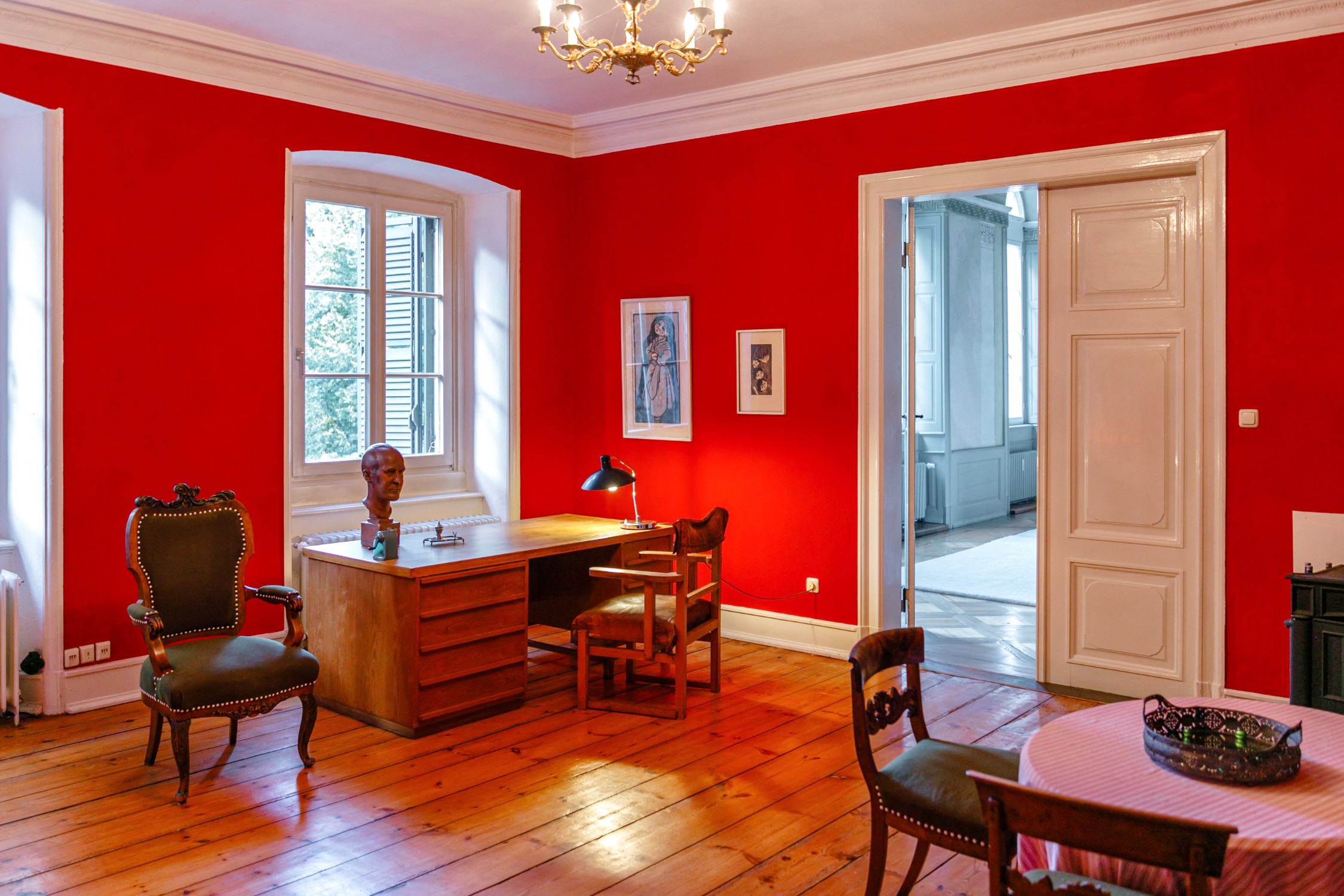 Úžitková plocha má približne 500 m² a rozkladá sa na jedenásť spální, niektoré s výhľadom do parku. K dispozícii je päť kúpeľní a dve hosťovské toalety. Dve priestranné kuchyne vytvárajú príjemné prostredie. Spoločenská sieň s ôsmimi metrovými stropmi ponúka pôsobivý priestor. Ďalej je k dispozícii krbová miestnosť alebo knižnica a záhradná miestnosť s prístupom na krytú verandu. Kúrenie na drevené polená je možné rozšíriť o prívod peliet alebo výrobu elektriny. Pripojenie na optický internet zabezpečuje rýchly dátový prenos. Dve samostatné bytové jednotky s vlastnou kuchyňou a kúpeľňou poskytujú flexibilitu pre rodinu či hostí.