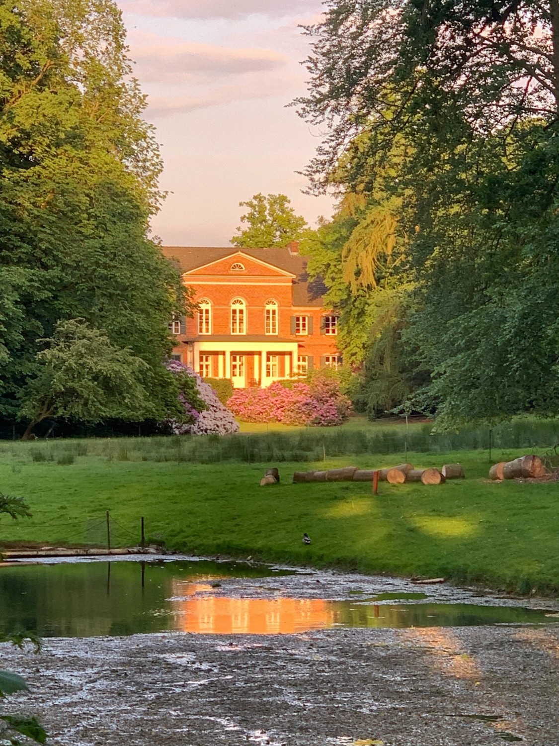 Súkromný park o rozlohe približne štyri hektáre je charakteristický starým, impozantným stromoradím. Rozľahlé trávnaté plochy a idylické prechádzkové chodníky, miestami pokryté machom, vytvárajú početné miesta na oddych. Areál ponúka možnosti ďalšieho využitia, napríklad pre záhradné altánky alebo stajne. Súčasťou parku je aj časť bývalého priekopy starej vodnej pevnosti, ktorá dnes slúži ako prírodný a kúpaliskový rybník.