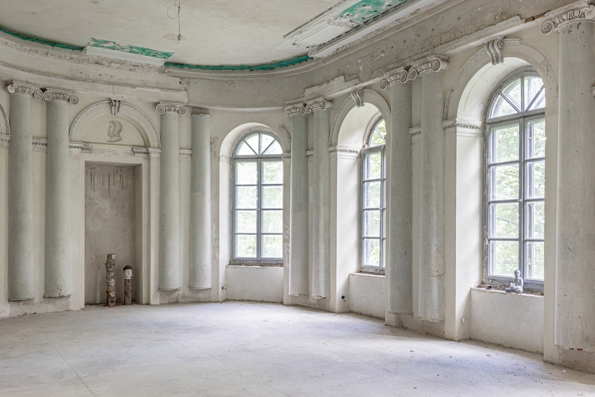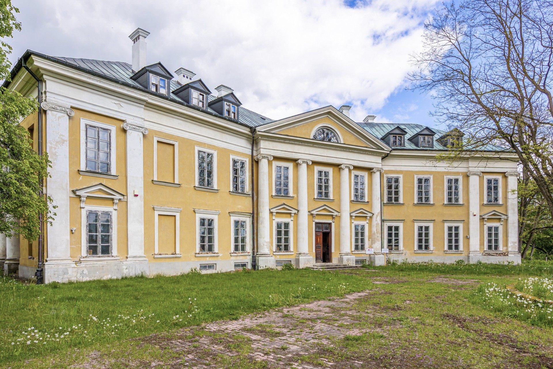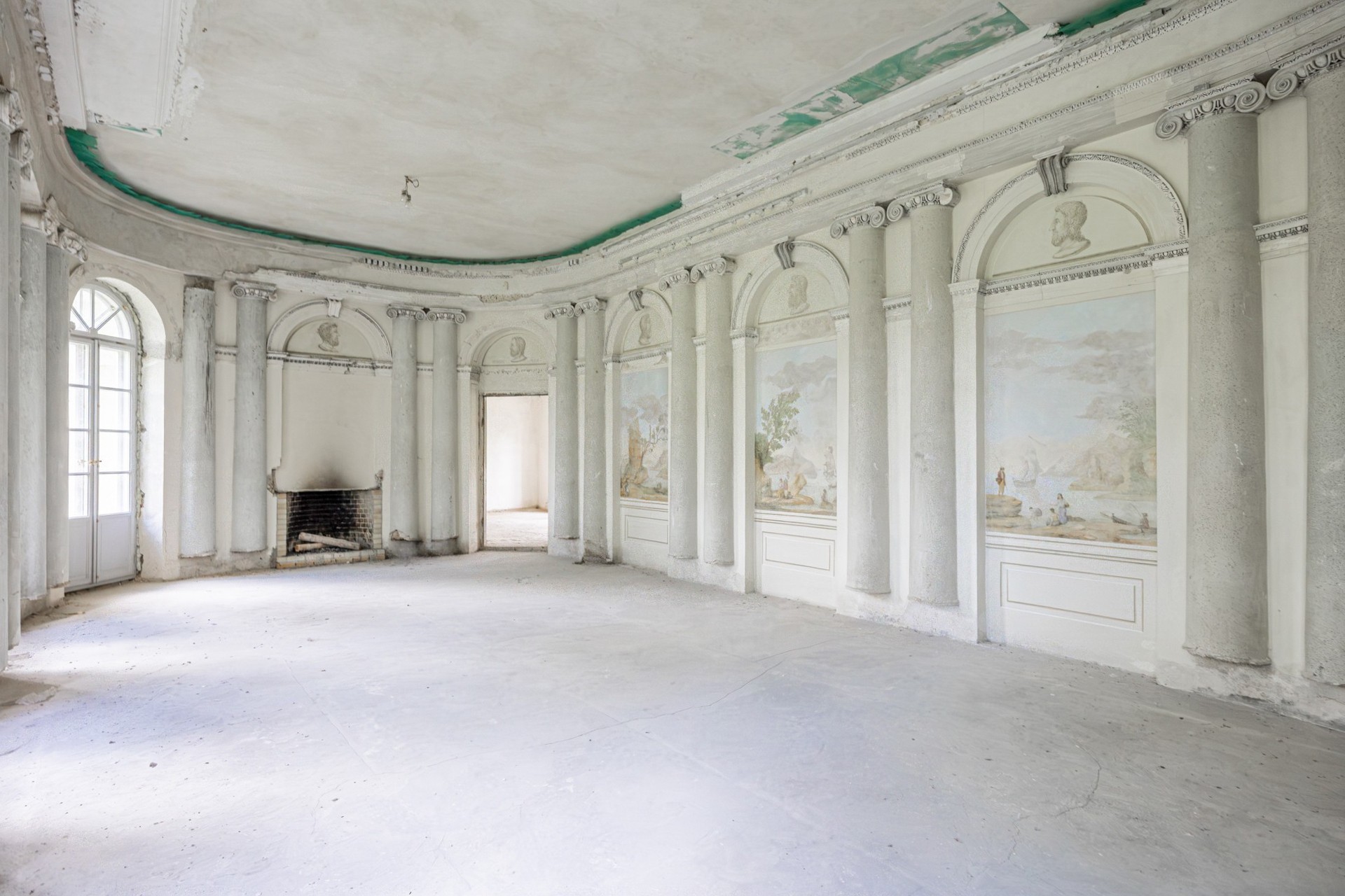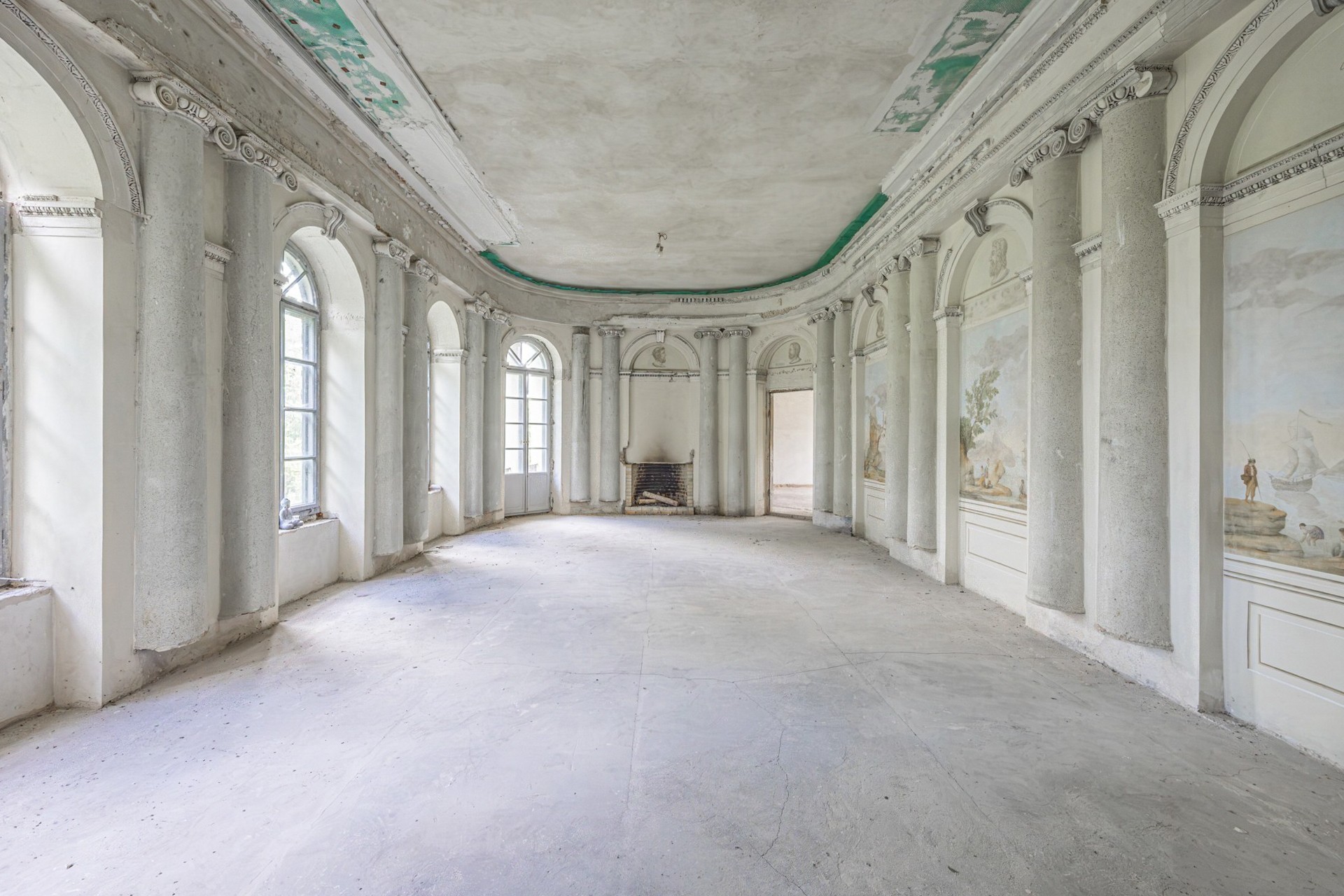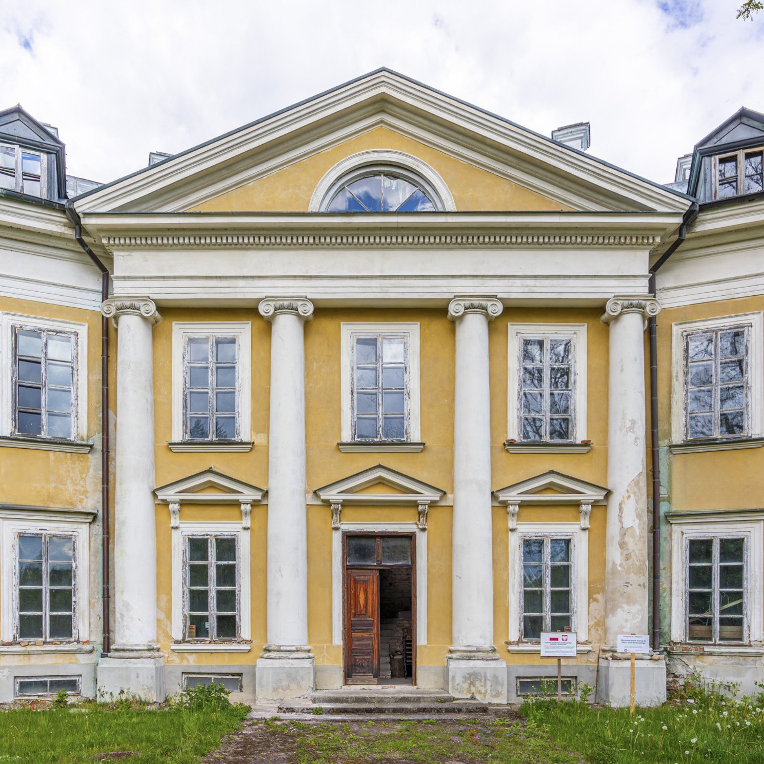 Vstup vedie do priestranného dispozičného riešenia. Na prízemí sa nachádzali obytné miestnosti a jedáleň s al fresco freskami zobrazujúcimi výhľady na park Łazienki vo Varšave a pamätník kráľa Jána III. Sobieskeho. Fresky sú dnes len slabo zachované, avšak môžu byť obnovené špecializovanými reštaurátormi.