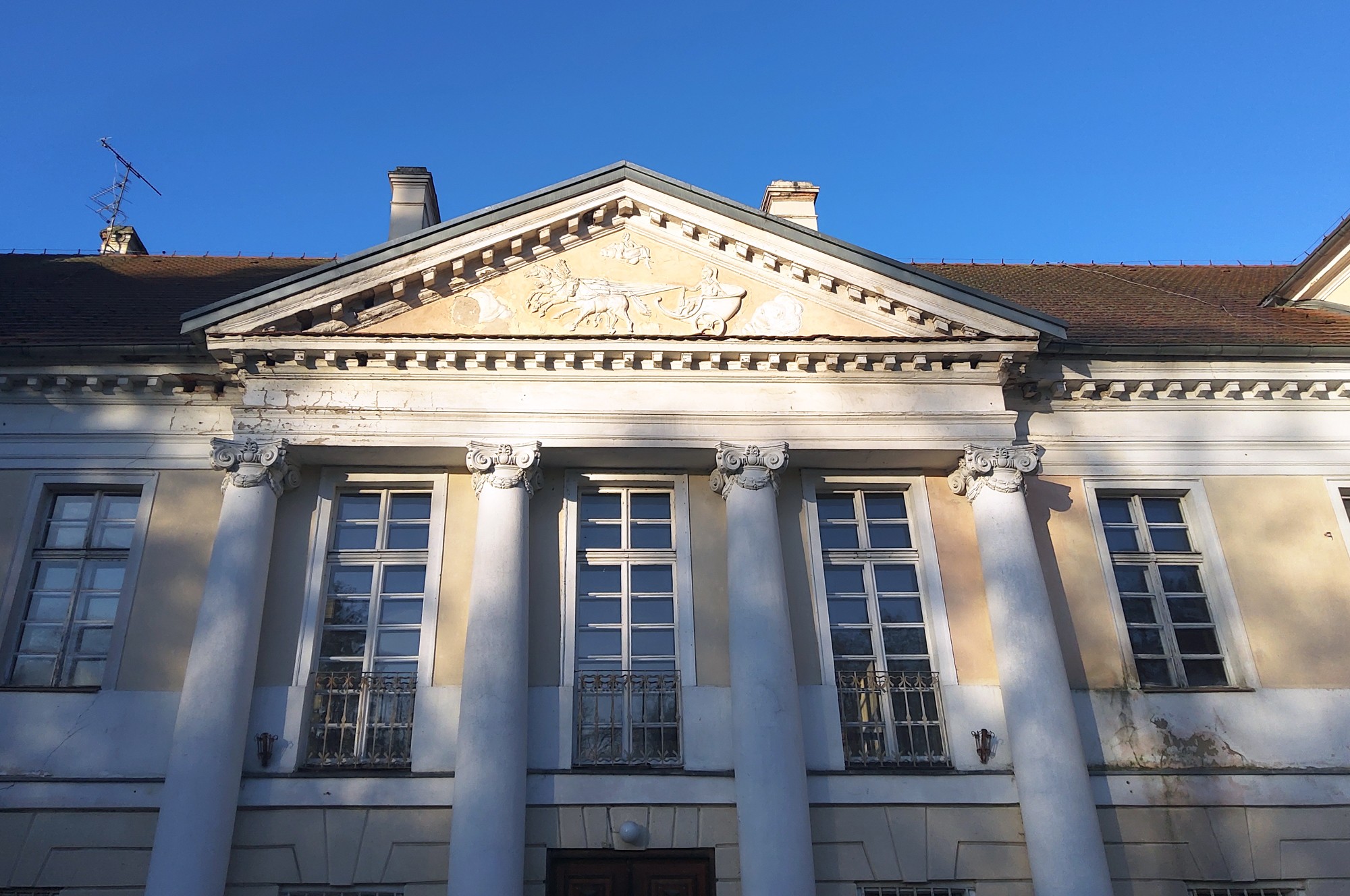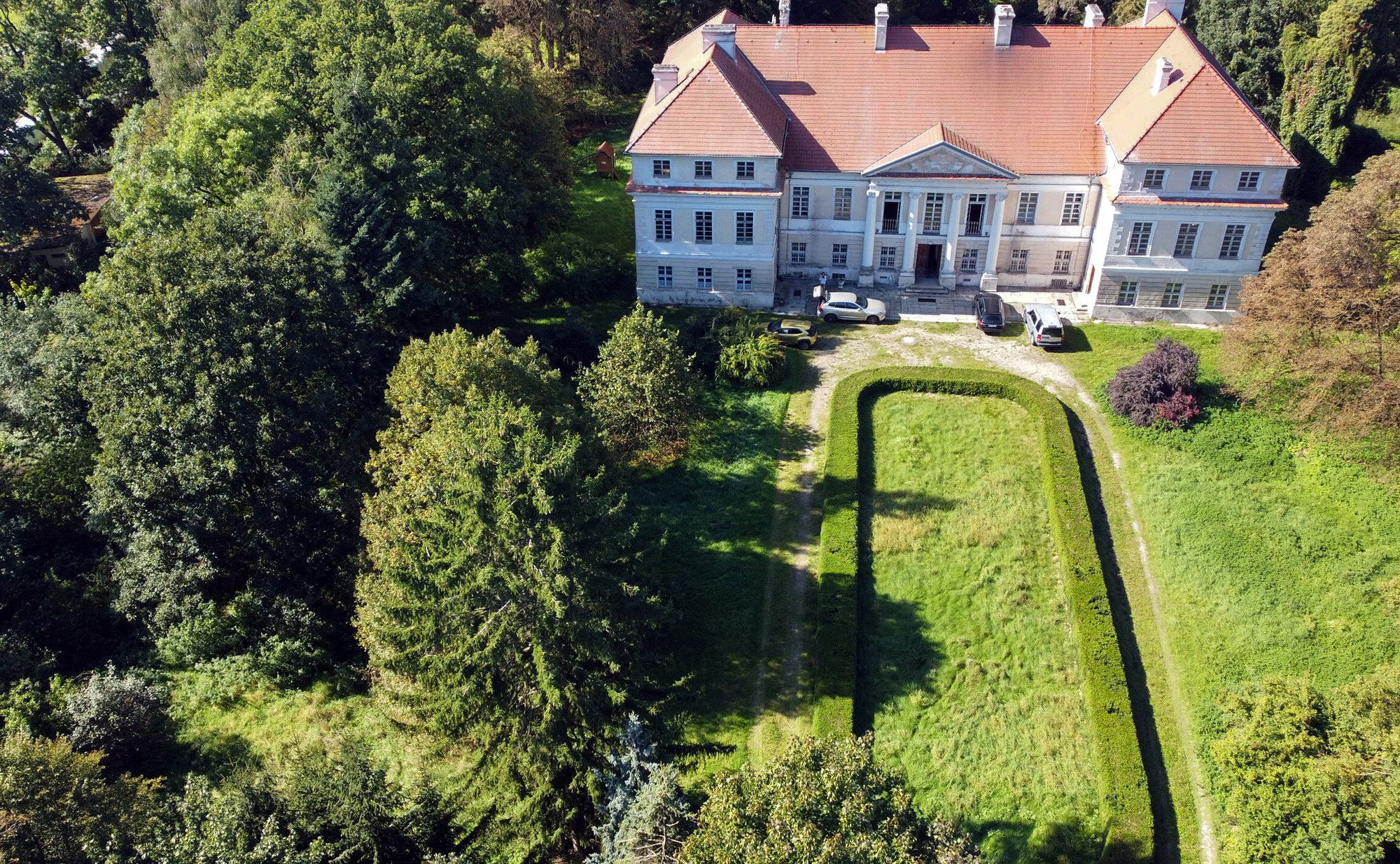 Jan Chrystian Kamsetzer – kráľovský architekt z Drážďan a jeden z najvýznamnejších predstaviteľov klasicizmu v Poľsku – postavil masívnu omietnutú budovu na obdĺžnikovom pôdoryse s dvoma bočnými rizalitmi, nízkym prízemím a reprezentačným poschodím, korunovanú vysokými valbovými a štítovými strechami. Na dvore sa nachádza kolonádový portál s trojuholníkovým tympanónom a plochým reliéfom Heliosovho voza. Kaštieľ patrí medzi významné šľachtické sídla svojej doby a ilustruje prechodné obdobie medzi barokom a klasicizmom.