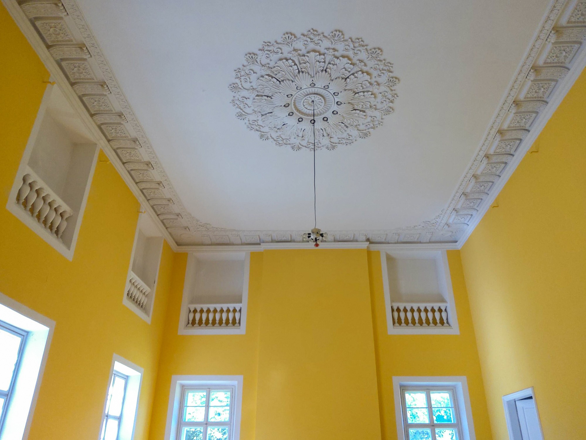 - Bálová sála s výškou stropu približne 7 metrov a štukatúrou