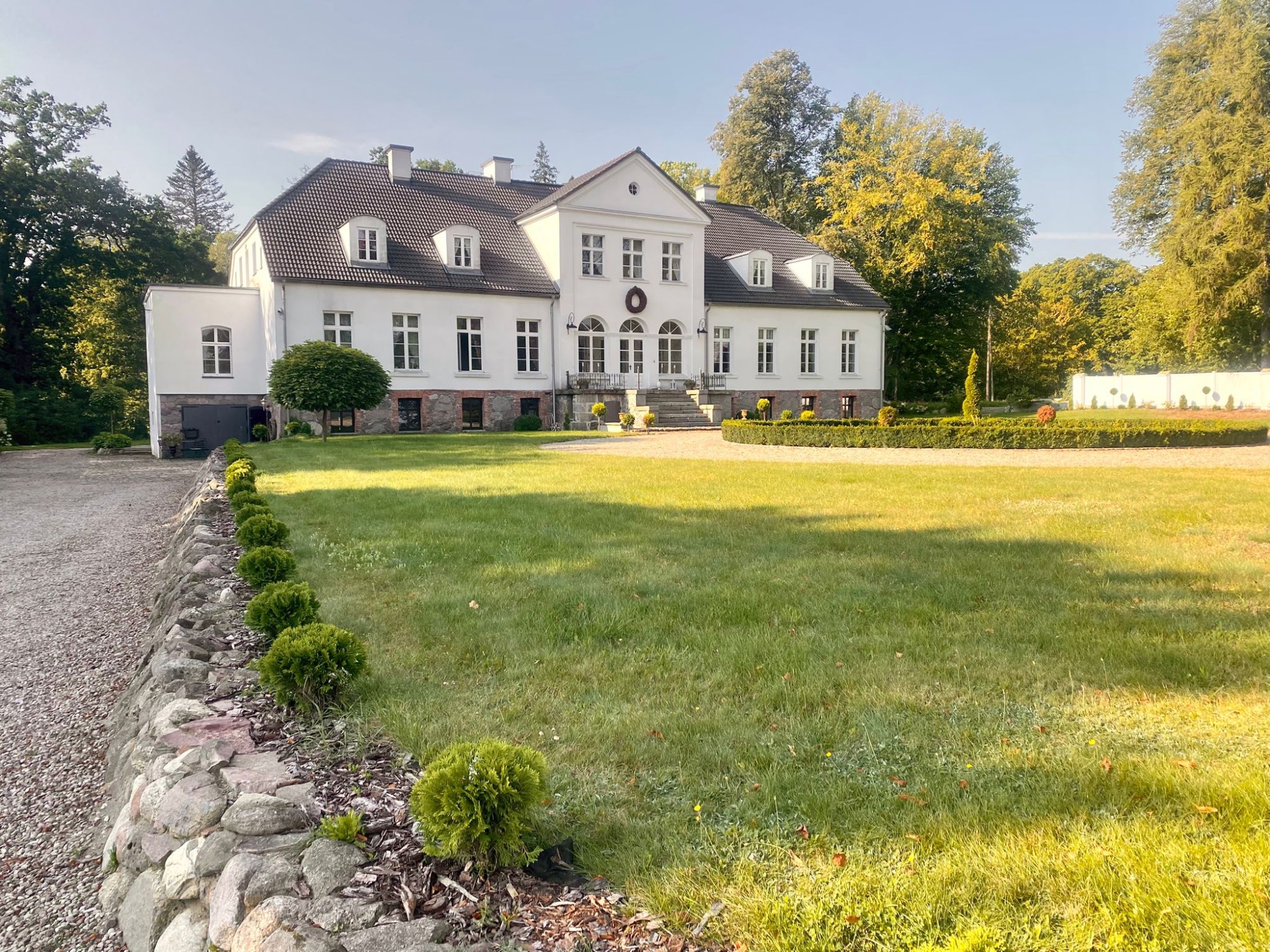 Pozemok má rozlohu 6 hektárov a zahŕňa staré, hodnotné stromy, upravené ovocné sady a idylickú rybníkovú plochu s volavkami, kačicami a iným vodným vtáctvom. Záhrada je navrhnutá prirodzene a je nenáročná na údržbu. Kúria umožňuje aj rozšírenie o 10–16 ďalších izieb. Suterén je pripravený pre priestrannú wellness časť so saunou, a veľká útulná spoločná kuchyňa je ideálnym miestom na stretnutia pre hostí a obyvateľov.