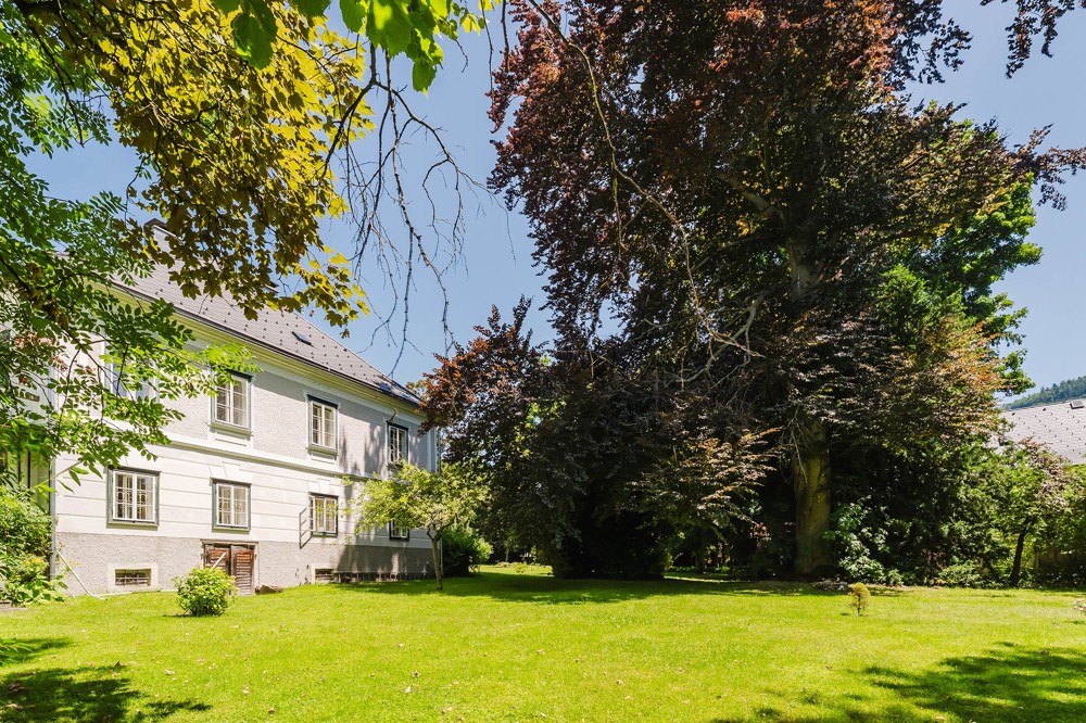 Mimoriadne príťažlivé je parkové okolie, ktoré napriek blízkosti centra mesta vyžaruje absolútny pokoj. Záhrada očarí starými stromami a malebným vodným tokom, ktorý preteká pozemkom. Napriek tejto idyle leží táto honosná nehnuteľnosť v dobre rozvinutom mestskom prostredí, kde sú centrum mesta Gmunden, nákupné možnosti a nádherný breh jazera Traunsee na dosah.