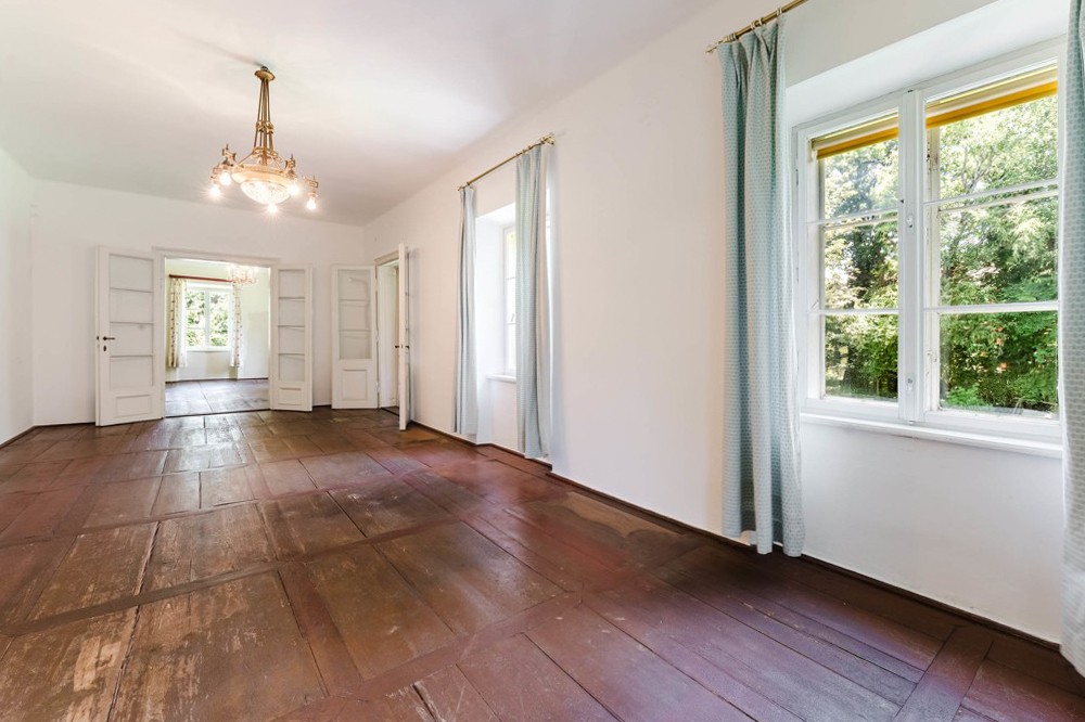 Na jednom z najkúzelnejších miest v rakúskej alpskej oblasti, len pár krokov od brehu jazera Traunsee, leží nehnuteľnosť, ktorá jedinečným spôsobom spája históriu, šarm a perspektívy do budúcnosti. Vila, zasadená do parkového pozemku s rozlohou 6 726 m², ohromuje nielen svojou architektúrou, ale ponúka aj priestor pre individuálne vízie – od súkromného útočiska až po vizionársky realitný projekt.