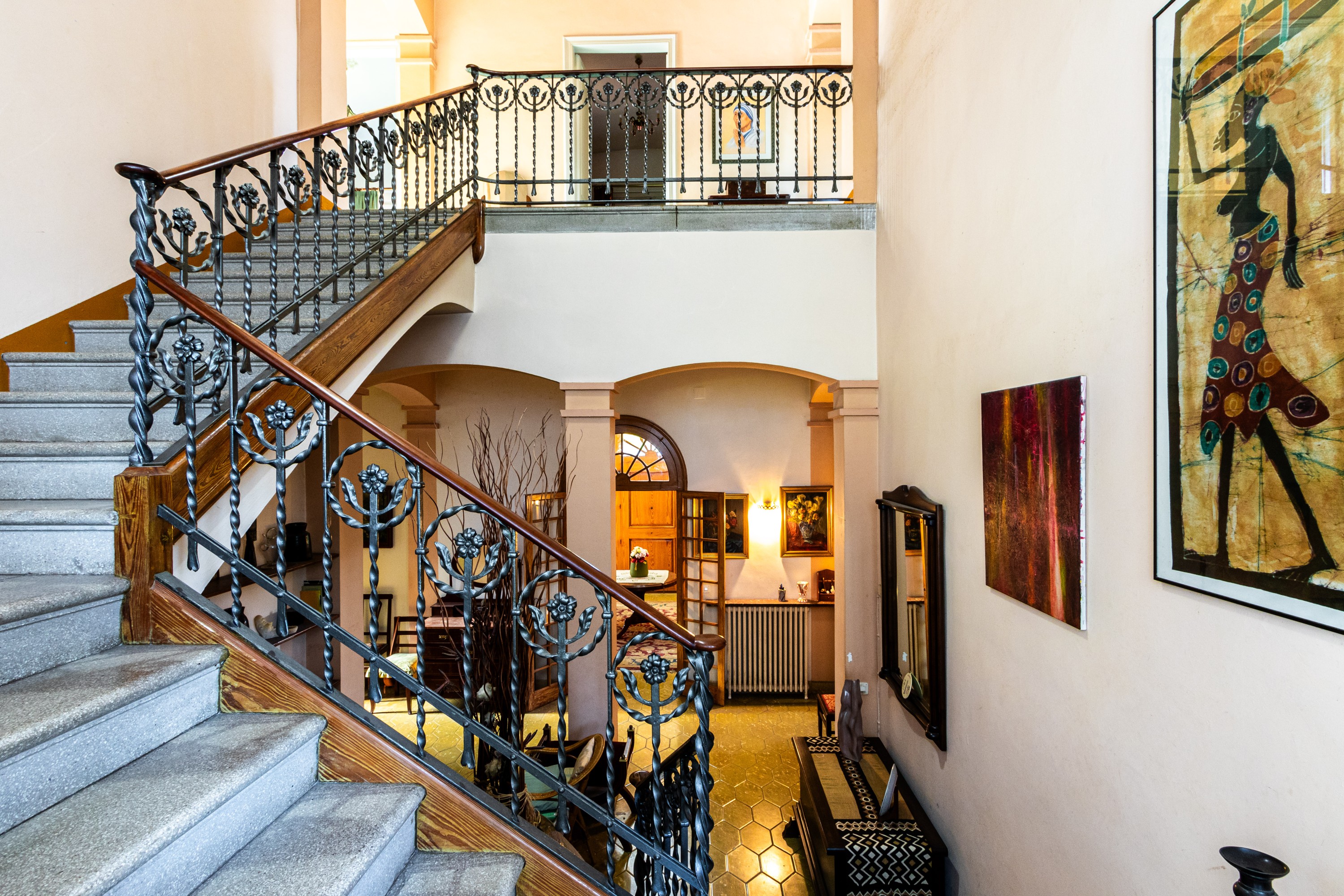 Pozemok o rozlohe 5 119 m² zahŕňa záhrady, bazén na rekonštrukciu a oddychovú zónu. Juhozápadná orientácia zabezpečuje prirodzené svetlo počas celého dňa. Vila má balkóny, terasy a garáž vytesanú do svahu s privátnym prístupom. Zachovaných je mnoho pôvodných prvkov z začiatku 20. storočia.