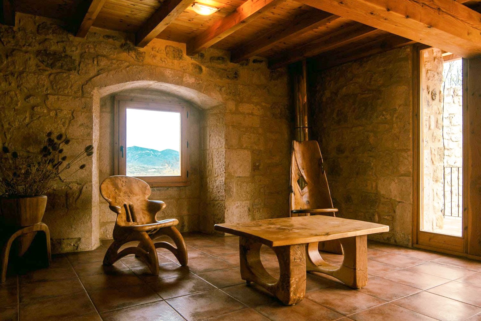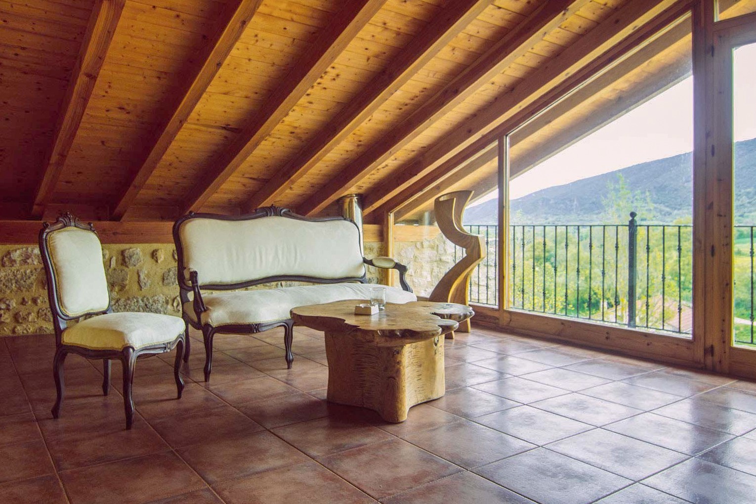 - Na najvyššom poschodí je priestranná terasa s impozantným výhľadom na údolie
