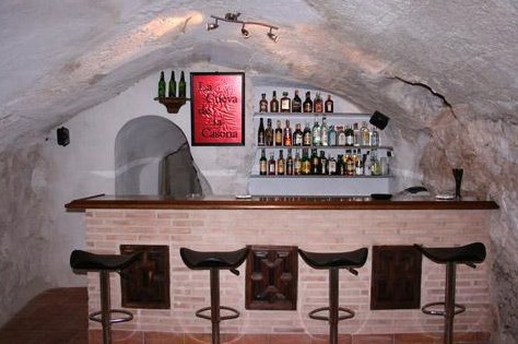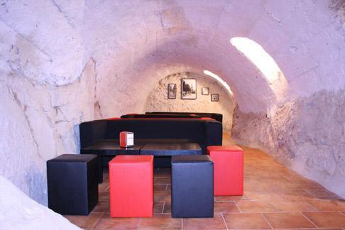 - Podzemná časť s miestnosťami vytesanými do skaly, v jaskynnom štýle, s prístupom z obytnej a jedálenskej časti, druhým vstupom z centrálnej vstupnej haly a tretím vstupom cez hospodársku časť paláca.