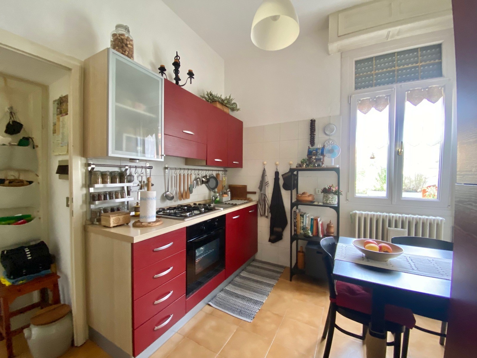 Vnútorné schodisko vedie na poschodie, kde je priestranný a svetlý byt s vstupnou halou, kuchyňou s jedálenským kútom, samostatnou jedálňou, obývacou izbou s terasou, kúpeľňou, dvoma veľkými spálňami a druhou terasou s výhľadom do záhrady.
