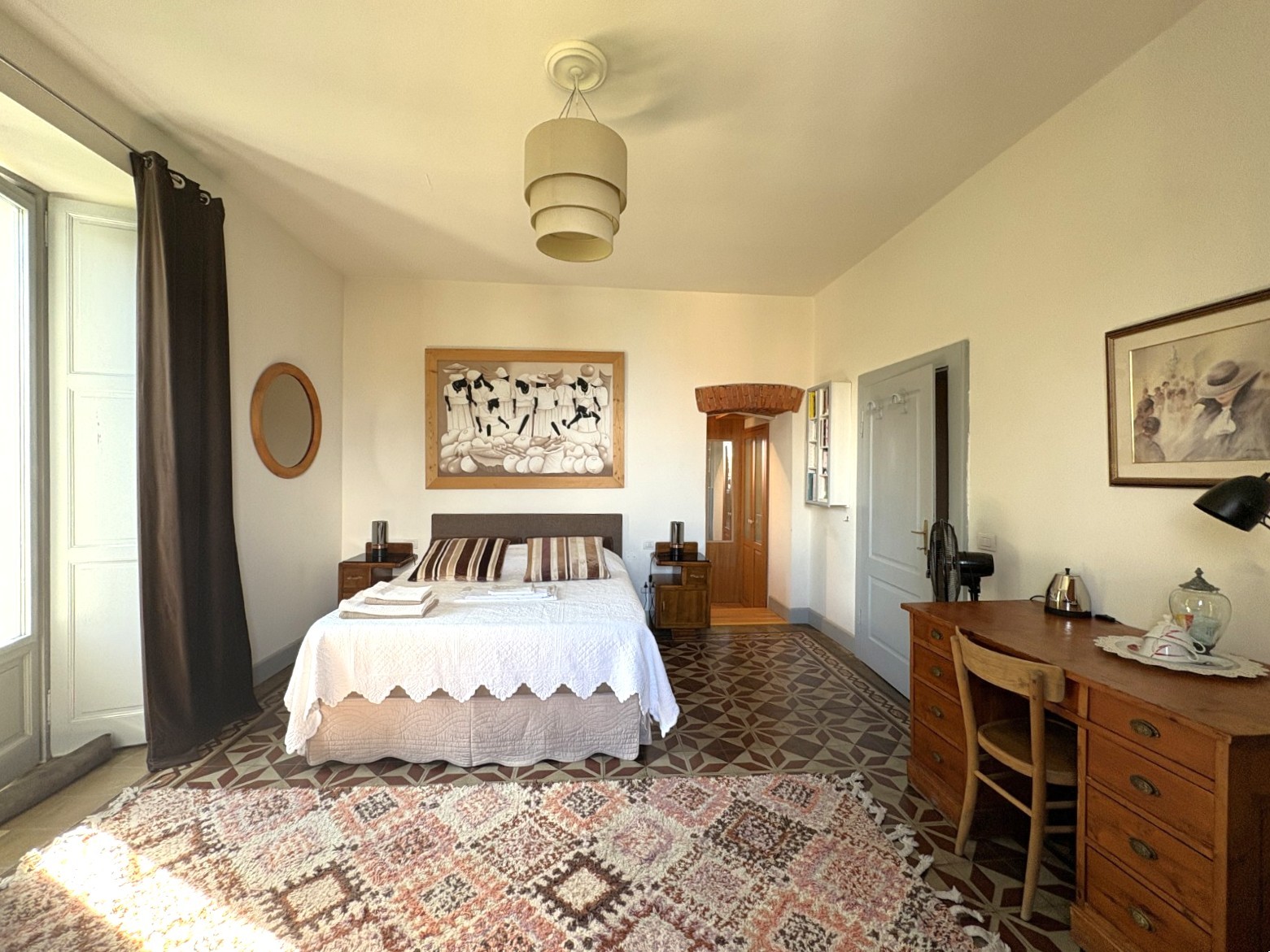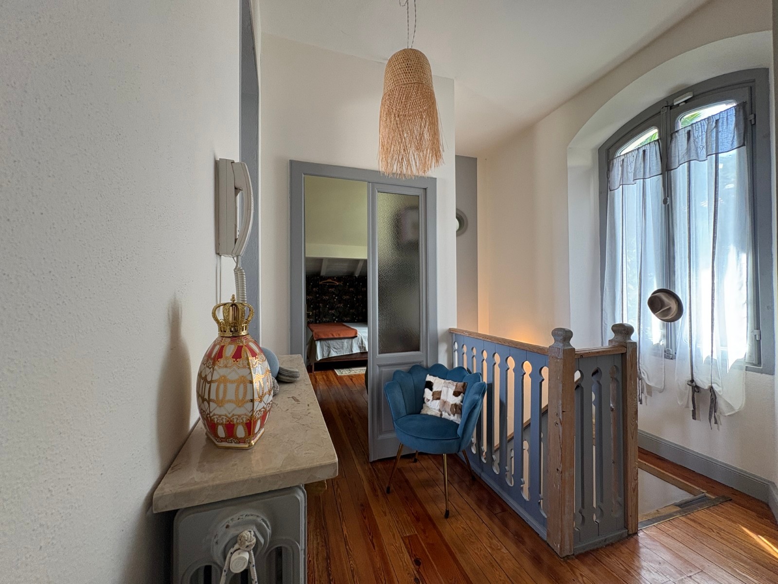 Hlavné apartmá s kúpeľňou (sprcha a vaňa) a šatníkom, ďalšie dve spálne so šatníkovými priestormi, elegantná kúpeľňa, presklená veranda s výhľadom do záhrady.
