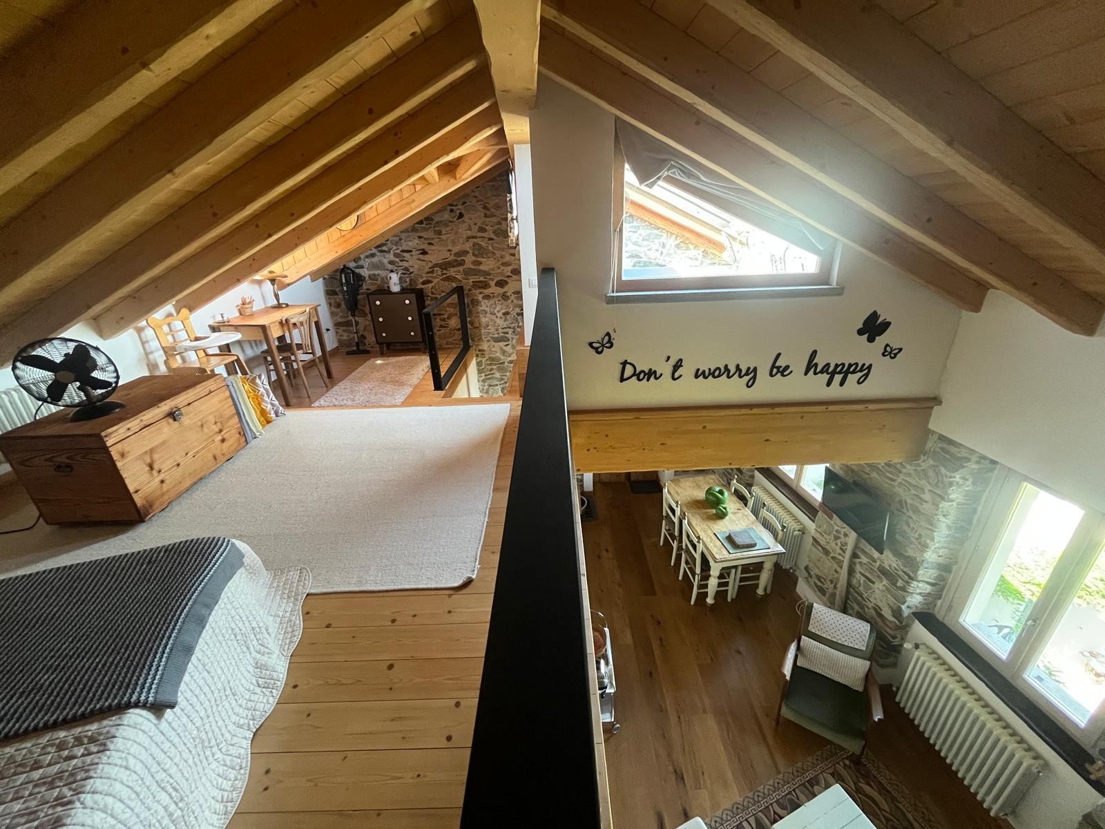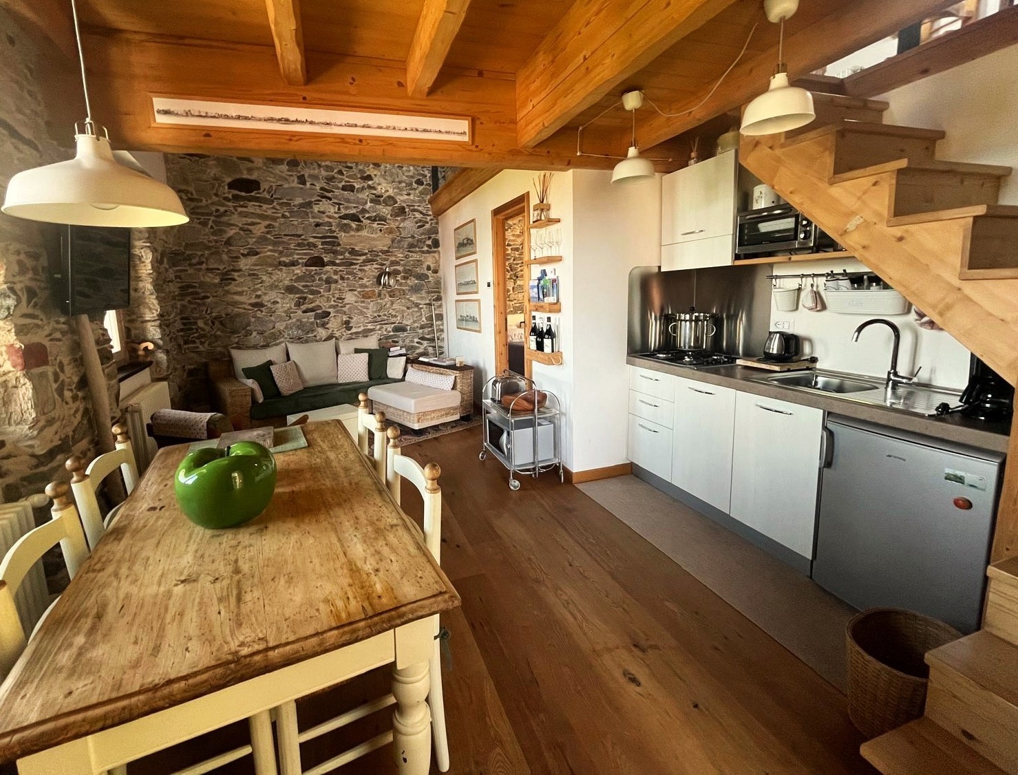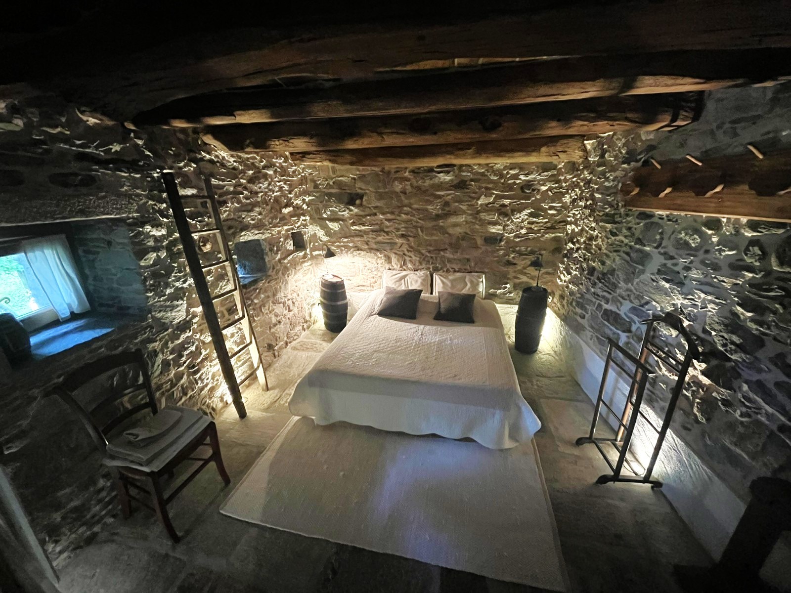 Dve jednotky – prízemie: štúdio s kúpeľňou a prírodnou jaskyňou; horné poschodie: loft s kamennými stenami, obývacou časťou, kuchyňou, spálňou, kúpeľňou, galériou a panoramatickou terasou s výhľadom na jazero.