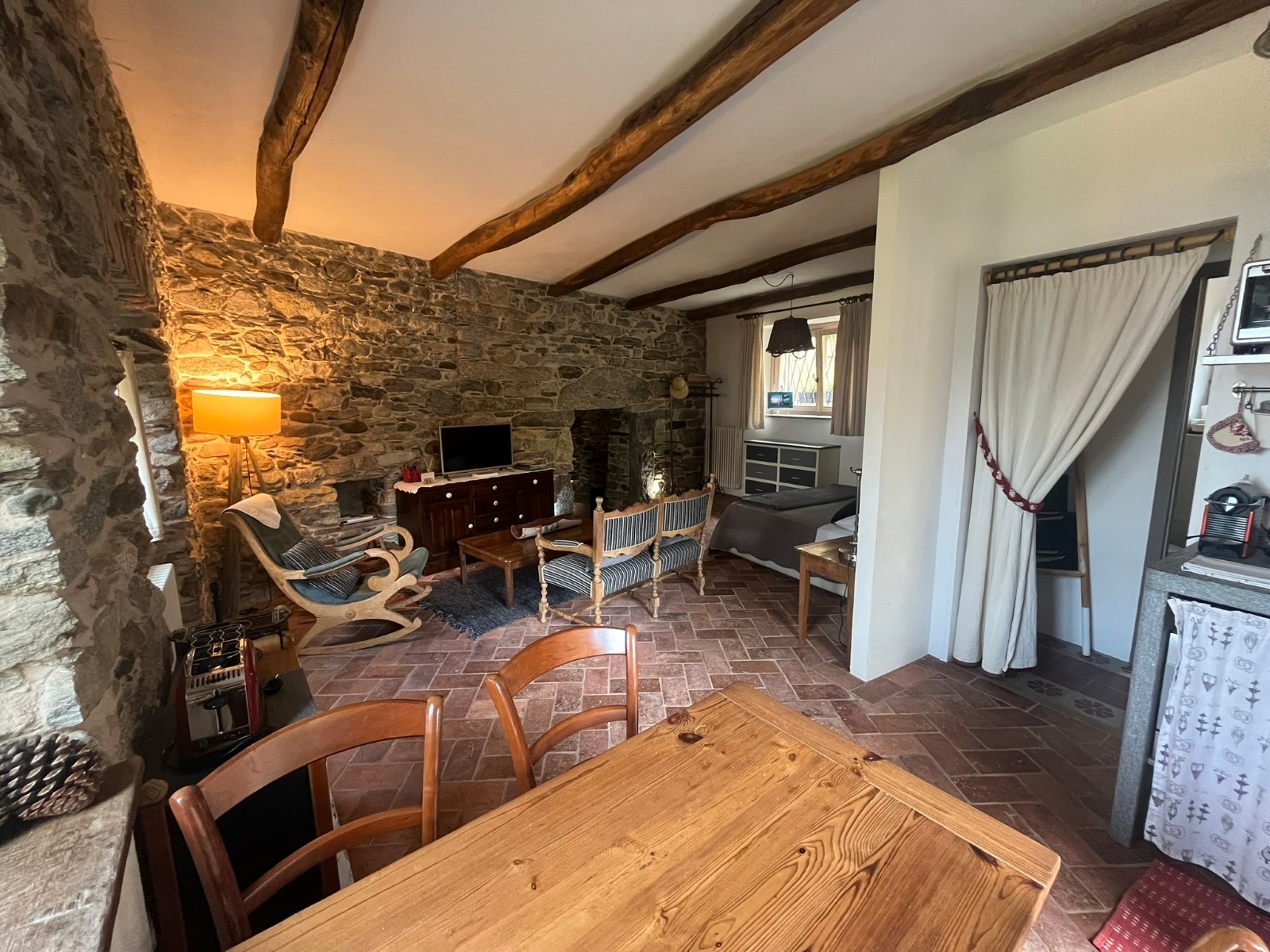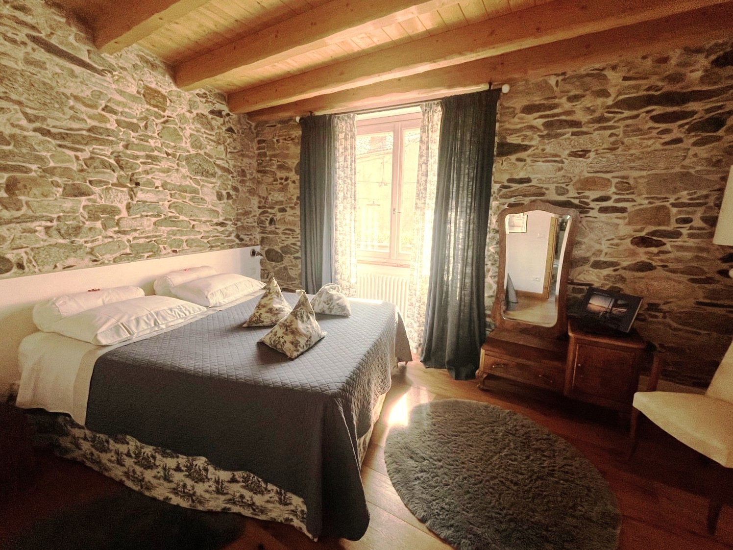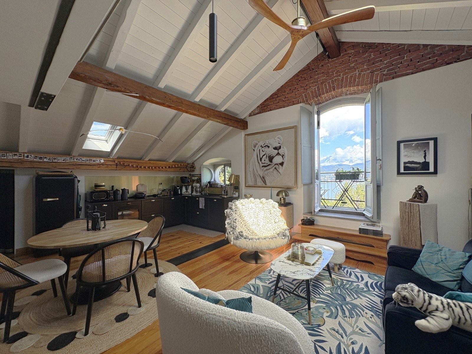 Dve jednotky – prízemie: štúdio s kúpeľňou a prírodnou jaskyňou; horné poschodie: loft s kamennými stenami, obývacou časťou, kuchyňou, spálňou, kúpeľňou, galériou a panoramatickou terasou s výhľadom na jazero.