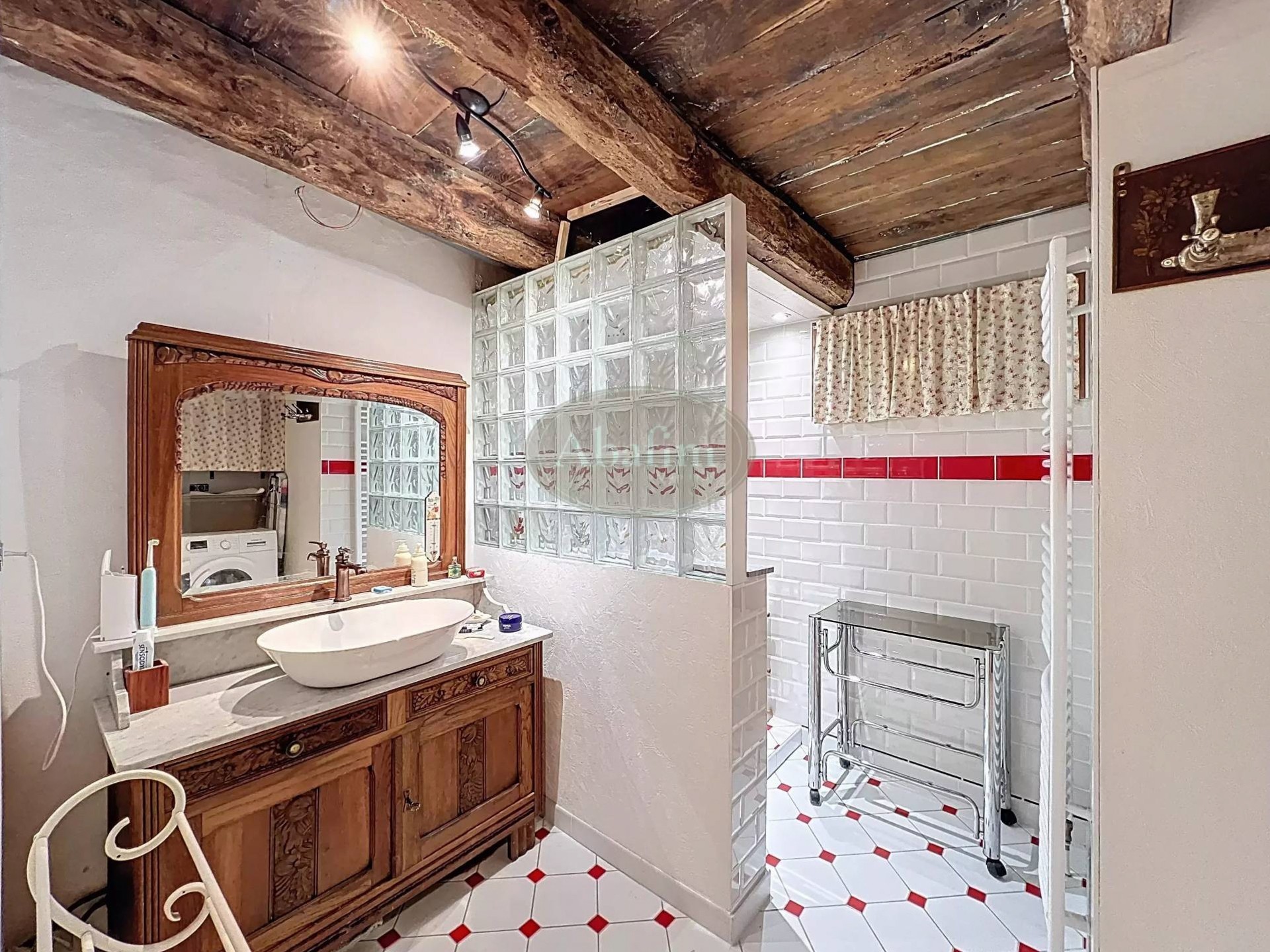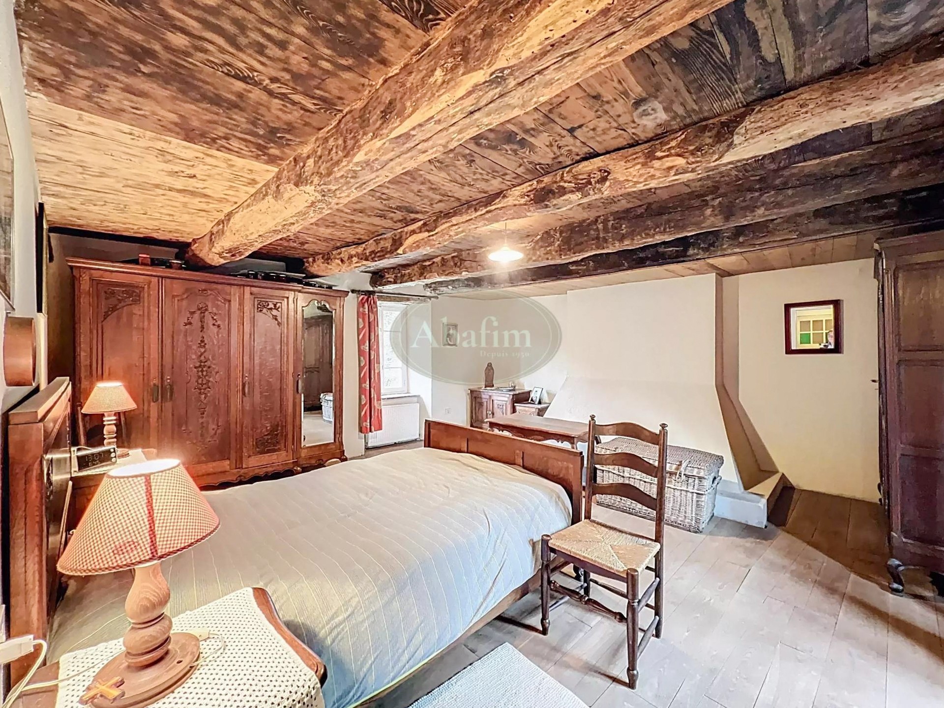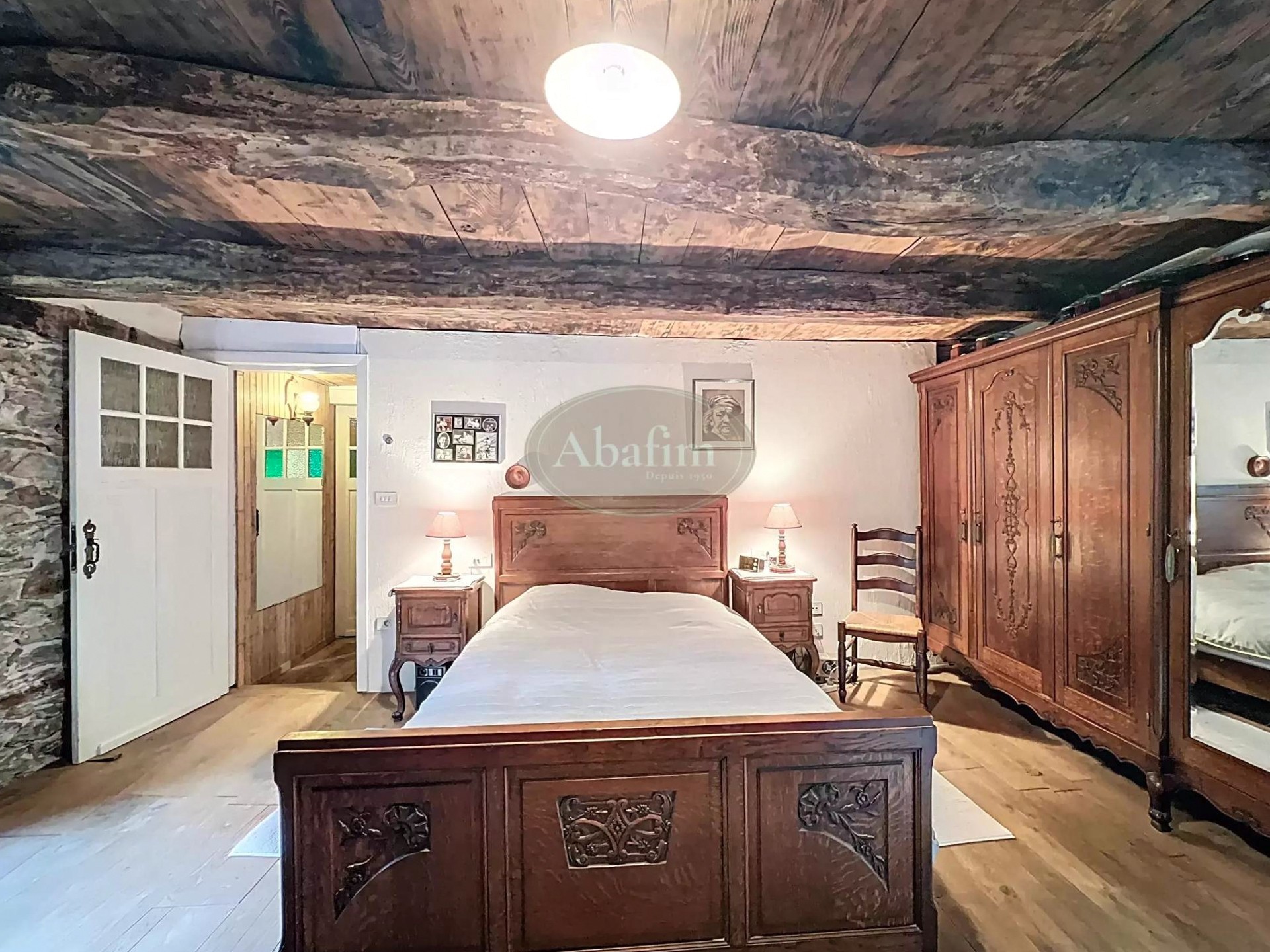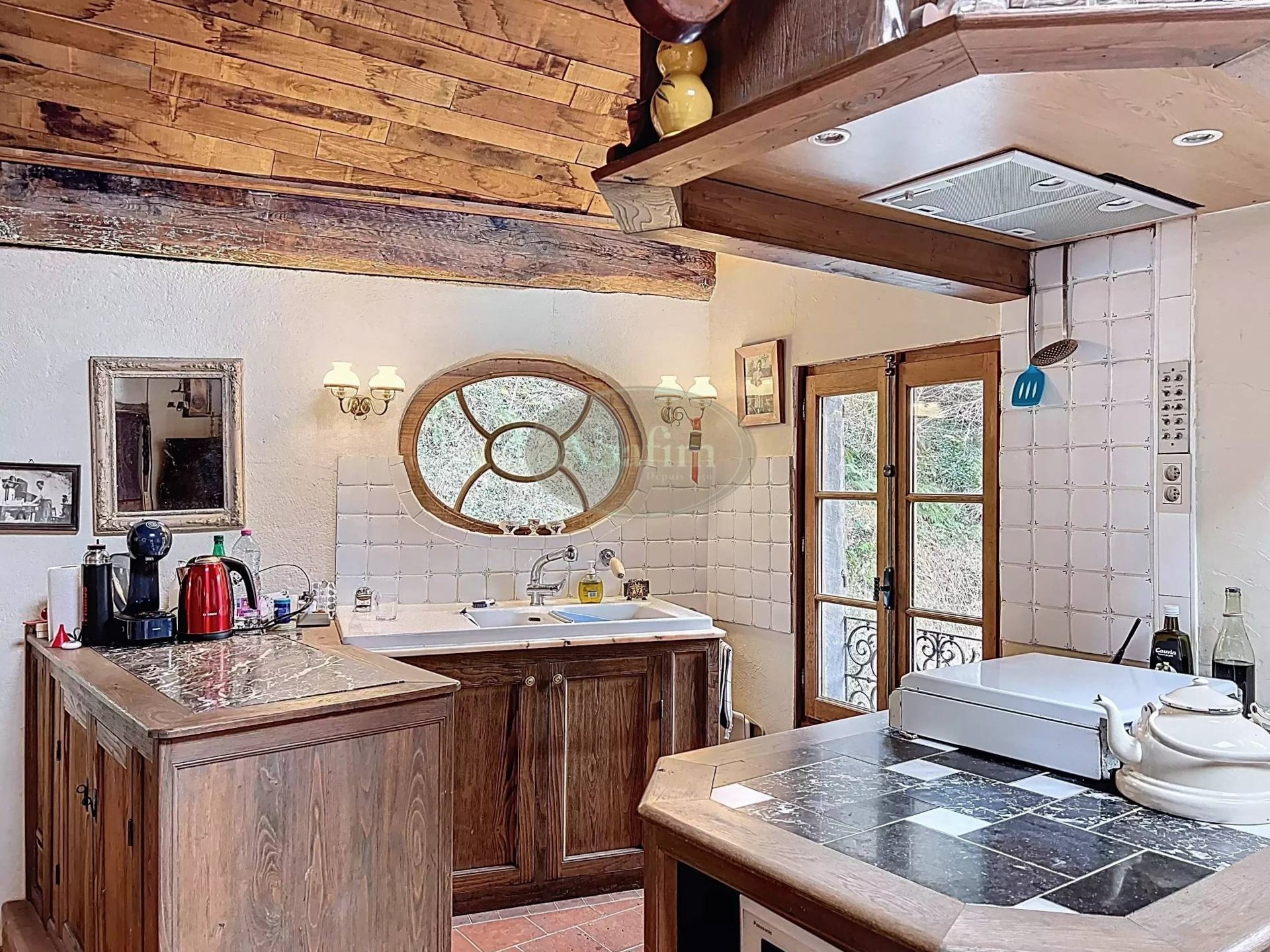 Hlavné podlažie ponúka priestrannú obývaciu izbu s otvoreným krbom a pôvodnou krbovou platňou zdobenou erbom Karel V. Viditeľné trámy, pôvodné terakotové dlaždice a svetlá kuchyňa s jedálňou a priamym vstupom na panoramatickú terasu dodávajú priestoru autentický charakter. Na terase sa nachádza letná kuchyňa s grilom a tradičnou pecou na chlieb.