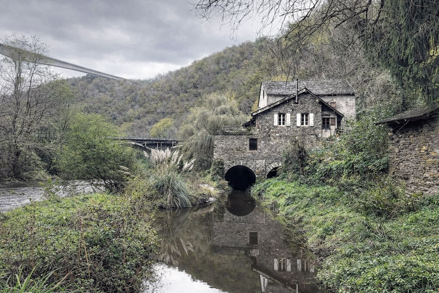 Historický kamenný mlyn na brehu rieky Viaur, len 30 minút od Albi, a napriek tomu úplne súkromný a odľahlý: približne 340 m² obytného priestoru z kameňa a dreva, obklopené 6 000 m² vlastného lesa s impozantným 40-metrovým vodopádom, na mieste s viac ako 400-ročnou históriou.