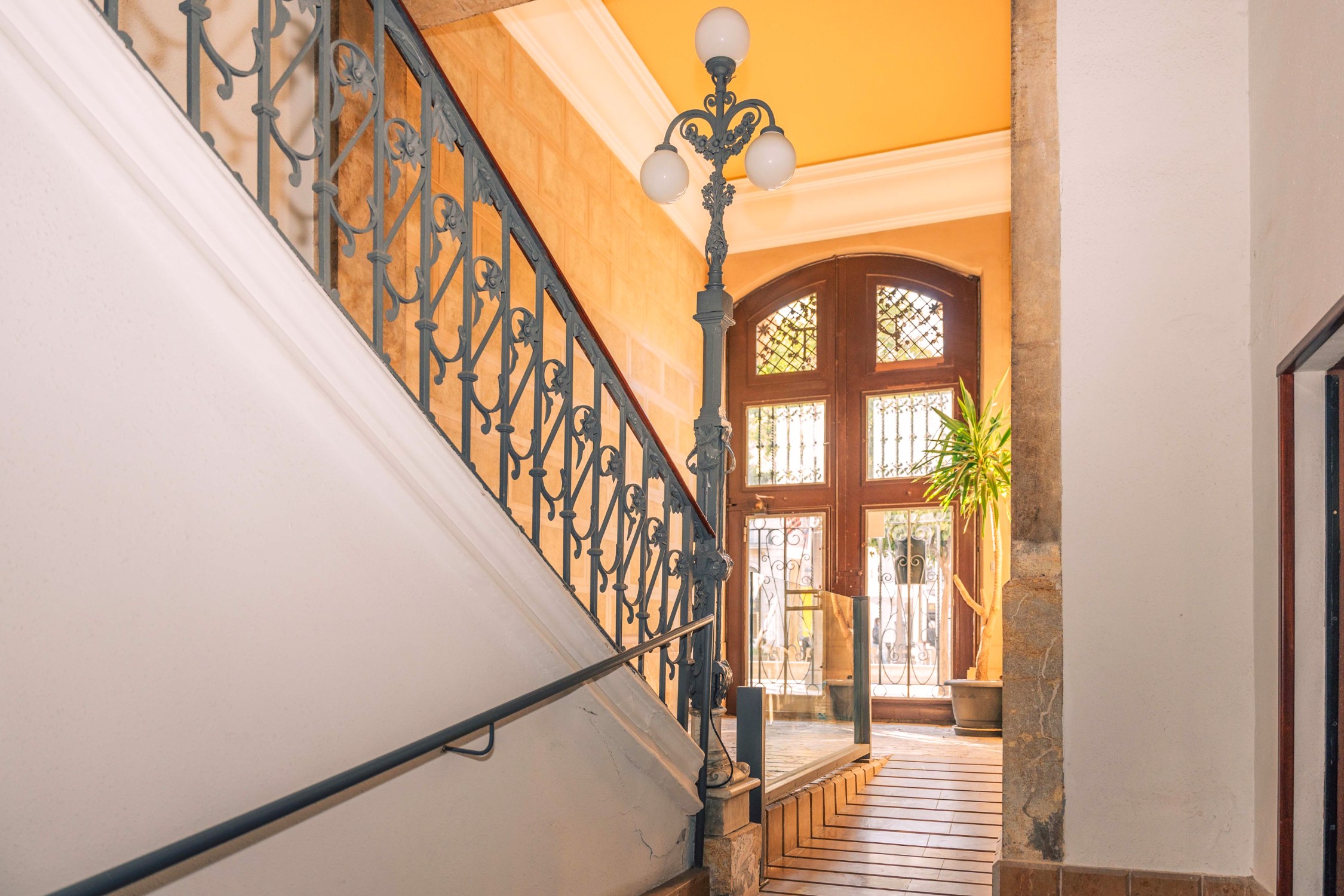 Mestský palác ponúka variabilné využitie pri vertikálnom členení: - Prízemie a medziposchodie (Mezanín): Na prízemí sa nachádza obchodný priestor so samostatným vstupom z bočnej ulice (Calle Girona). Priestor je možné prepojiť s medziposchodím, čo umožňuje komfortné komerčné využitie, galériu alebo reprezentatívne sídlo firmy.