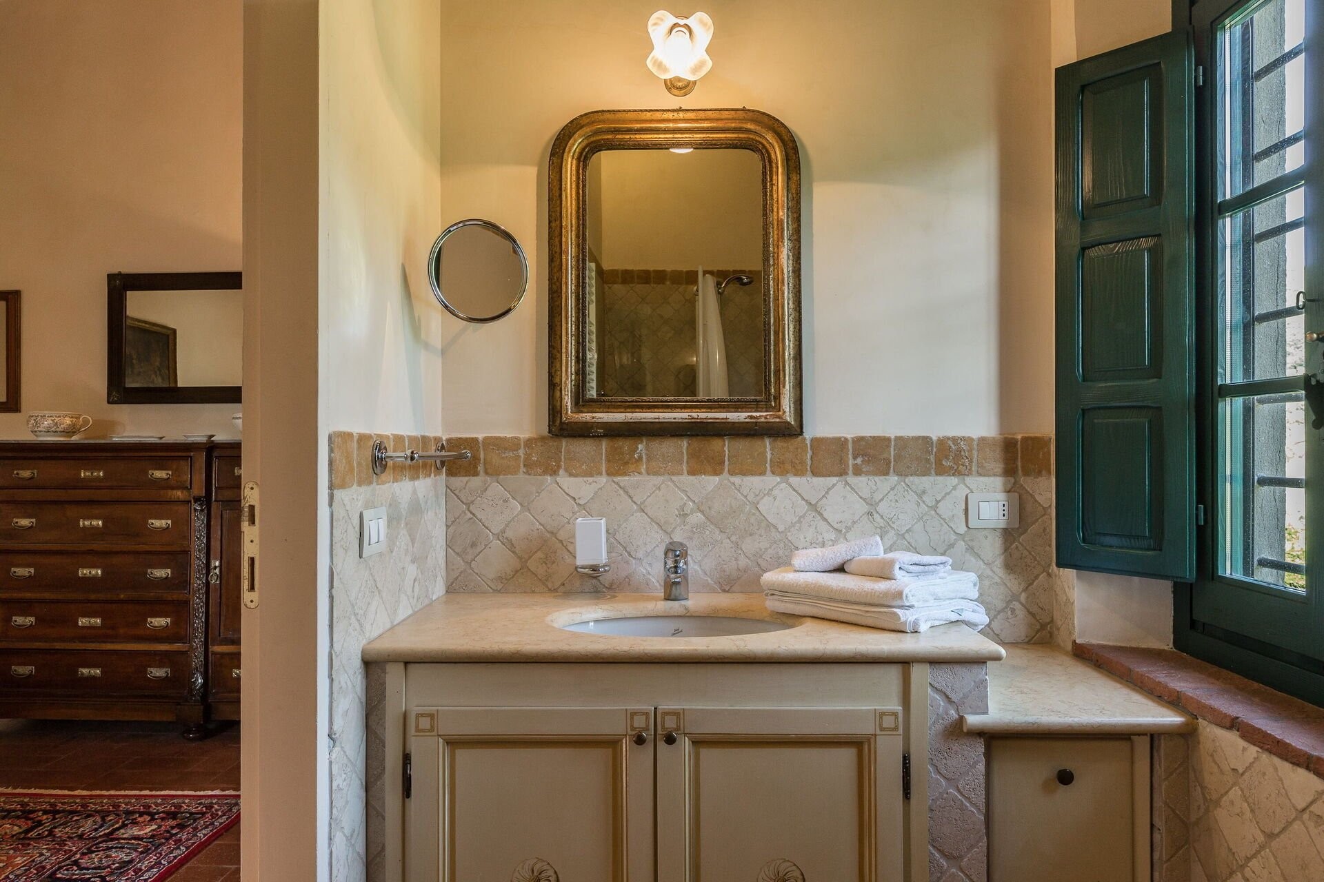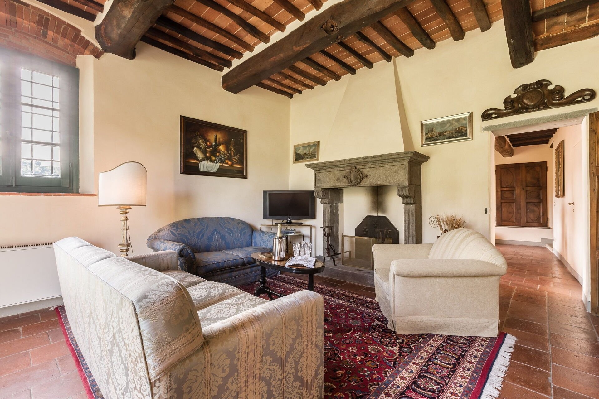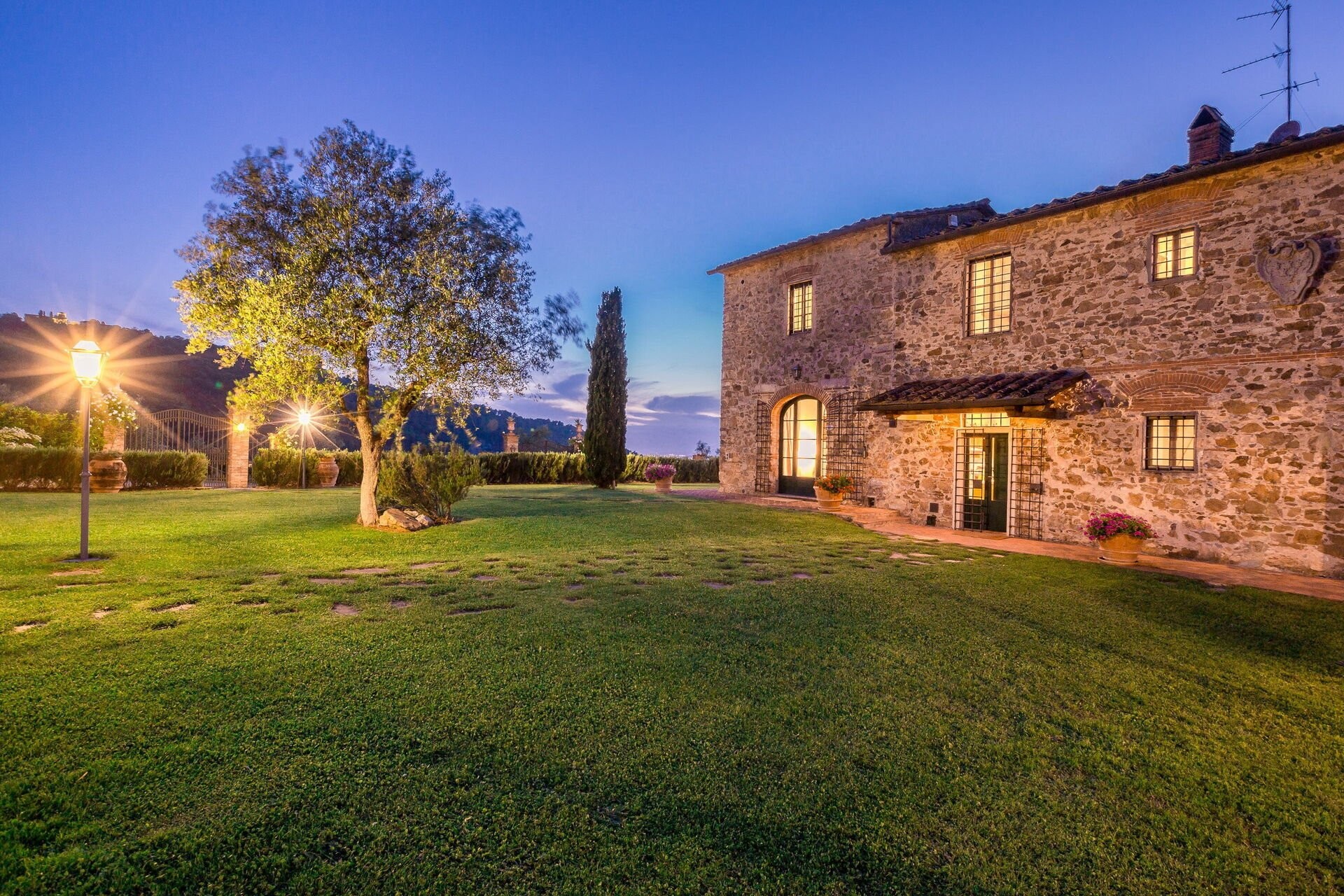 Nehnuteľnosť pozostáva z dvoch krásnych vil s celkovou plochou viac ako 1000 m², umiestnených v 7-hektárovom parku so zelenými trávnikmi, lesmi a olivovníkmi. Lokalita je pokojná a panoramatická, pričom dôležité mestá ako Florencia, Lucca a Pisa sú ľahko dostupné autom aj verejnou dopravou.