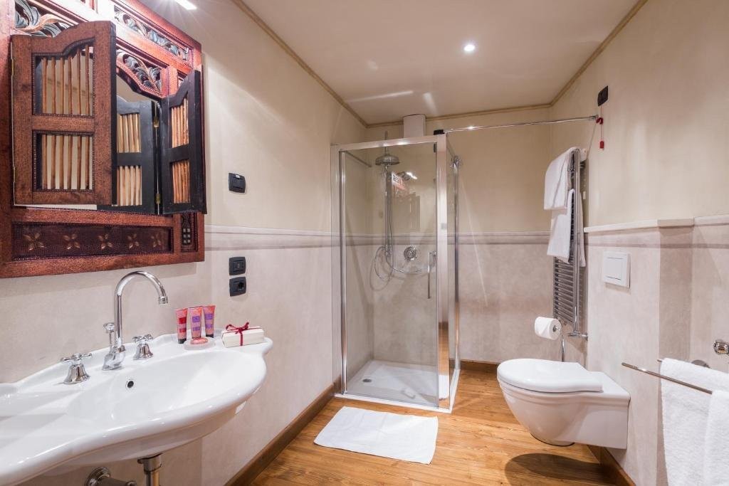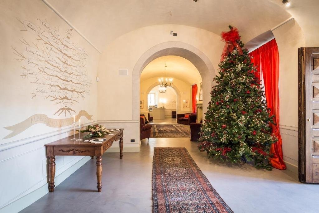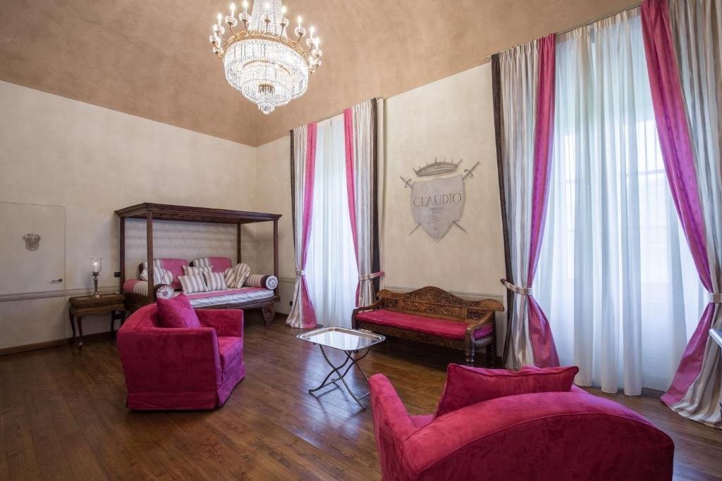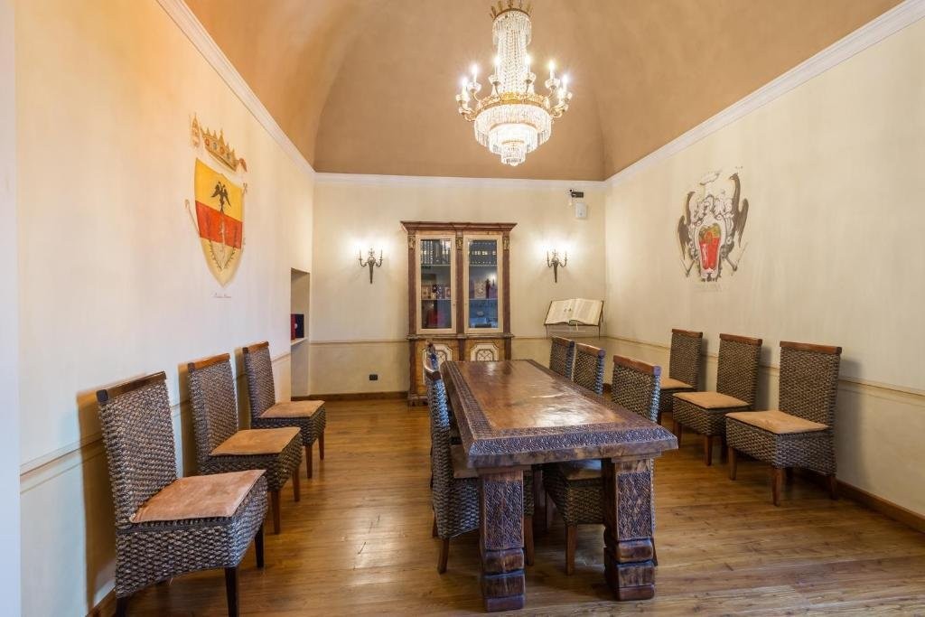 V strede objektu sa nachádza priestranné nádvorie, ktoré preniká prirodzeným svetlom do dolných poschodí a vytvára príjemné prostredie pre hostí. Na prízemí sa nachádza elegantná reštaurácia s kapacitou 120 hostí vo vnútri a 32 na terase, spolu s lounge barom a pohodlnými sedením. Recepcia vyžaruje teplo a sofistikovanosť, zatiaľ čo wellness s saunou, zážitkovou sprchou a masážnou miestnosťou poskytuje pokojné útočisko. Na prvom poschodí je štrnásť individuálne zariadených apartmánov, každý s vlastnou kúpeľňou, niektoré s oddelenými posedením alebo rozložené na viacerých úrovniach. Reprezentačné miestnosti zámku sú vhodné na súkromné podujatia, obchodné stretnutia či oslavy, a krytá terasa ponúka panoramatický výhľad na Toskánsko-emiliánske Apeniny, čo vytvára krásne spojenie medzi vnútornými a vonkajšími priestormi.