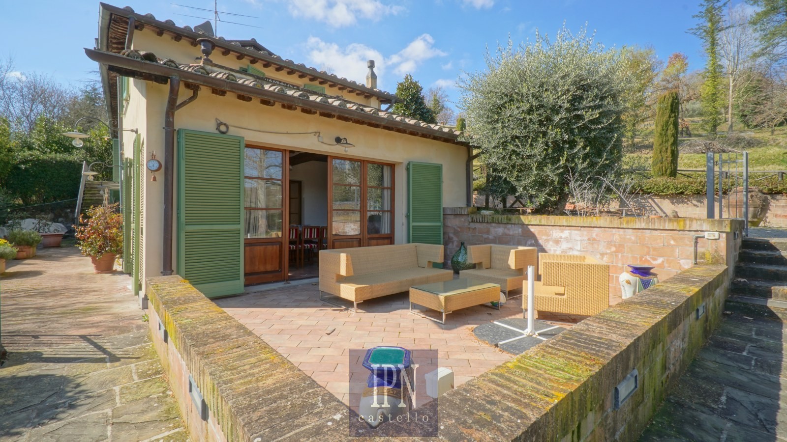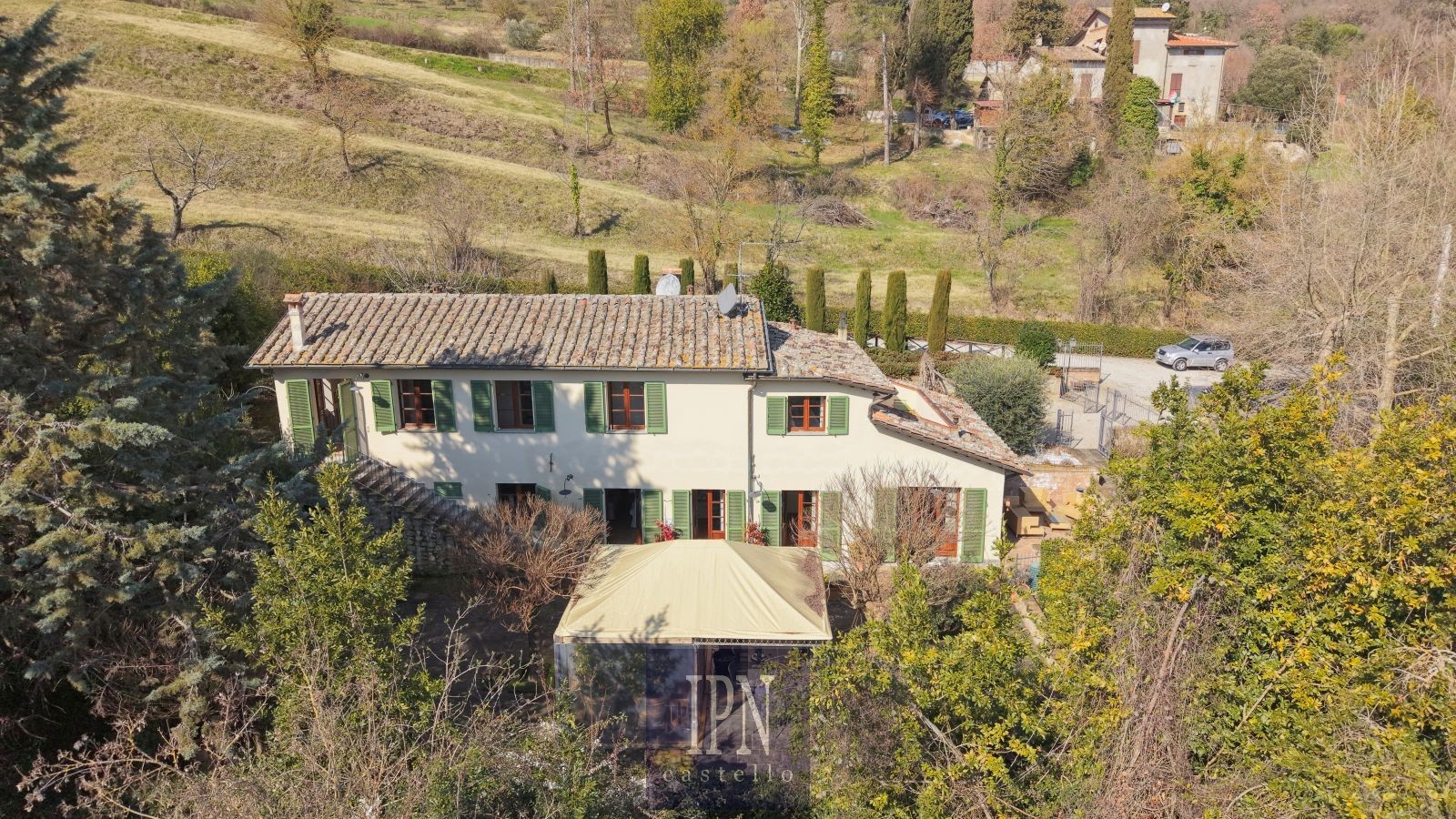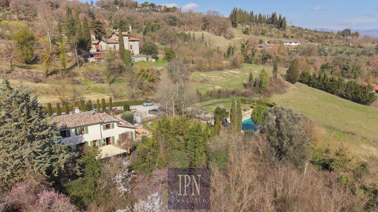 Zrekonštruovaný umbrický vidiecky dom, cca 250 m², 4 km od Città di Castello. Budova je rozdelená na dve podlažia prepojené vnútorným a vonkajším schodiskom. Prízemie: obývacia izba s krbom, kuchyňa, jedáleň, pivnica, veranda. Prvé poschodie: štyri spálne, štyri kúpeľne, práčovňa, terasa a balkón s výhľadom na umbrické kopce.