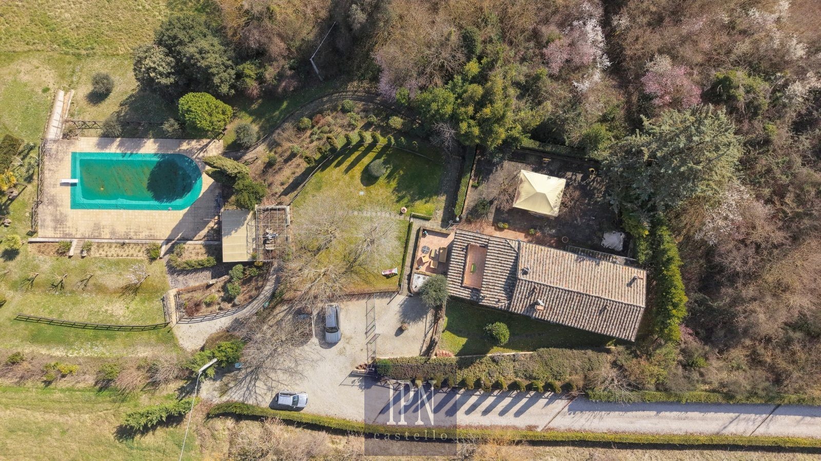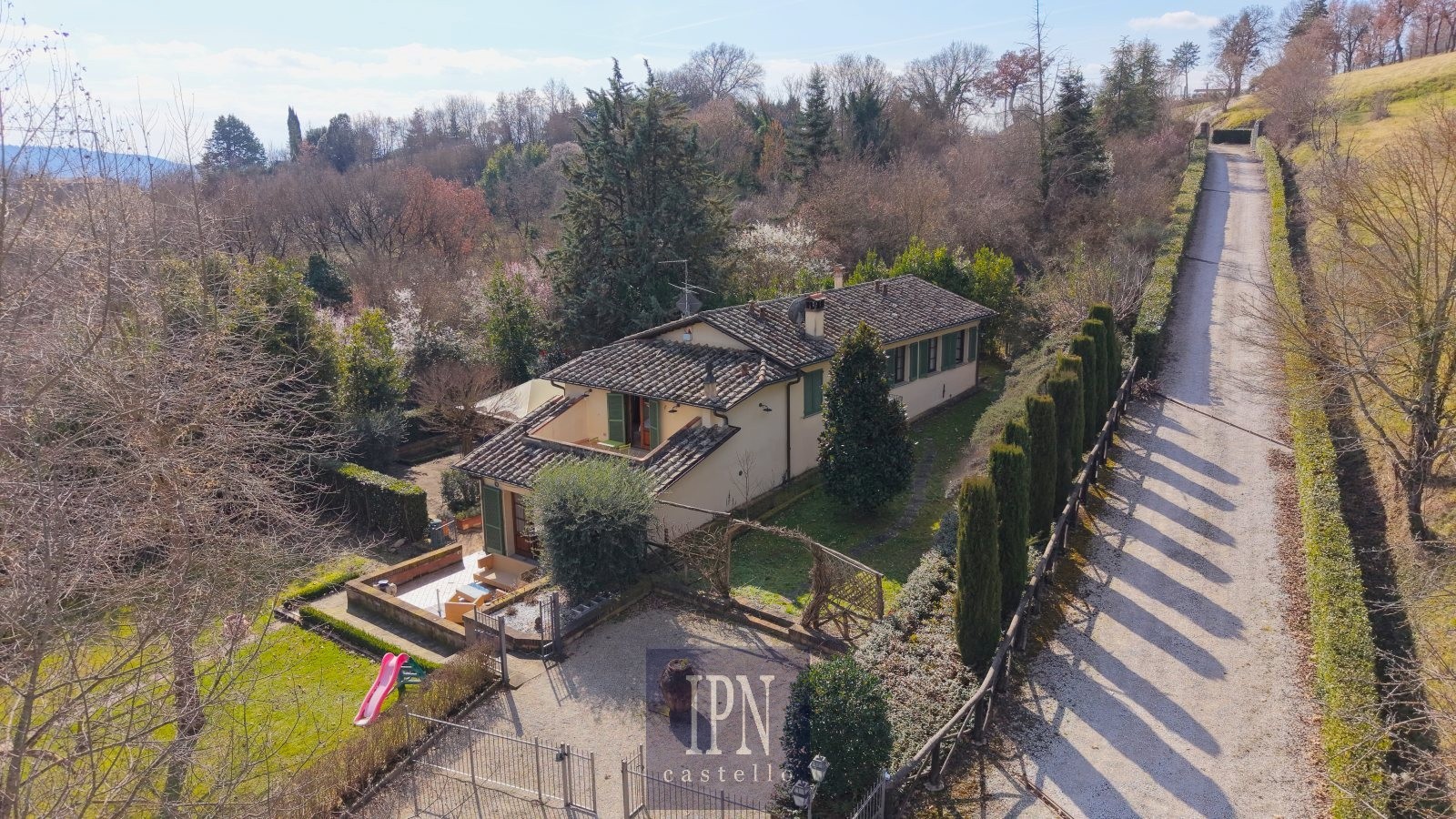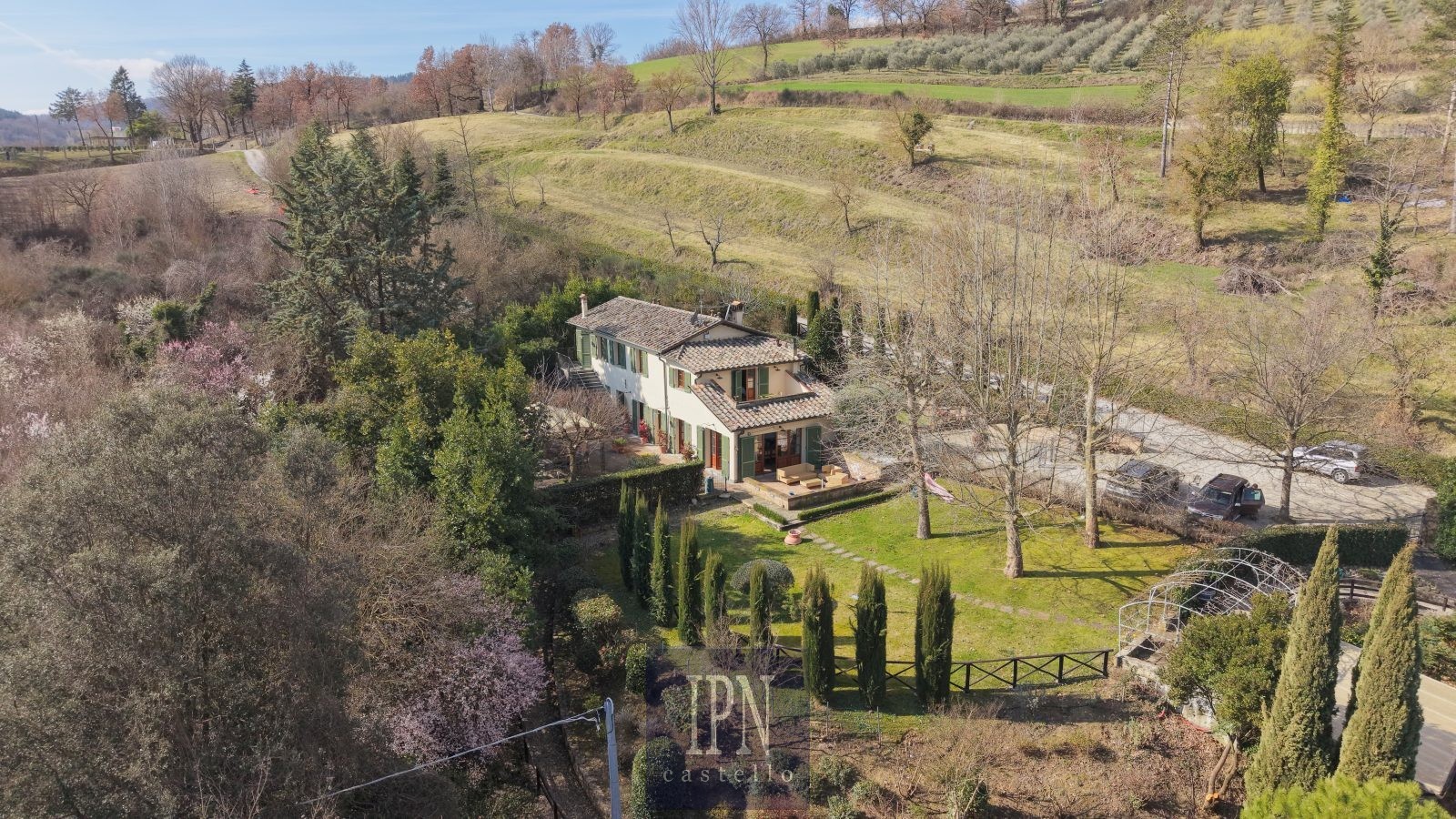 Zrekonštruovaný umbrický vidiecky dom, cca 250 m², 4 km od Città di Castello. Budova je rozdelená na dve podlažia prepojené vnútorným a vonkajším schodiskom. Prízemie: obývacia izba s krbom, kuchyňa, jedáleň, pivnica, veranda. Prvé poschodie: štyri spálne, štyri kúpeľne, práčovňa, terasa a balkón s výhľadom na umbrické kopce.