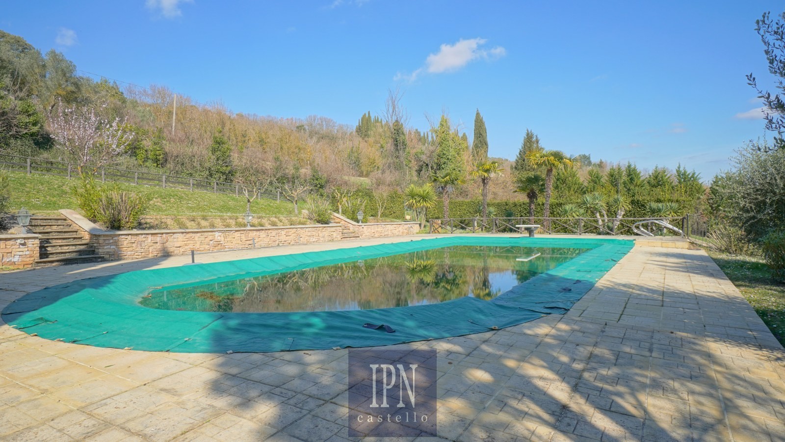 Pozemok sa rozprestiera na približne 25.000 m² s udržiavanou záhradou, kamennými terasami, tradičnými kamennými múrmi a vyhrievaným bazénom so soláriom a pergolou.