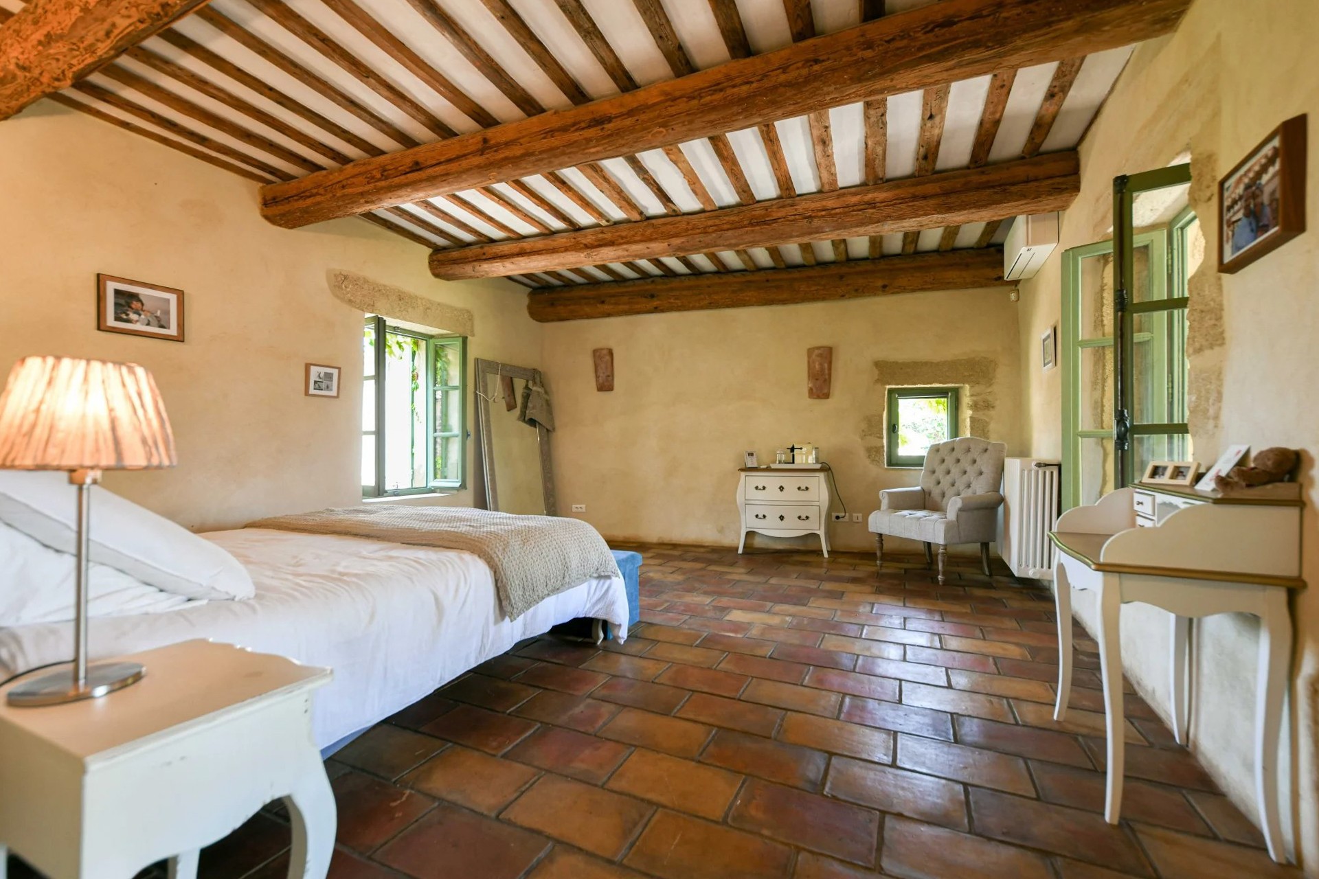 Na prvom poschodí západného krídla s oddeleným vchodom sa nachádzajú dve priestranné spálne (23 a 30 m²) s vlastnými kúpeľňami. Obe ponúkajú pekný výhľad na vnútorný dvor, bazén a strechy starobylej dediny.
