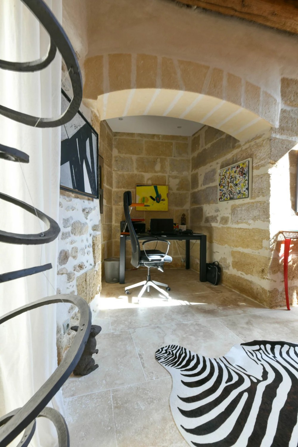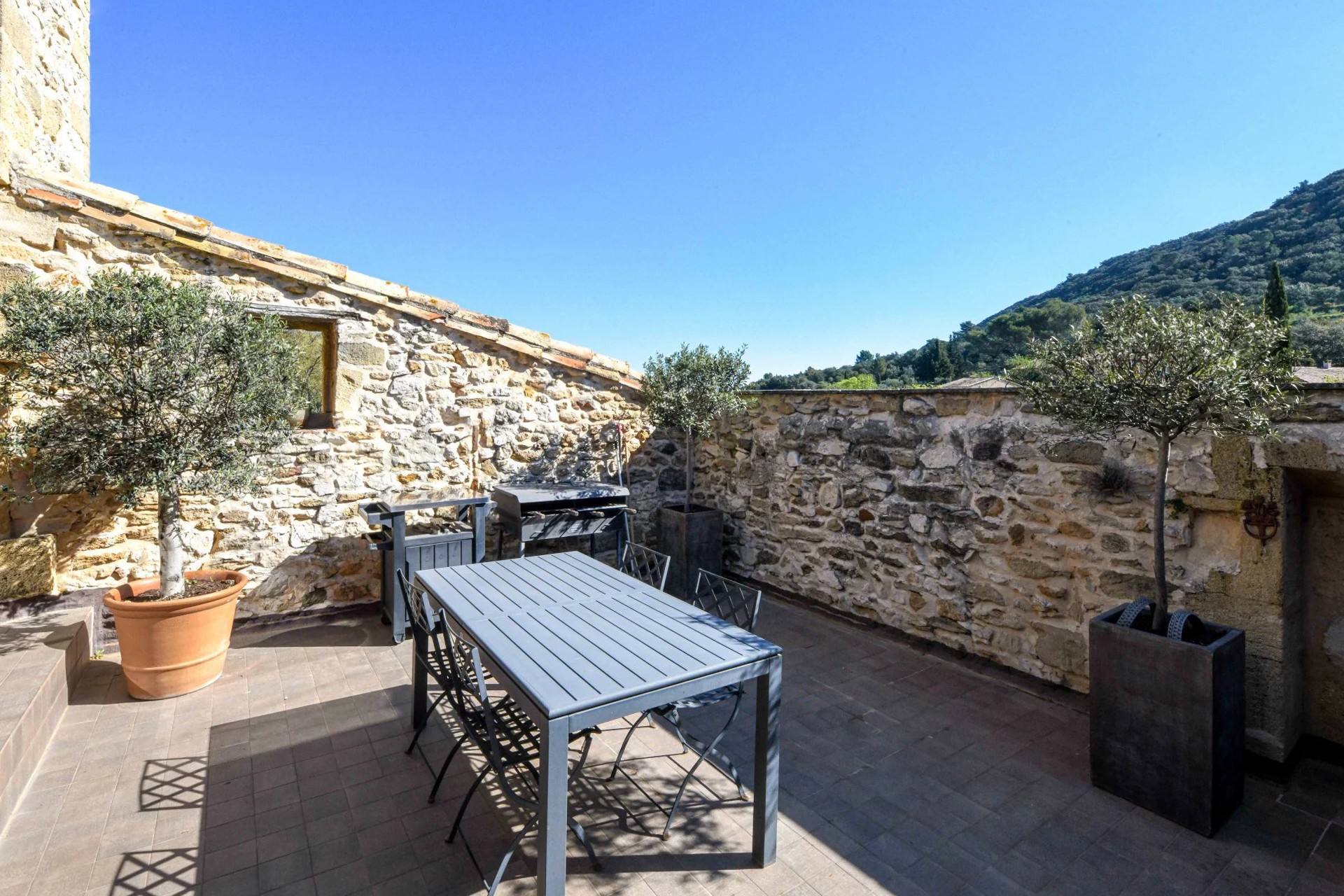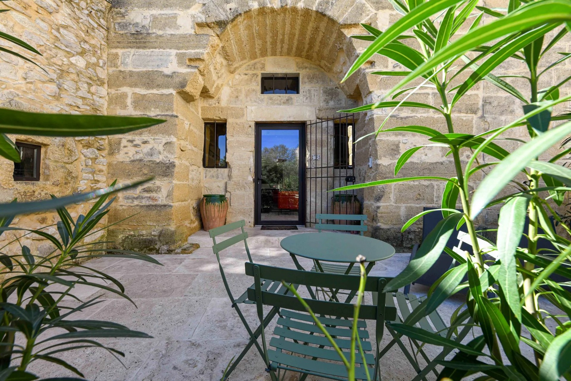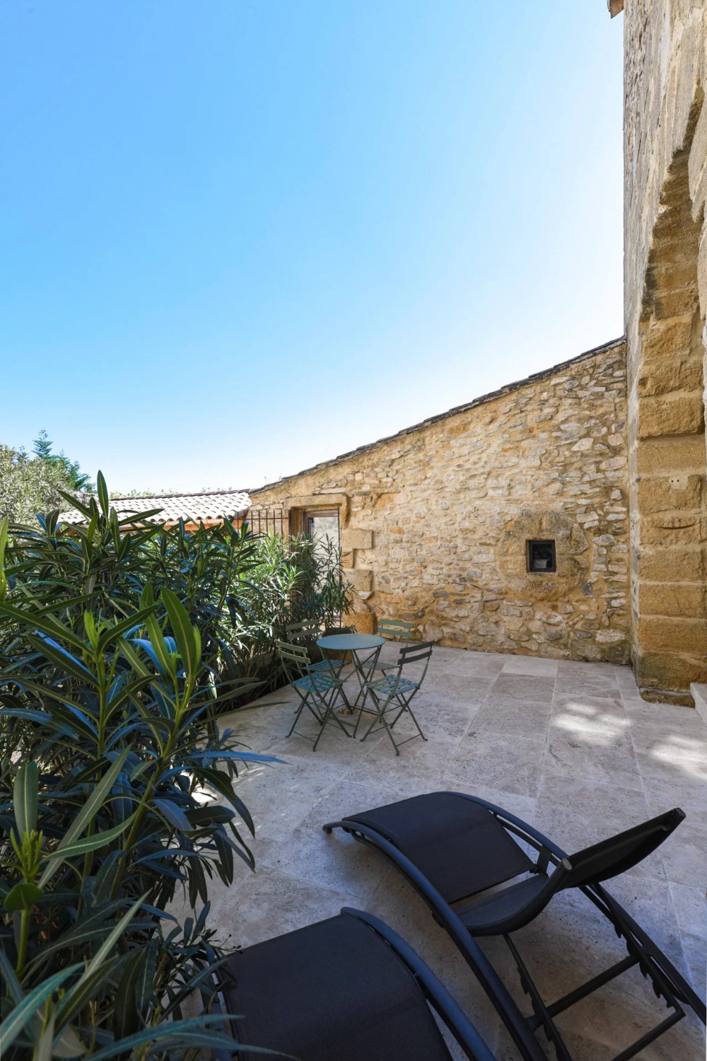 Bývalý lis na olivový olej prestavaný na obytný dom, nachádzajúci sa približne 17,5 km od Uzès. Budova má dve podlažia a zachováva charakteristické objemy pôvodnej priemyselnej architektúry.