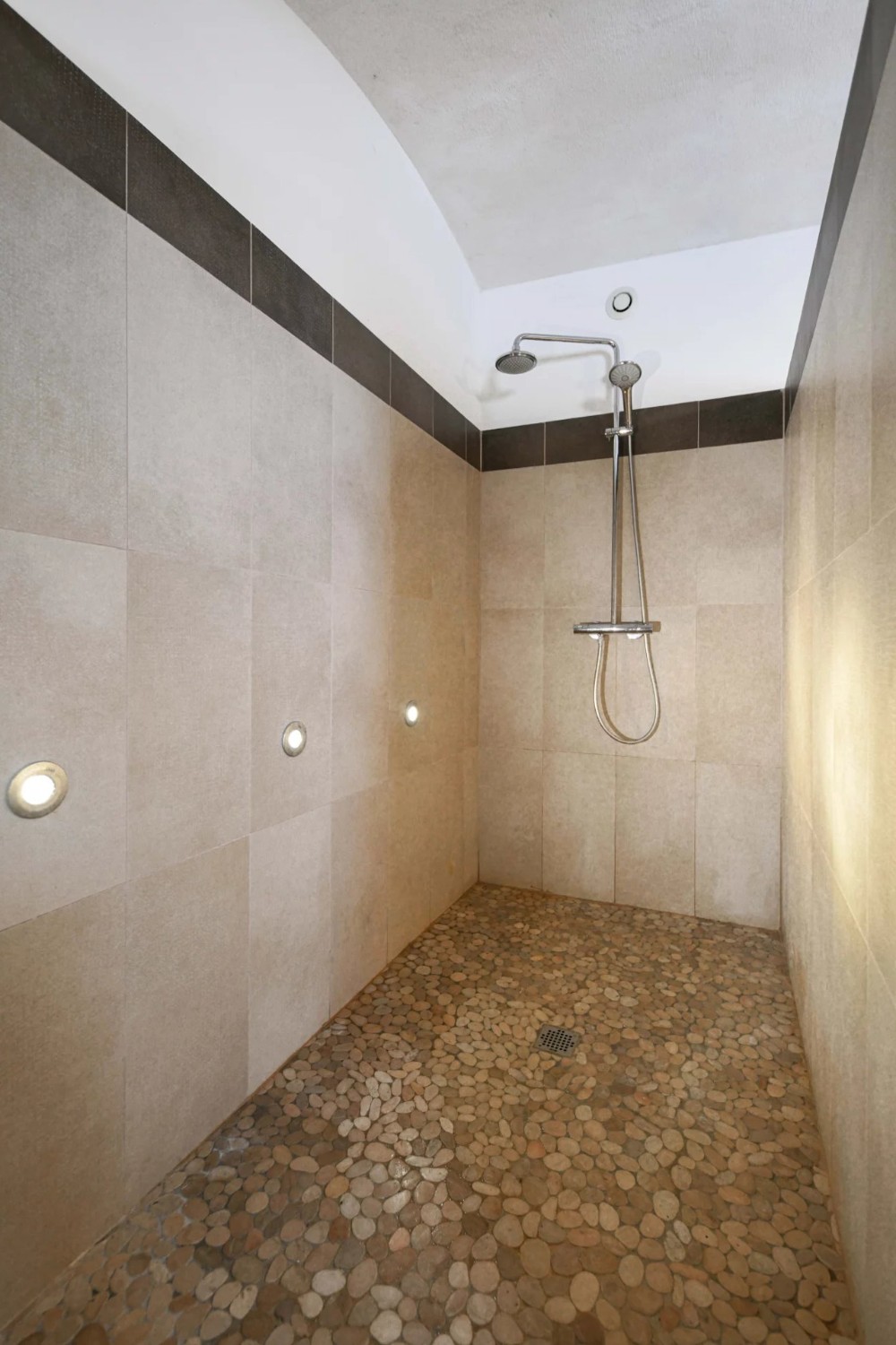 Na prízemí sa nachádza obytný priestor s obývacou izbou a jedálňou s dvojitou výškou stropu, otvorený do zelenej terasy/dvora. Na tomto podlaží je aj spálňa a kúpeľňa s vaňou, sprchovacím kútom a umývadlom. Samostatné WC pre hostí.