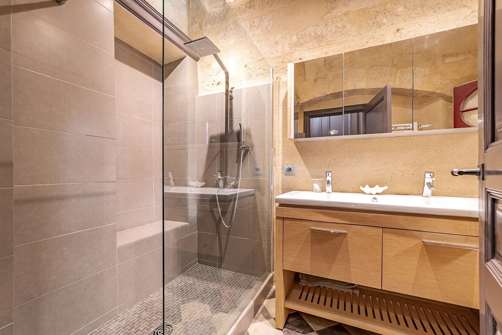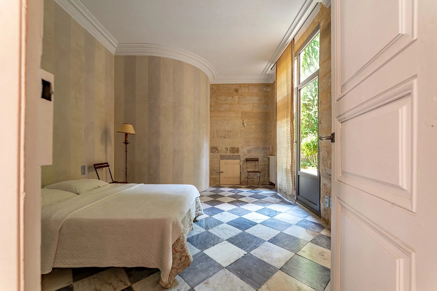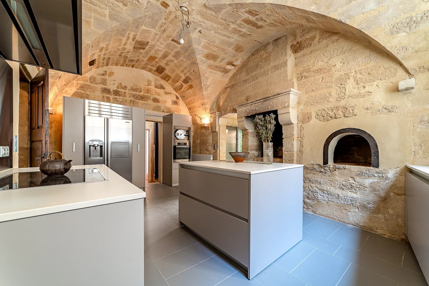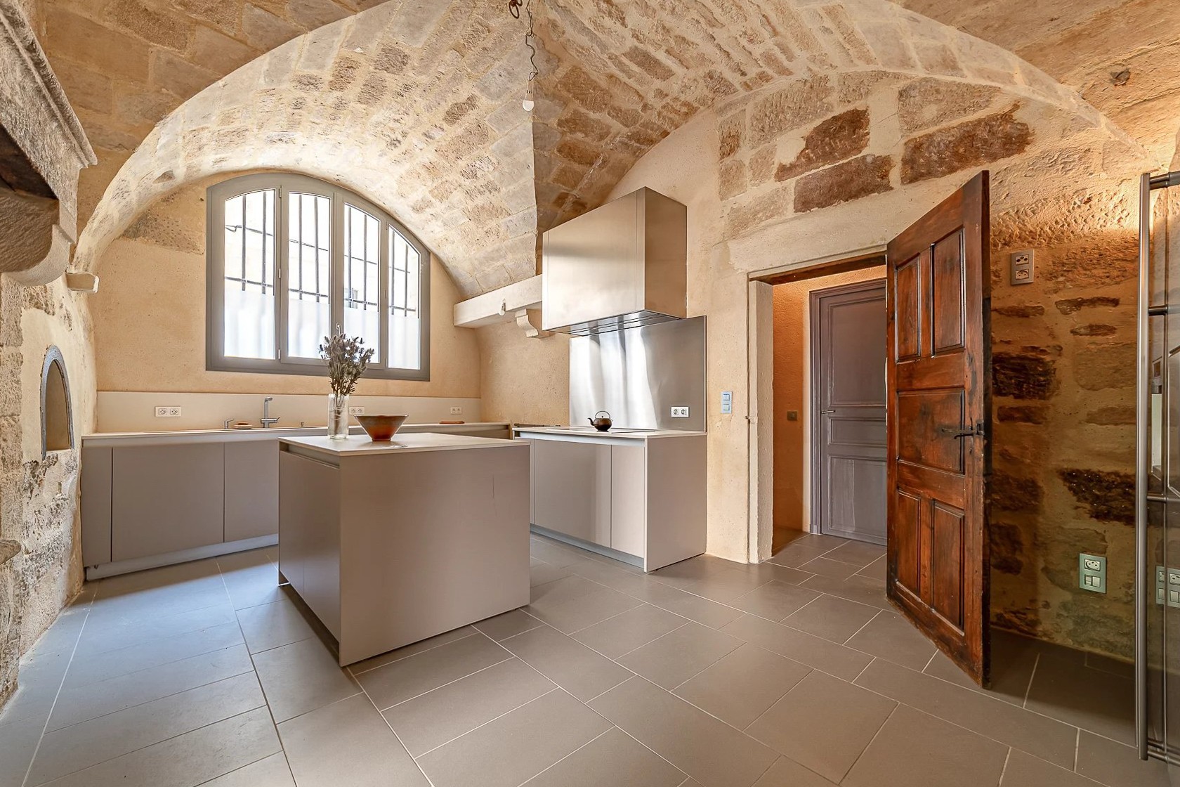 Apartmán má samostatný vchod. Obývacia izba o rozlohe 64 m² sa otvára priamo do záhrady, čím vzniká plynulé prepojenie medzi interiérom a exteriérom. Klenutá kuchyňa v avignonskom štýle má jedálenský kút s kamenným krbom a pecou na chlieb a taktiež prístup do záhrady.