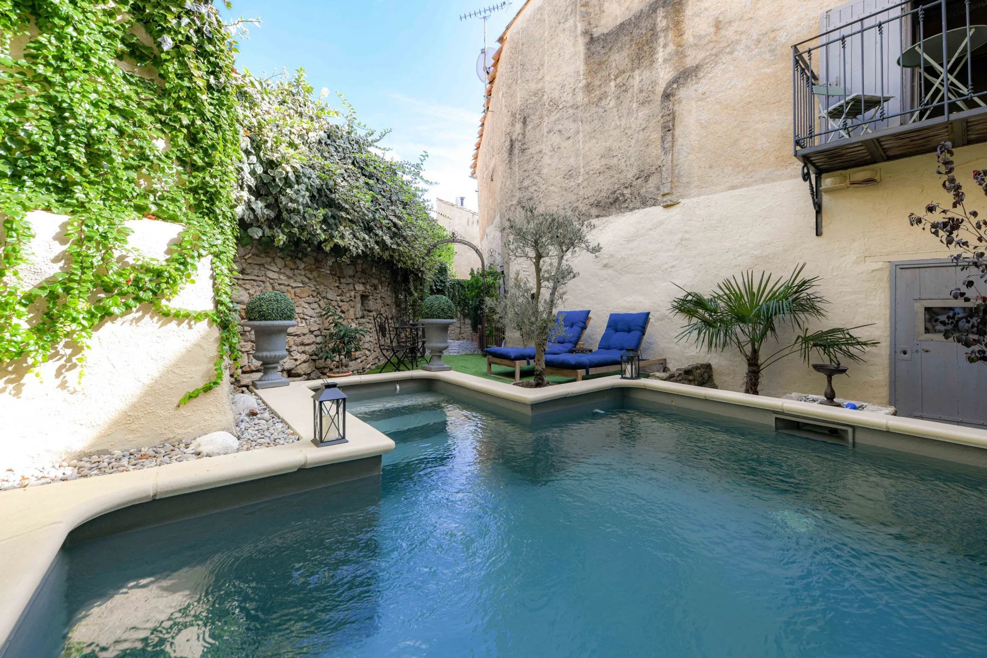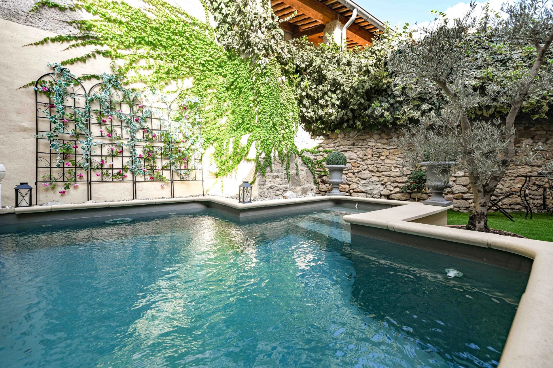 En av fastighetens höjdpunkter är den privata innergården med en uppvärmd badbassäng (4 x 3,5 m).
