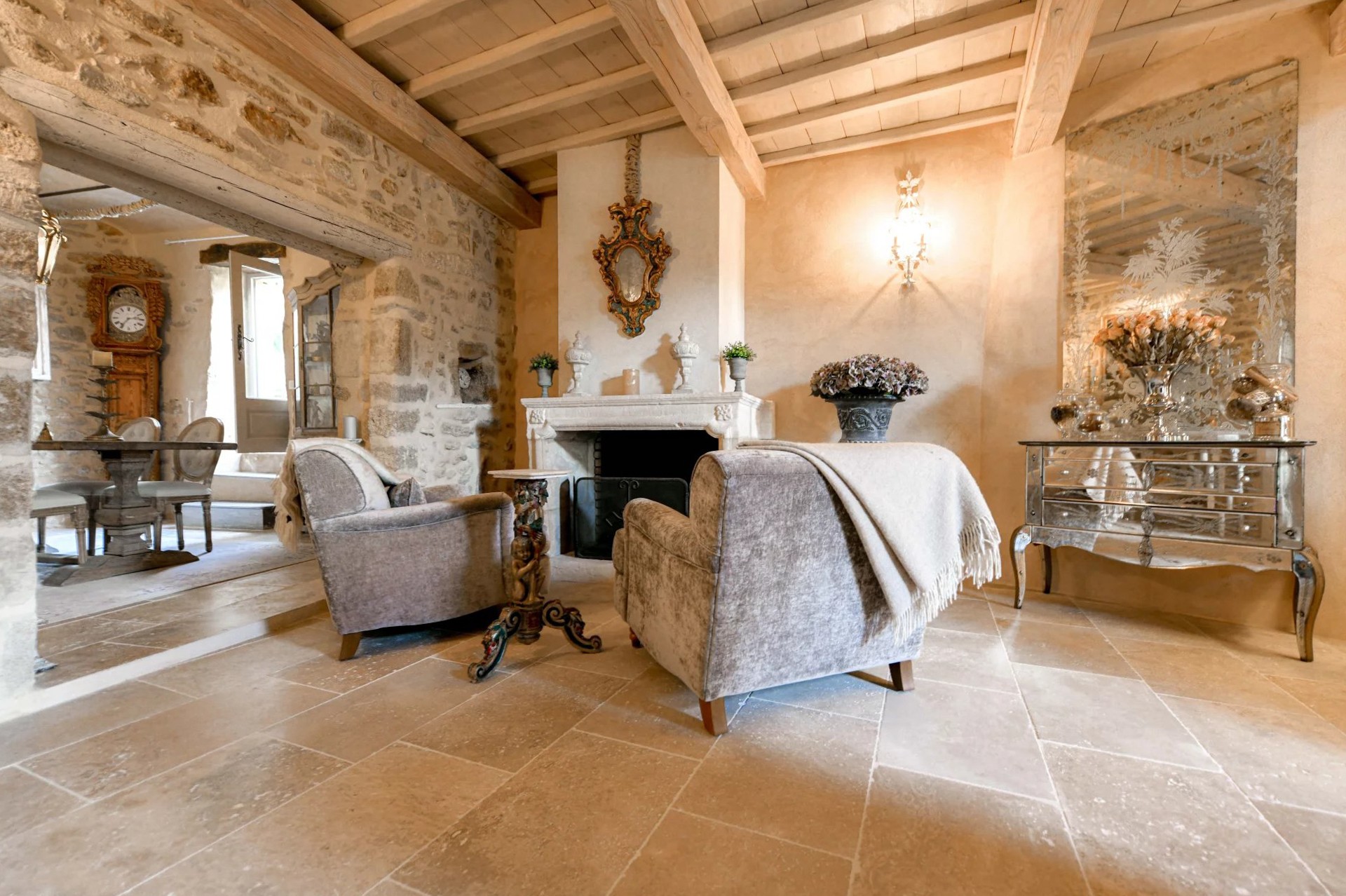 Imponerande, renoverat stenhus med unik karaktär på två våningar, beläget i en charmig by bara 14 km från Uzès.