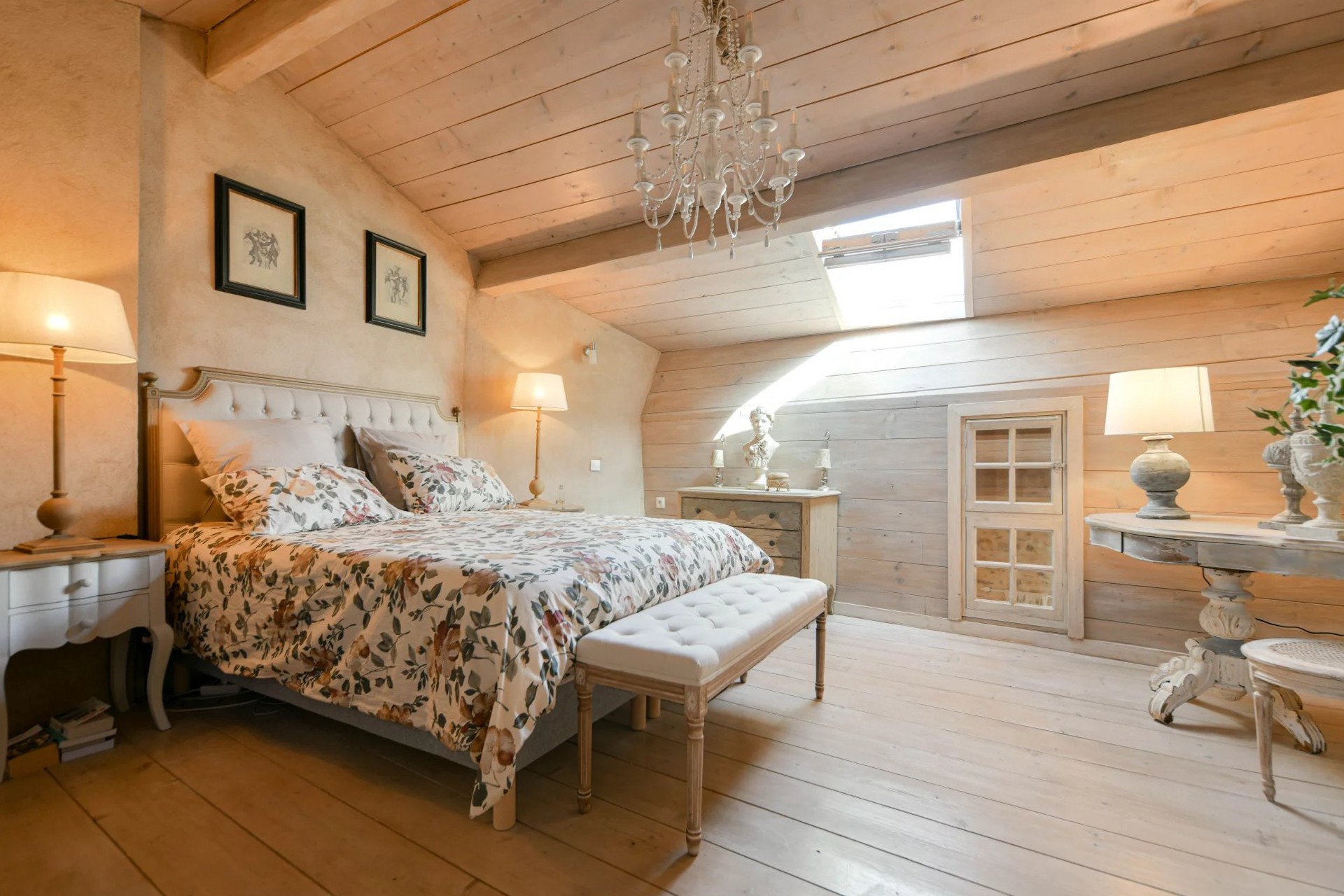 Ytterligare bekvämligheter inkluderar flera källarutrymmen (ca. 28 m²), dubbla fönster, myggnät, öppen spis och material av hög kvalitet.