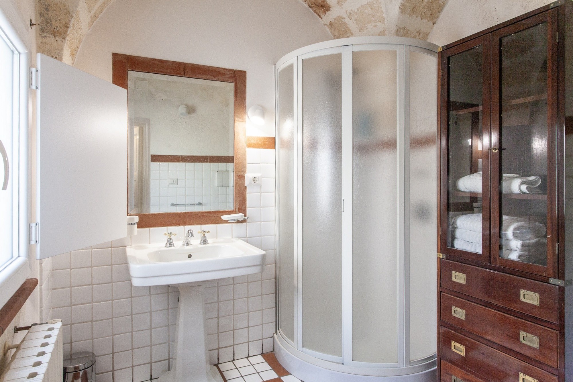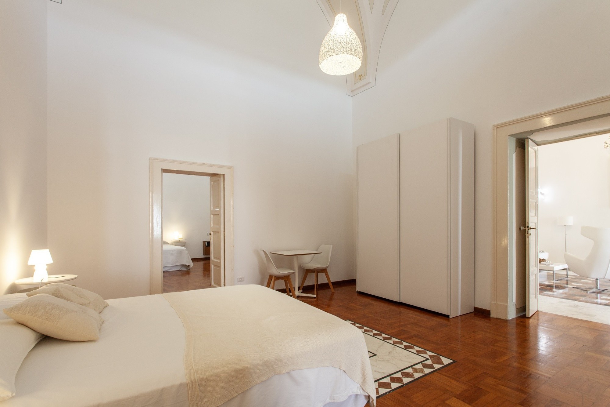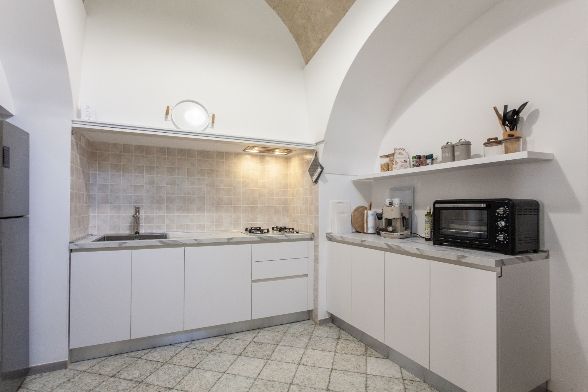 I den förtrollande historiska stadskärnan i Oria erbjuder denna prestigefyllda fastighet en sällsynt kombination av historia, charm och generösa utomhusytor. Egendomen omfattar en fristående lägenhet med trädgård och terrasser, ett gästhus samt ett rymligt garage med angränsande enhet på bottenvåningen – en unik möjlighet att uppleva den äkta medelhavslivsstilen. Huvudbostaden ligger på första våningen, omfattar 167 m² på ett plan och bevarar den lokala arkitekturens kännetecken med stjärnvalv, tunnvalv och lunettvalv – några med vackra fresker – i harmonisk kombination med modern minimalistisk inredning. Golv i färgad marmor och parkett förhöjer den eleganta atmosfären. Planlösningen inkluderar ett imponerande vardagsrum med freskmålat valv, en ljus matsal med anslutning till kök och tvättstuga, samt tre sovrum och två badrum. En täckt terrass med utsikt över stadskärnan – en perfekt plats för frukost på morgonen – och en privat balkong kompletterar våningsplanet. En trappa leder till den privata utomhusytan på ca 265 m², som kombinerar medelhavsträdgård (palmer, citrus, stor fikon) med panoramaterrasser som erbjuder vidsträckta vyer över Oria-slottet, den färgstarka katedralkupolen och stadens takåsar. En del av klostergången från det forna Celestinerklostret tillför ytterligare historiskt värde.På samma nivå finns gästhuset på 24 m², med sovrum, badrum och pentry – idealiskt för gäster eller för turistuthyrning.På ca 200 meters avstånd finns även ett 42 m² stort garage med elektrisk port och ett litet badrum. Intill ligger ytterligare en enhet om ca 80 m² (kommersiell yta) i behov av renovering, med god utvecklingspotential.Fastigheten är i gott skick, inflyttningsklar och utrustad med gasuppvärmning och luftkonditionering. Försäljningen gäller enbart hela komplexet som beskrivs ovan; separata försäljningar accepteras inte.Om OriaOria är en pittoresk medeltida stad, känd för sitt slott, sina smala gränder, den färgstarka katedralkupolen och sitt rika kulturarv. Läget är strategiskt: endast 35 km från Brindisi internationella flygplats, cirka 25 minuter från Joniska havets sandstränder och nära viktiga destinationer som Lecce, Ostuni, Alberobello och Itria-dalen.Ett extra plus för internationella köpare är Italiens förmånliga särskilda skatteregim på 7 %, som gäller för utländska pensionärer som flyttar sin bostad till Oria.