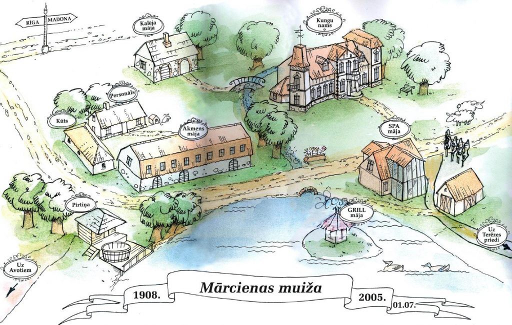 Marcienas Muiza ligger vid Dzirnavu-sjön i ett skogsrikt område i Lettland. Den ursprungliga herrgården Marcienas (Martzen) tilldelades greven Fermor av kejsarinnan Elisabet av Ryssland år 1753 och kom senare i familjen von Maydells ägo. Den nygotiska huvudbyggnaden förstördes 1918 och återuppfördes inte; ruiner och den historiska strukturen är fortfarande synliga.