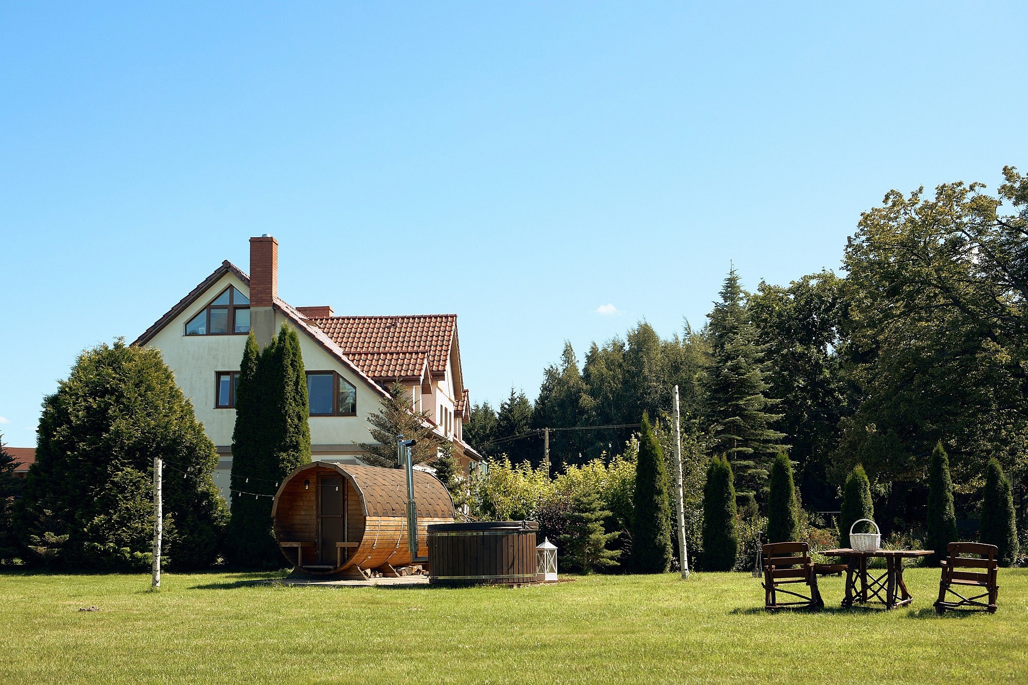 Det rör sig om en före detta ostpreussisk lantegendom från tidigt 1800-tal på en areal om cirka 6,2 hektar. Efter en renovering 2005 används den idag privat samt för agroturism och evenemang. Huvudbyggnaden erbjuder en boarea på 435 m² fördelat på två våningar och en inredd vind, med sovplatser för 25 gäster i nio rum med varsitt eget badrum.