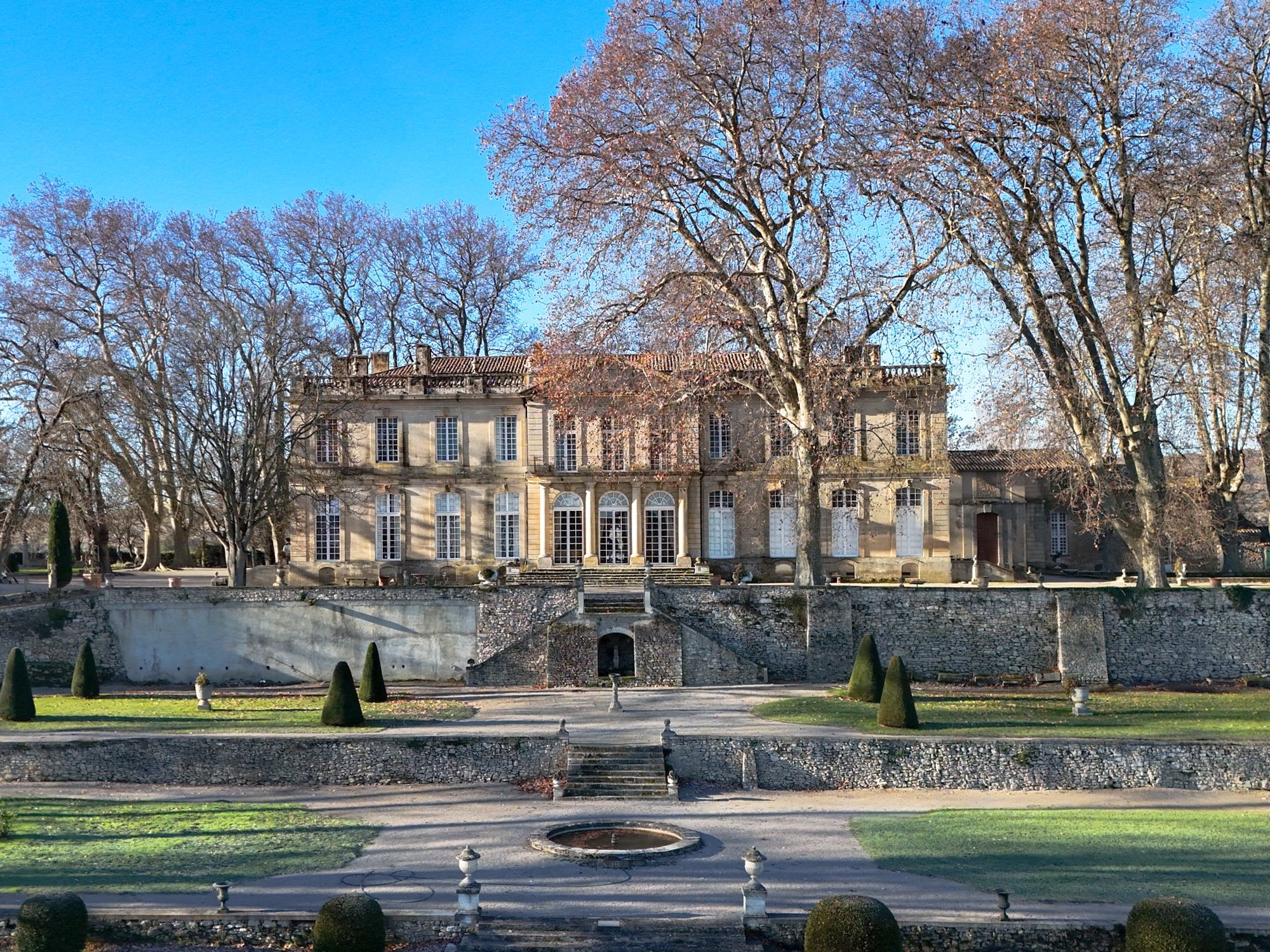 Châteauet ligger i ett imponerande landskap med milsvid utsikt. Byggt omkring 1720 speglar det den franska livsstilen under Régence-perioden, som skildrat i filmen Que la fête commence (Leve festen). Det anses vara ett av de vackraste slotten från 1700-talet i Provence och fascinerar inte bara med sin arkitektur, utan även med de extraordinära insatser som krävdes vid byggnationen mitt under Europas sista pestepidemi (1720–1722) och de enorma ekonomiska resurser som fanns tillgängliga, drivna av den spekulativa euforin kring John Laws banksystem.
